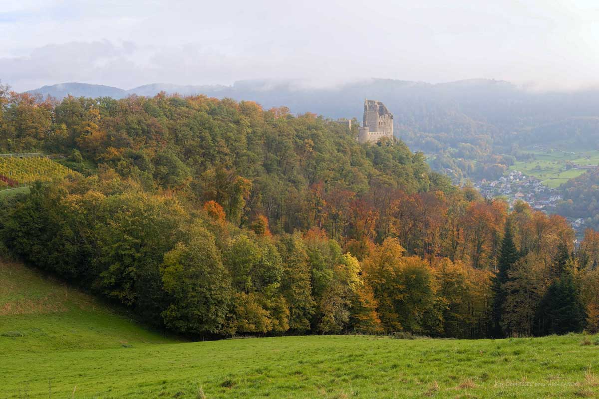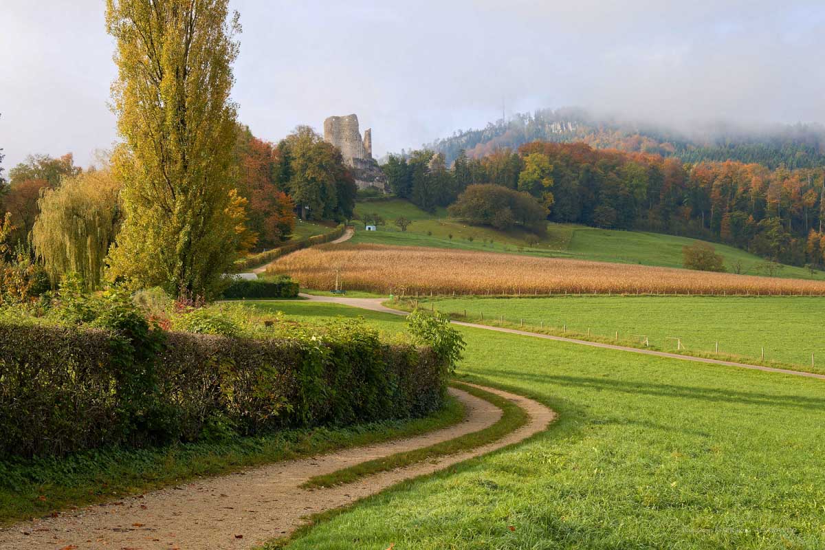 Au 12ème siècle, c’était un château, aujourd’hui, c’est une des plus grandes ruines du Canton de Bâle. Alors là-bas, ils ont pas eu Louis XIV pour leur torpiller leurs châteaux-forts, non, non, les Suisses, très branchés nature, ont eu le tremblement de terre de Bâle en 1356. Et prends ça dans ton château. Trois siècles plus tard, c’est les Suédois qui ont squatté le château et comme tous squatteurs, l’ont abandonné en ayant tout saccagé. Mamma mia, le Waterloo qu’ils avaient laissé ! (celle-là si tu la captes, je te félicite, j’attends des réponses !…).