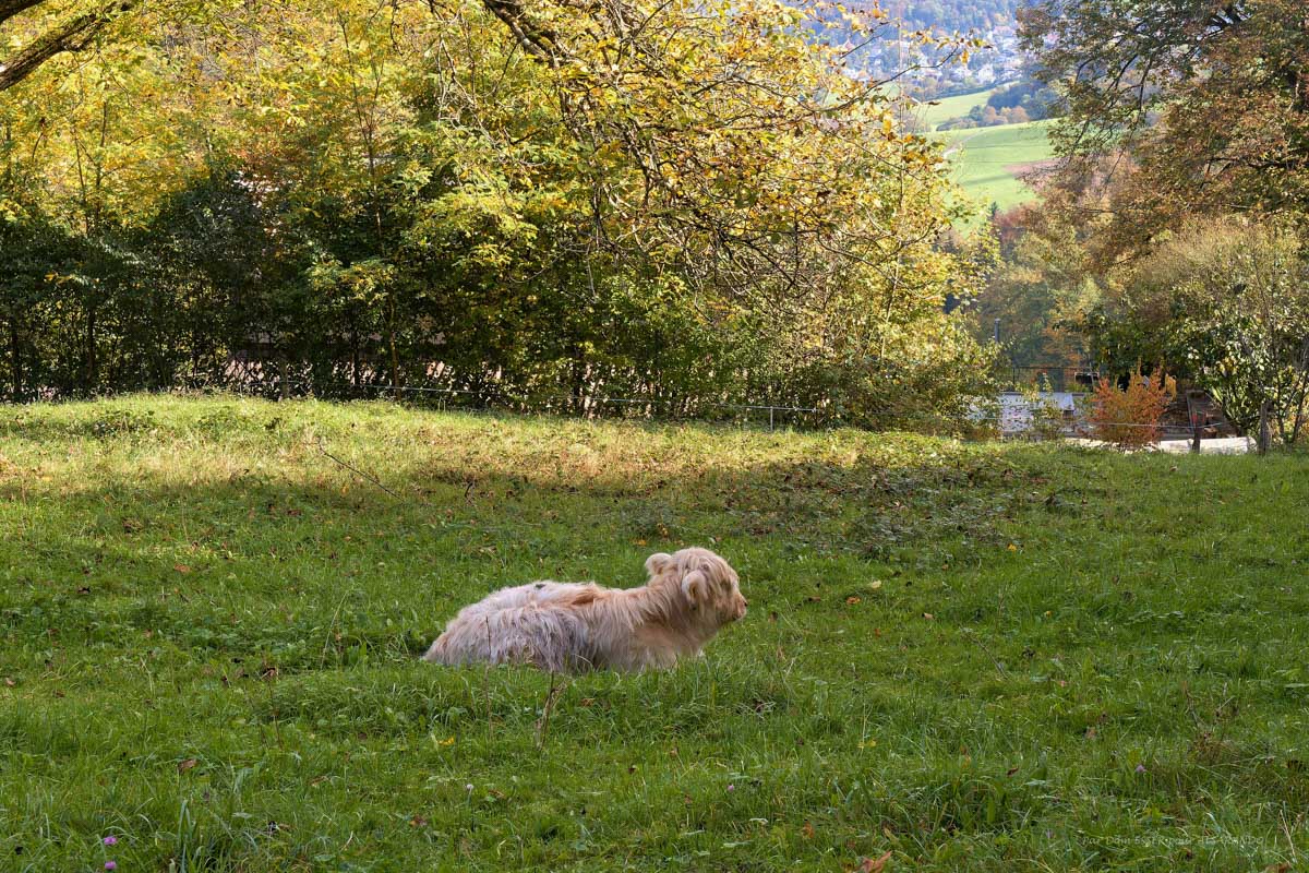 Nous nous projetâmes dans un passé idéalisé, nous nous imaginèrent ou nâmes en princesses et en rois, nous profitâmes des couleurs chatoyantes d’octobre finissant et nous croisâmes des bovidés modèle highland 2024 dont la taille des cornes nous fit quelque peu douter de la fidélité des vaches associées. J’ai pas osé traiter le taureau de cocu parce que j’étais pas sûr de la solidité du barbelé.