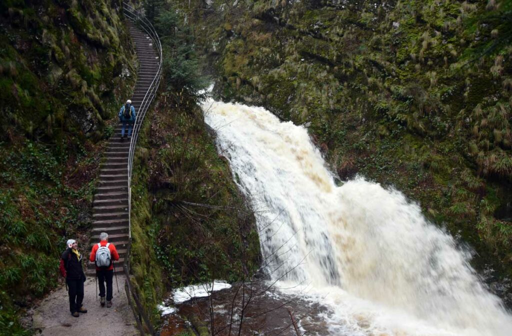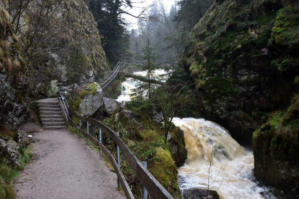 Une alsabalade en Forêt-Noire pour surplomber la gorge et ses falaises, puis remonter les cascades au débit puissant après toute cette pluie, avant de revenir vers les ruines de l’abbaye d’Allerheiligen, fondée au 12ème siècle et détruite foudroyée au 19ème siècle.