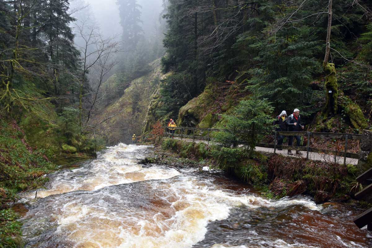 Une alsabalade en Forêt-Noire pour surplomber la gorge et ses falaises, puis remonter les cascades au débit puissant après toute cette pluie, avant de revenir vers les ruines de l’abbaye d’Allerheiligen, fondée au 12ème siècle et détruite foudroyée au 19ème siècle.