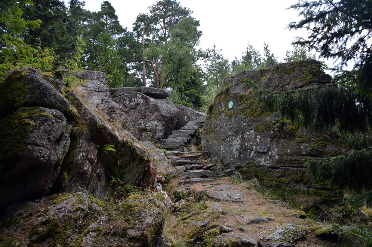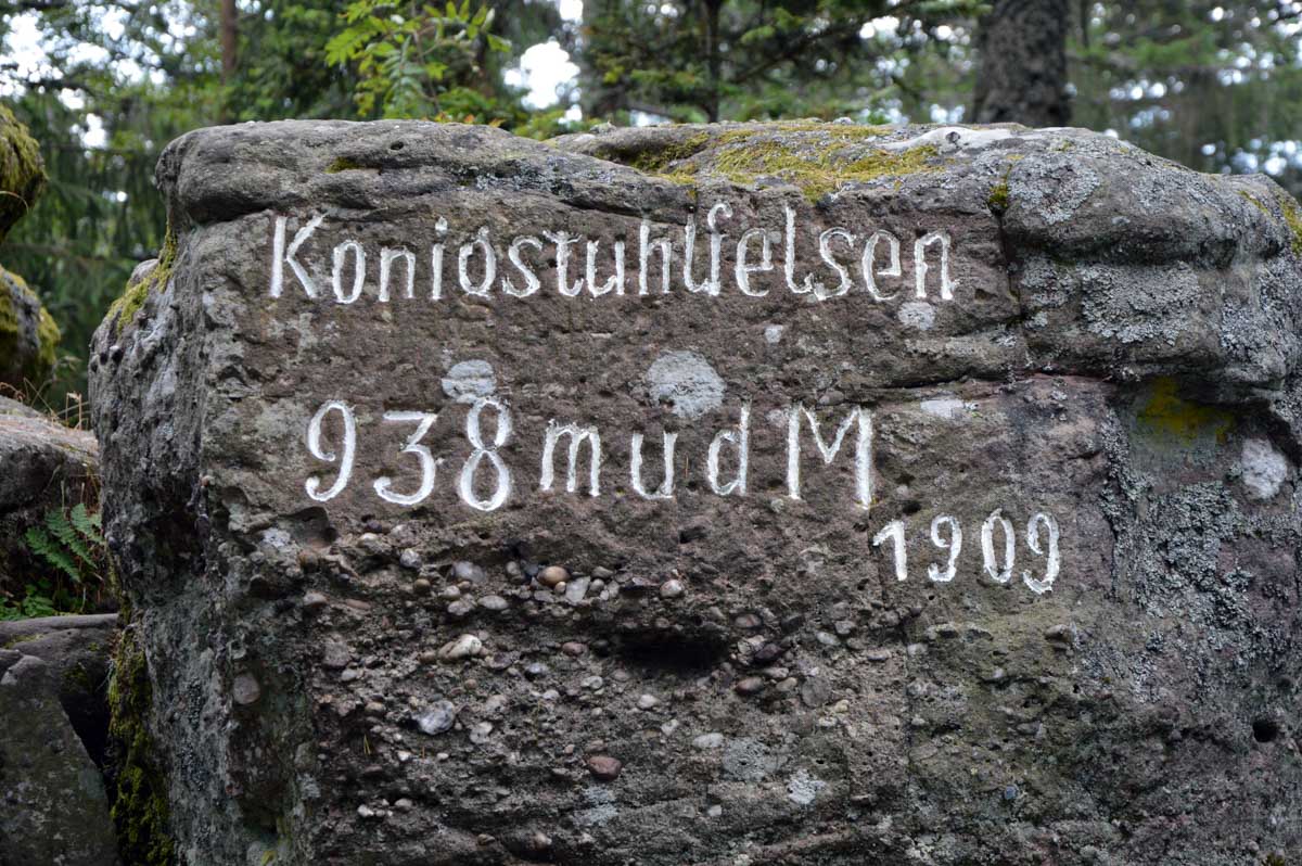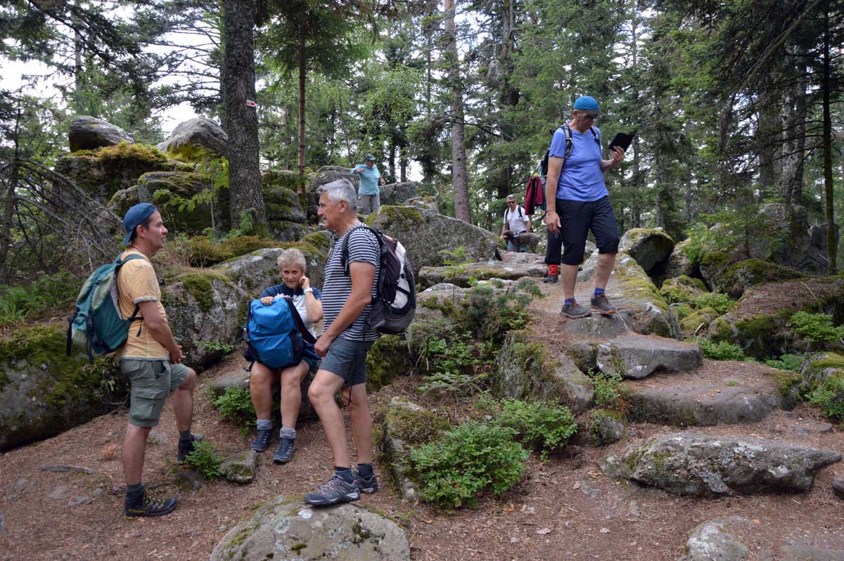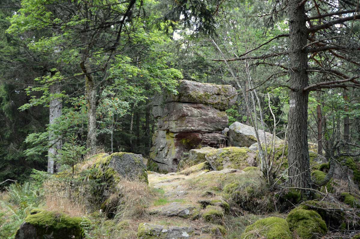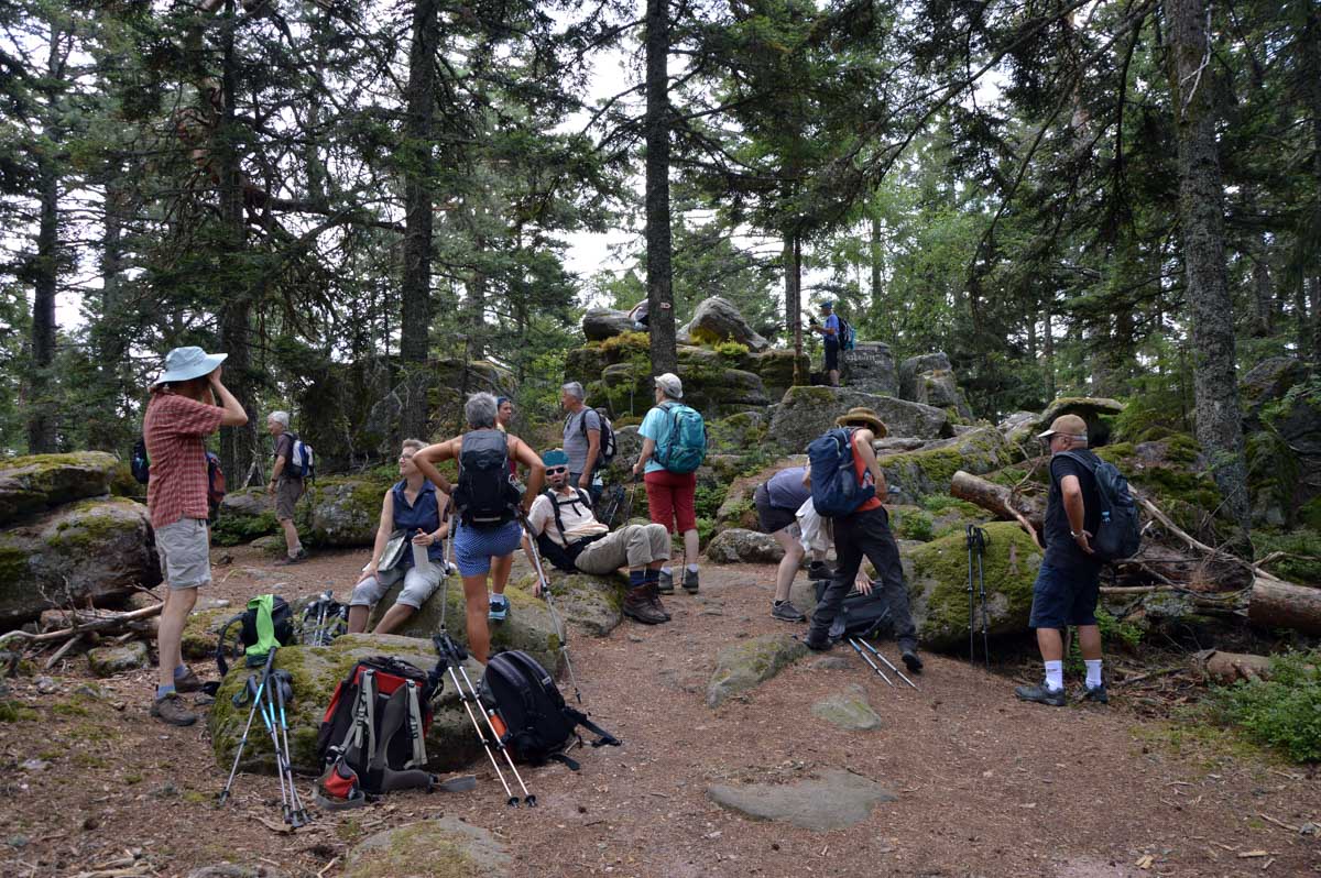 L’avantage, c’est une température un peu moins insupportable qu’en plaine, et d’agréables sentiers dans des forêts de pins, avec des montées douces pour découvrir la Roche du Tétras et l’étonnant Koenigsstuhl, à 938 mètres, où comme son nom le suggère, siégeait un jour un roi, sous réserve que la légende repose sur du vrai. Ou carrément le diable, dans une autre version. En tous les cas, l’occupant avait le fessier charnu.