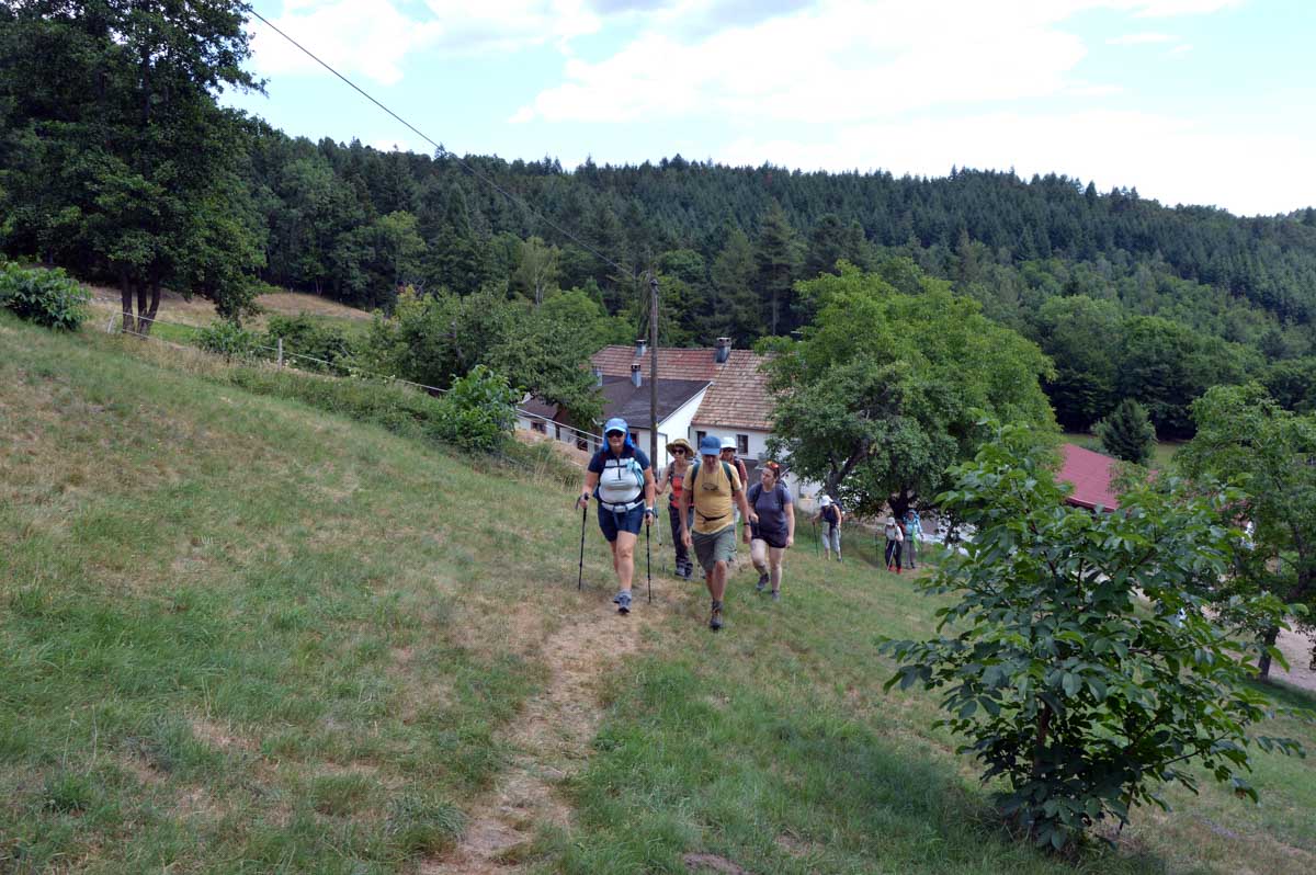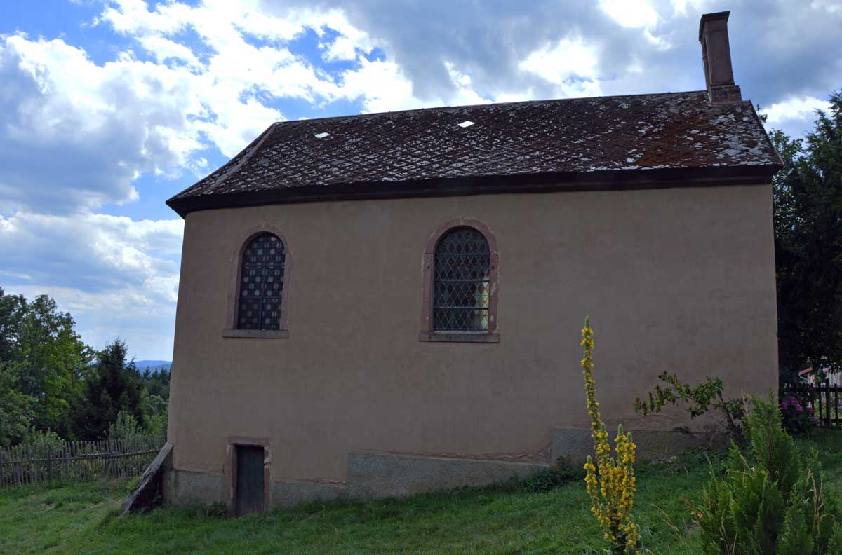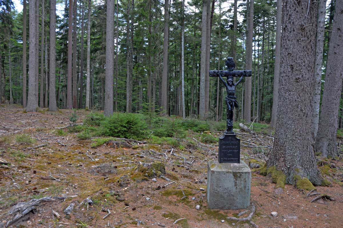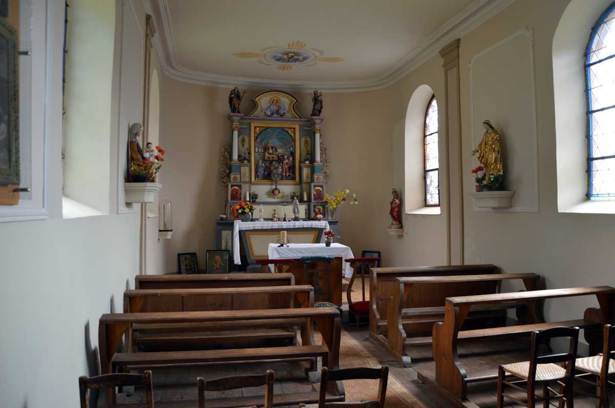 On pouvait arriver à Saint-Alexis en voiture, tout simplement, mais maintenant qu’on se connaît, vous avez compris que c’était trop simple pour nous. Non, non, nous, on est d’abord montés en voiture à Aubure, plus haut village d’Alsace à 800 mètres, choisi comme point de départ, pour ensuite rallier à pieds la chapelle en question.