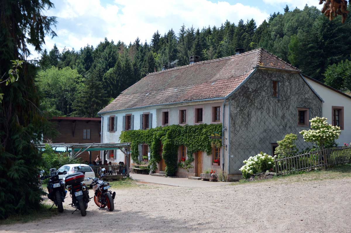 Inversion de poussée pour aborder la descente vers le Belvédère du Col de Fréland, posé ici par les Allemands pendant la 1ère guerre mondiale pour observer les environs et notamment les champs de bataille du Linge ou de la Tête des Faux. Puis descente en piqué vers Aubure où nous ne pouvions hélas pas prendre de pot final, mais au moins nous féliciter d’avoir participé à quatorze à cette belle journée au milieu de l’été.