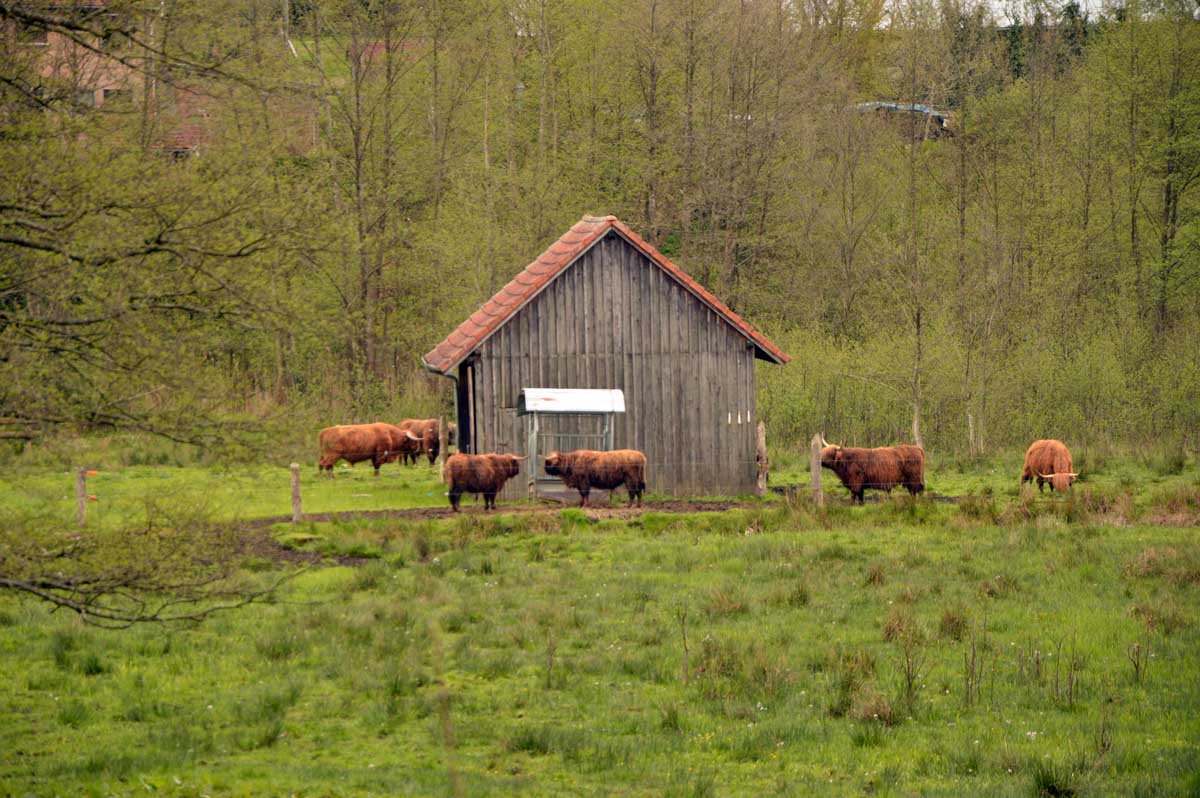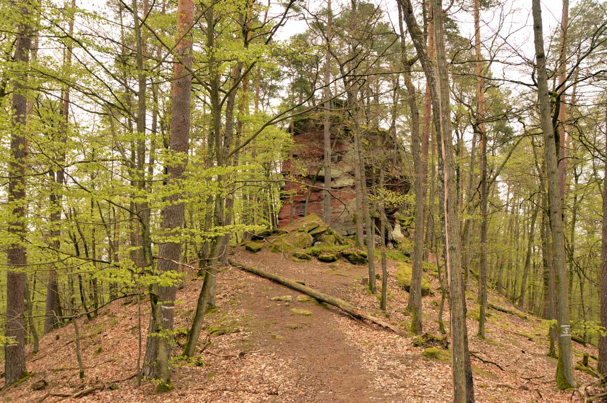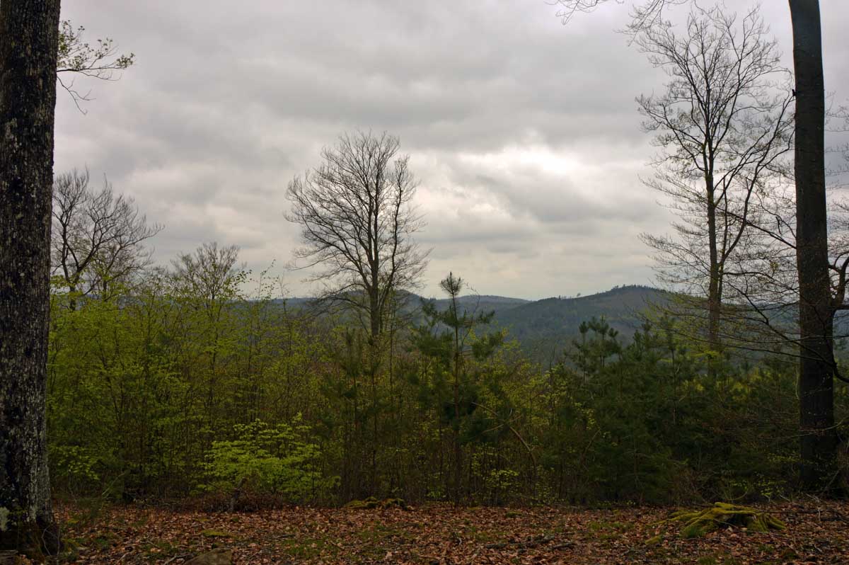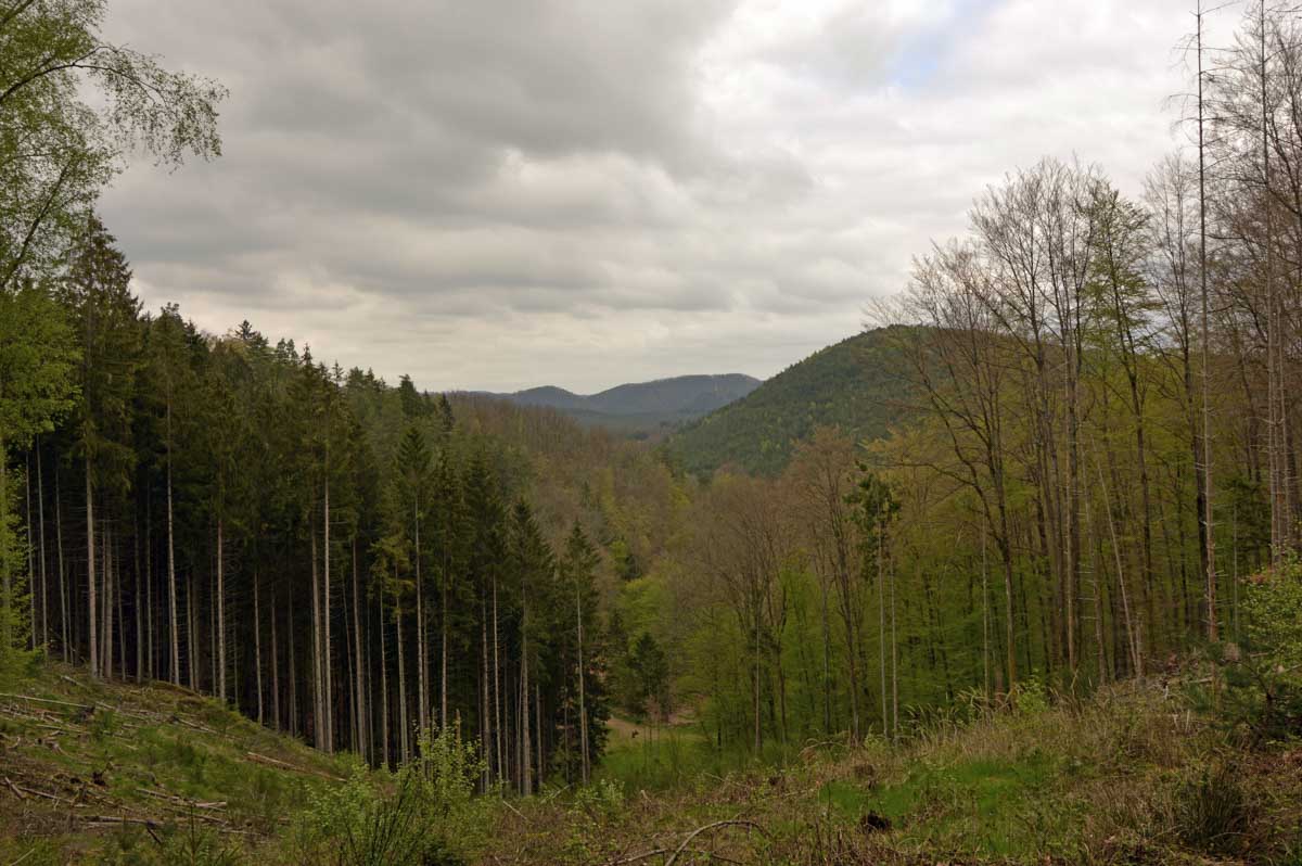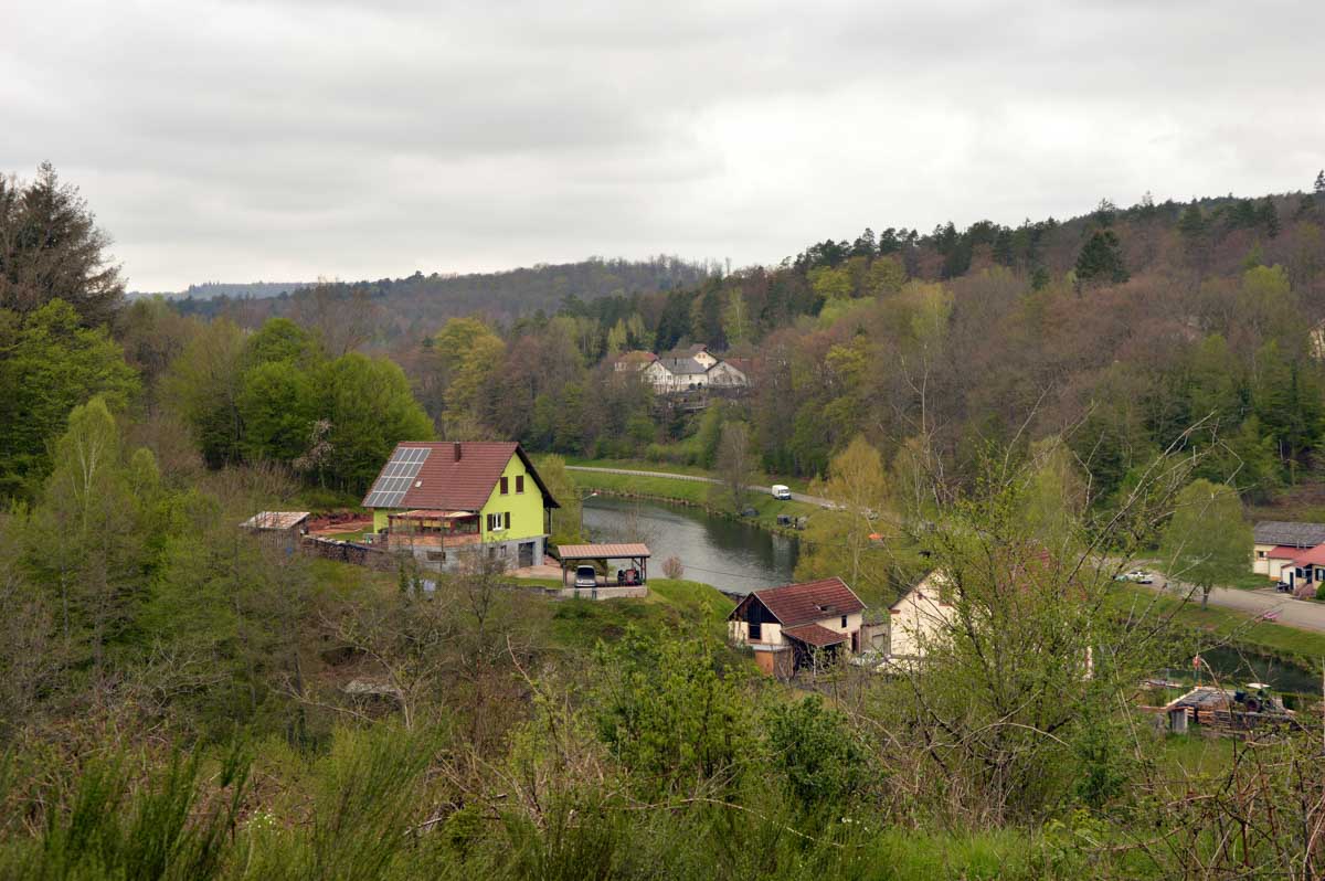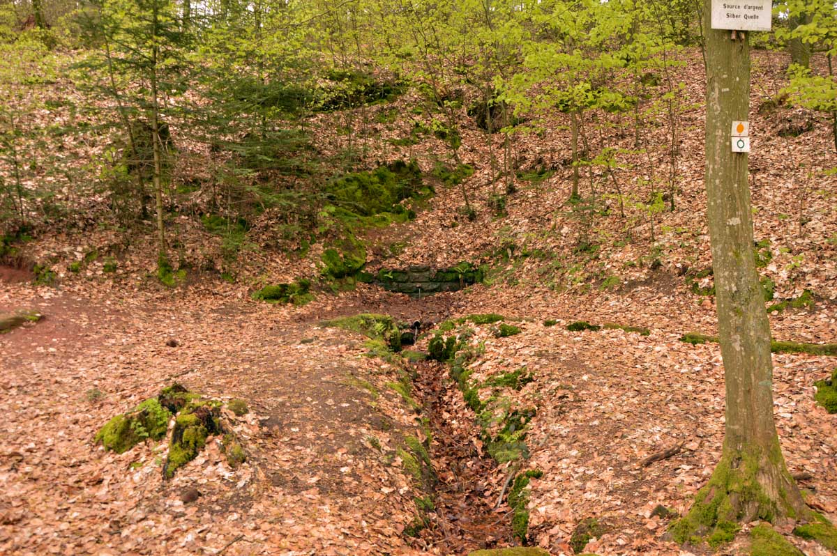 Une vue sur Baerenthal nous fut offerte (c’est bien écrit, non ?) depuis la ruine du Ramstein. L’en reste un bout de mur mais surtout des pièces creusées dans le grès. Ils n’avaient pas peur des caves humides à l’époque, mais il s’en fout… enfin peu leur challait (?), ils mettaient en prison qui ne leur plaisait pas.