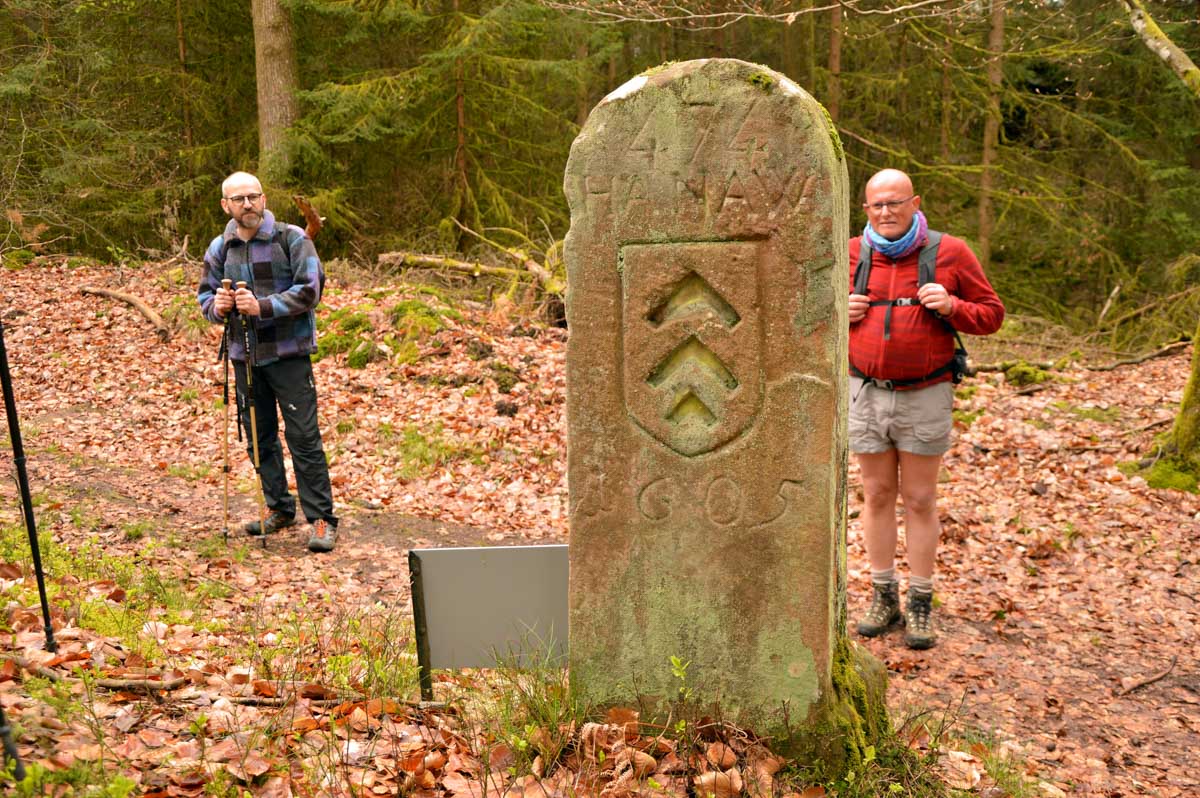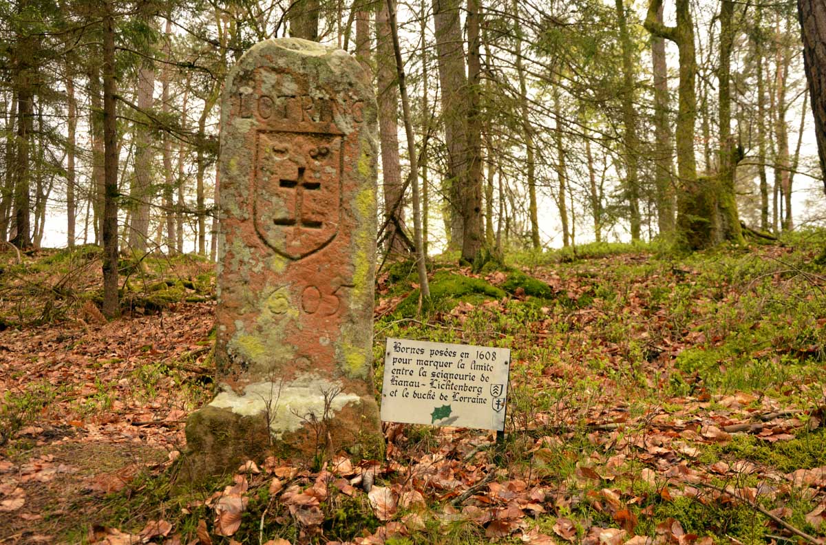 Nous partagions le week-end avec Rando’s Lorraine, et justement, en plus des bornes qu’on s’est tapées avec nos petits pieds (non, non, je vous dirai pas ma pointure), nous sommes aussi tombés en extase, enfin presque, devant des bornes vieilles de 400 ans, marquant la limite entre la Seigneurie des Hanau Lichtenberg et le Duché de Lorraine.