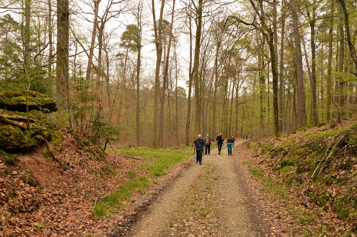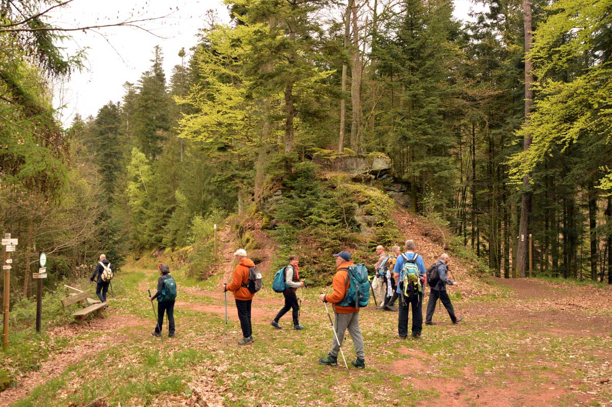 Départ ensemble à Baerenthal, puis séparation en deux sous-groupes, l’un pour une rando facile de 12 kilomètres, l’autre pour une rando plus ardue de 22 kilomètres. Il y en avait pour tout le monde, donc. Moi comme une débutante, je me suis lancée dans la longue, tout ça pour vous épater !