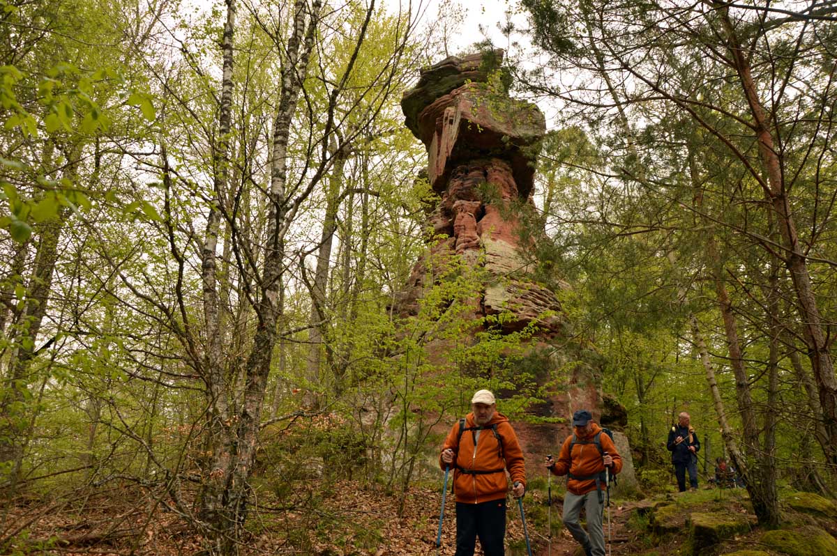 Mais d’abord, tour vers le Rocher du Hasenkopf, donc la Tête du Lièvre, mais on s’est fait avoir comme des lapins parce que le guide s’est un peu planté et nous a rallongé la sauce. Eh oui, ce soir j’ai mal aux pattes alors je dénonce ! Marre de se laisser faire, le 1er mai n’est pas loin, tiens-toi bien animateur !