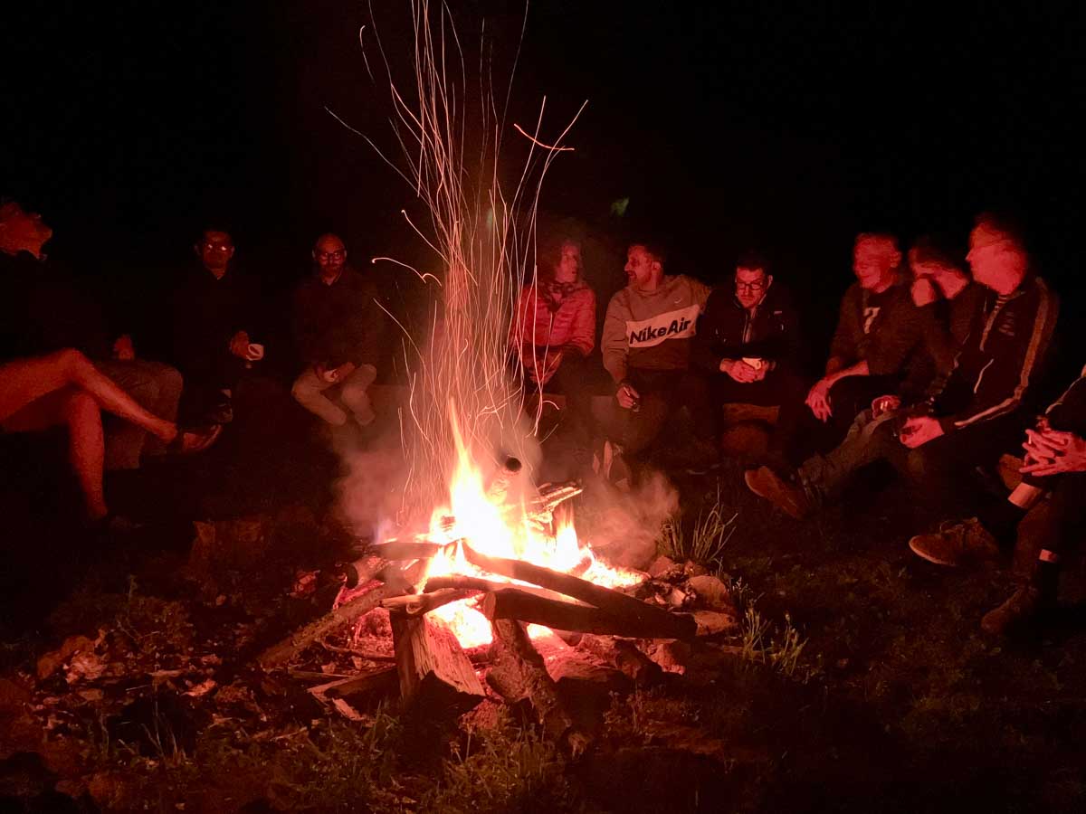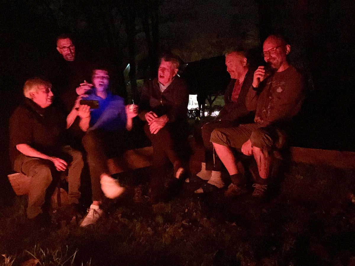 Quant à nous, après la tarte flambée, soirée autour du feu de camp en marmonnant (car là on ne peut plus parler de fredonner) des airs comme Fernando de Abba et d’autres tubes qui nous rappelaient que du temps a passé comme ces flammes éphémères dégageant des étincelles allant se perdre dans le ciel étoilé (là c’est prosecco qu’a pris le relais, désolée).