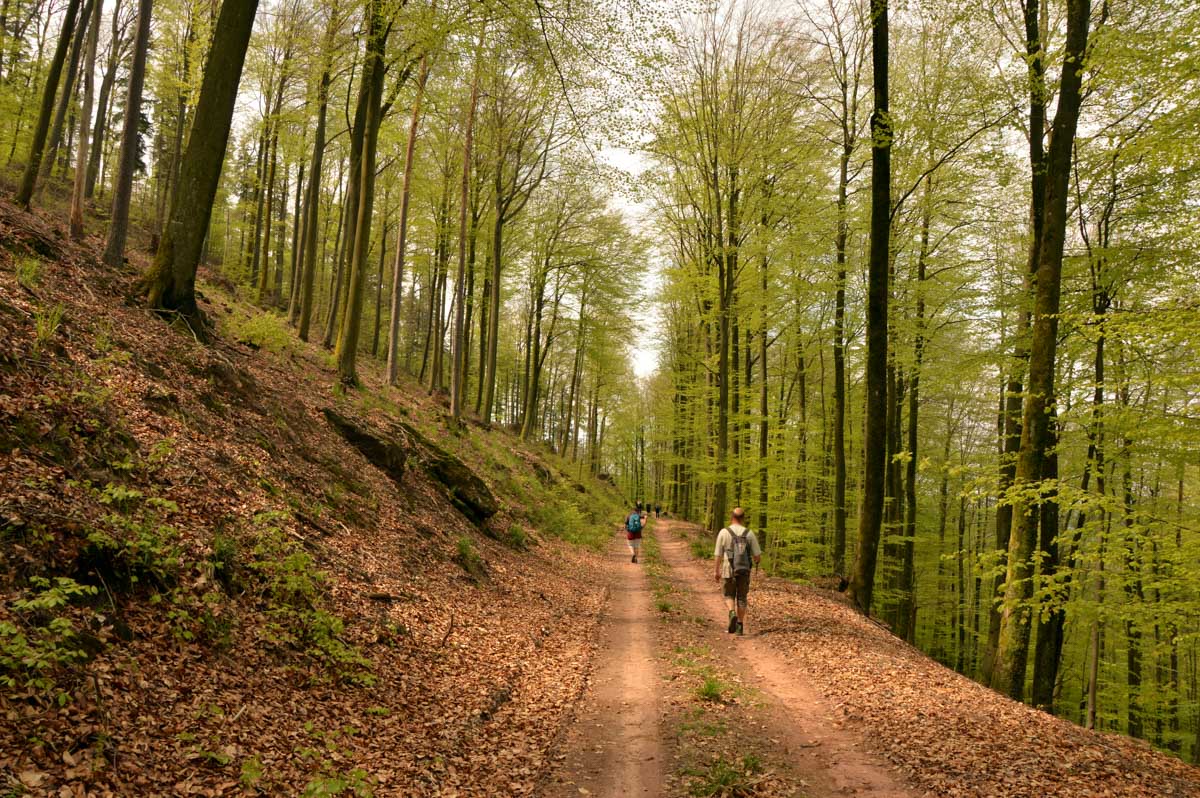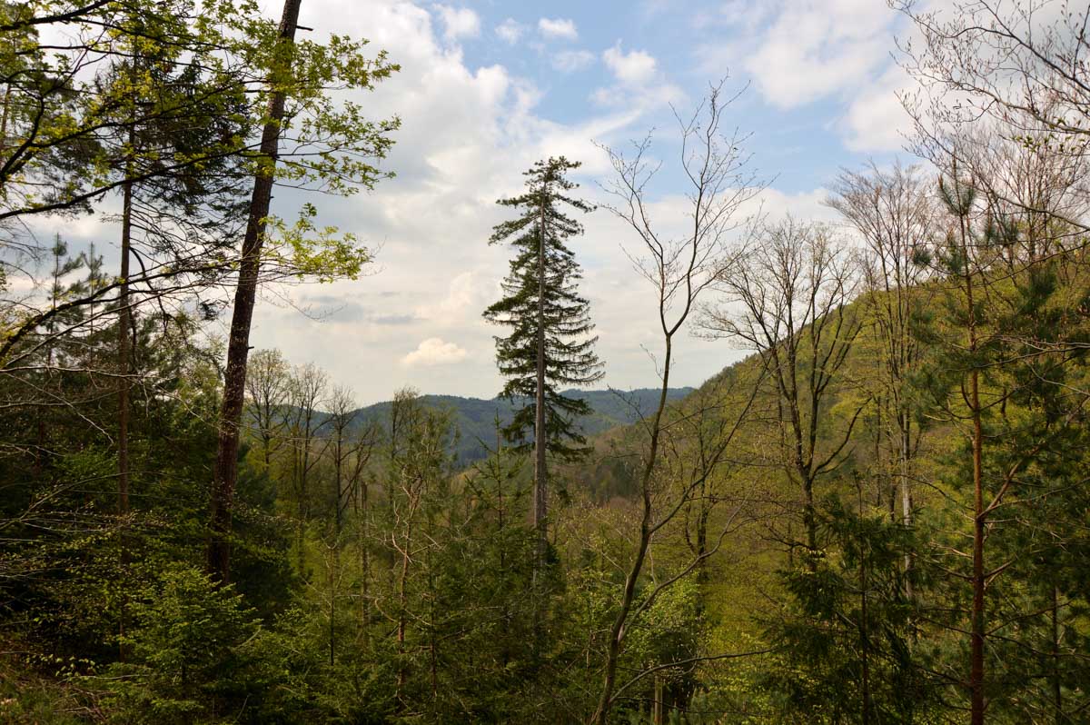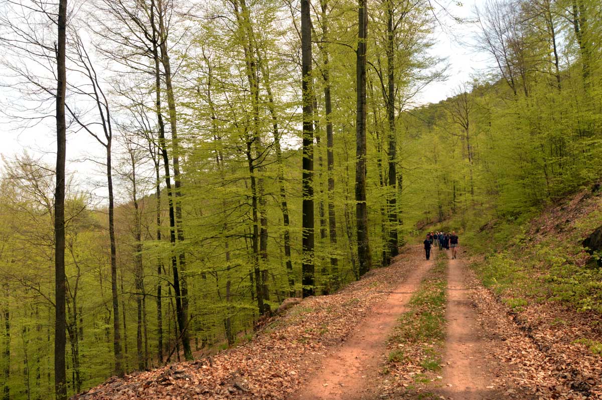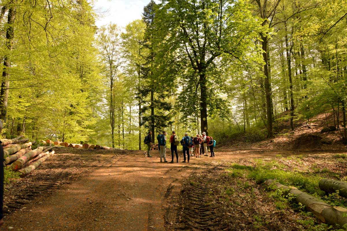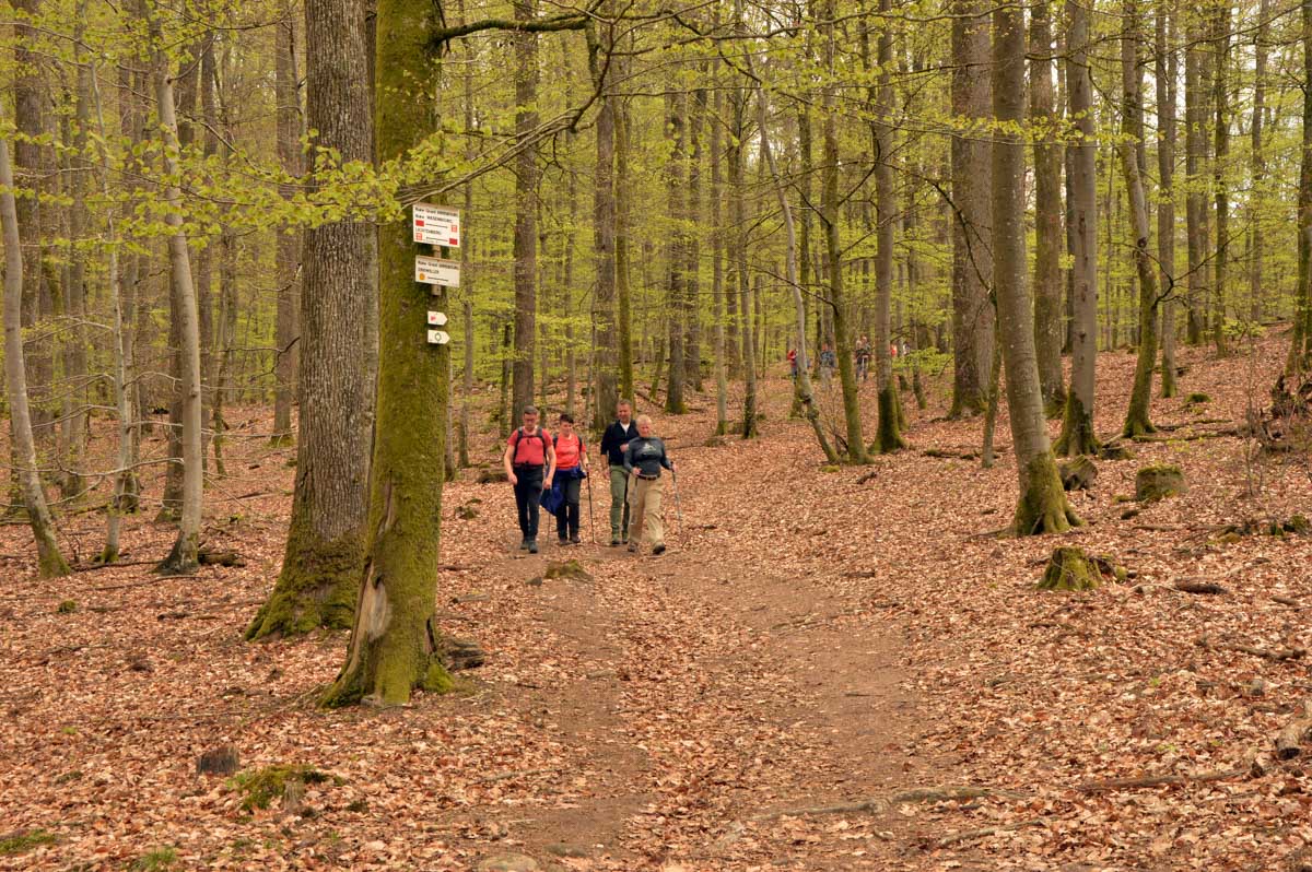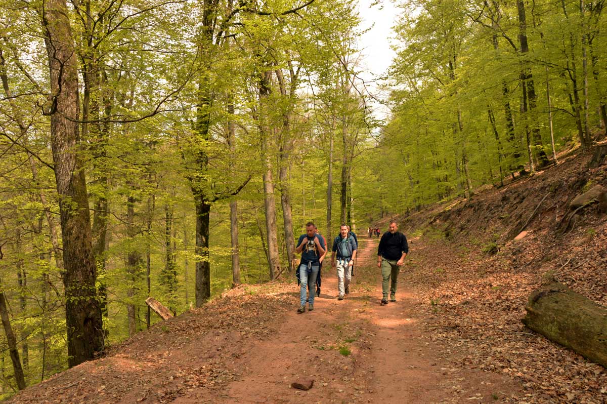 Craignant un concert de casseroles pour ce 1er mai, le président s’est empressé d’occuper ses troupes en les faisant nettoyer le logis, avant de démarrer sans temps mort, sur les chapeaux de roue et surtout en chaussures de randonnée, pour un véritable bain de forêt vers le carrefour du Kreuzberg, le Col du Grand Hirschthal (380 mètres d’altitude quand même !) et le Col du Schlangenthal. Ça nous amusait moins : ça veut dire la vallée des serpents.