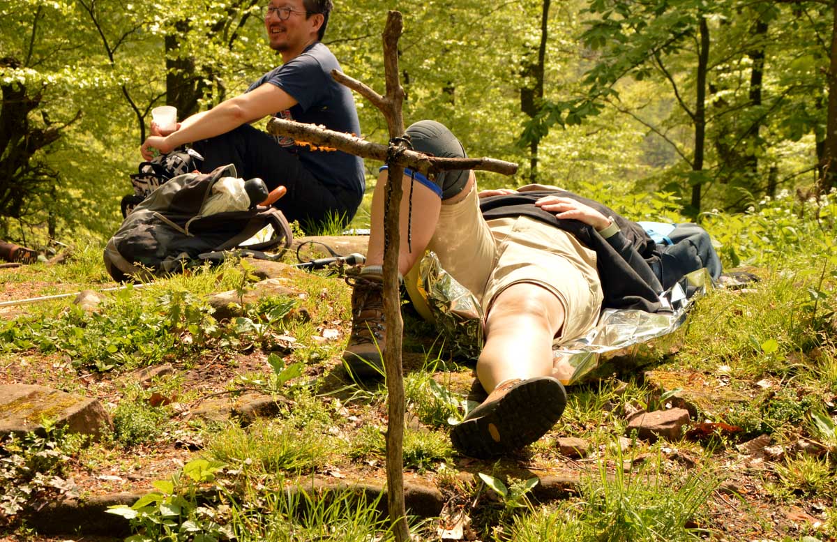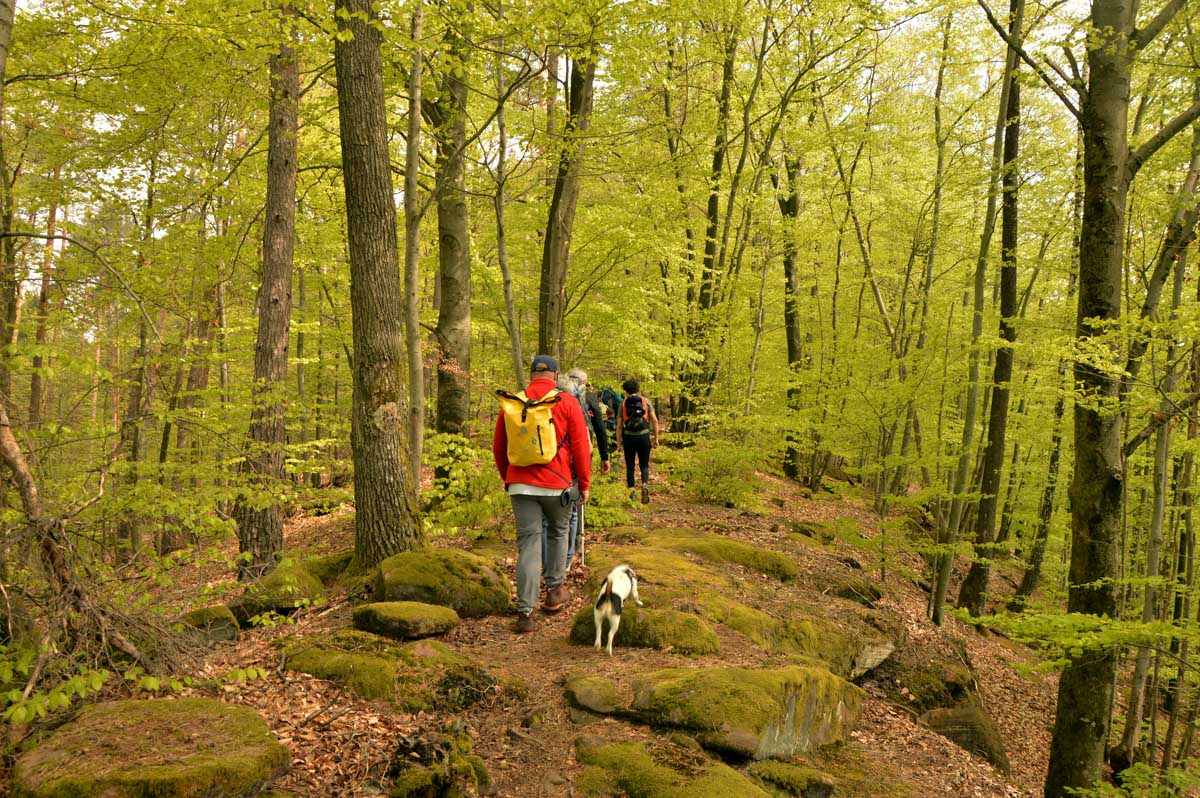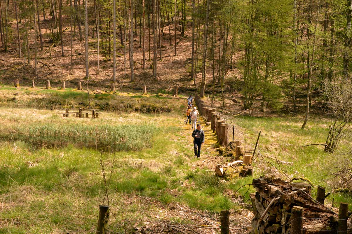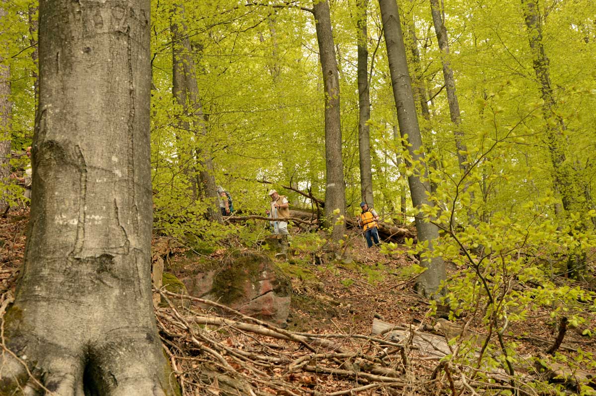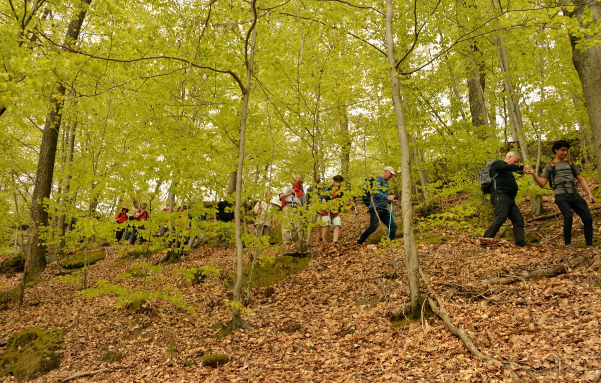 Craignant un concert de casseroles pour ce 1er mai, le président s’est empressé d’occuper ses troupes en les faisant nettoyer le logis, avant de démarrer sans temps mort, sur les chapeaux de roue et surtout en chaussures de randonnée, pour un véritable bain de forêt vers le carrefour du Kreuzberg, le Col du Grand Hirschthal (380 mètres d’altitude quand même !) et le Col du Schlangenthal. Ça nous amusait moins : ça veut dire la vallée des serpents.