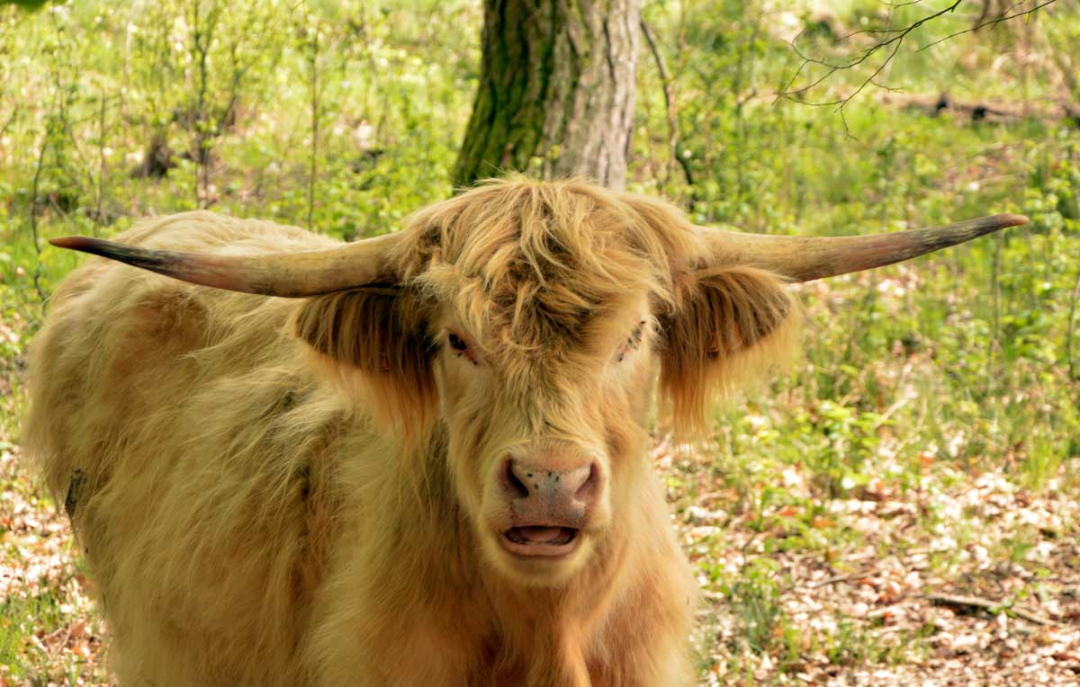 Bien que nous ne fussions point en Ecosse (hé t’as vu comme j’écris, hein ?), nous vîmes cette fois de très près des bovins highlands, l’air paisible et méditatif, mais avec des cornes tout à fait dissuasives.