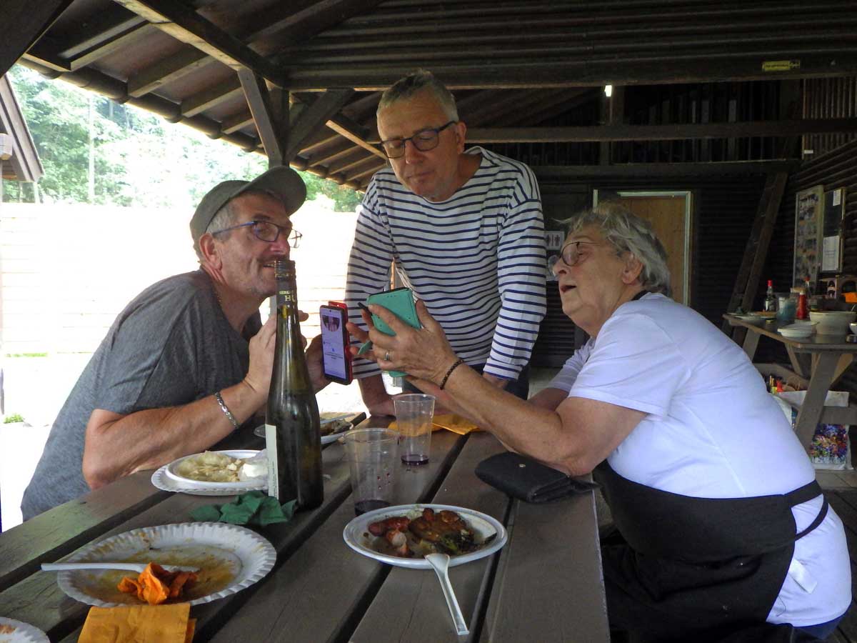 Eh oui, le last minute est arrivé jusqu’à nous et c’est un peu au dernier moment que nous avons su que nous pouvions nous retrouver à nouveau pour un barbecue entre amis. Nous étions dix-neuf tout de même ! Et quelle variété de salades, de desserts, et bien sûr de boissons… Y sont bien nos organisateurs, la Catherine qui a tout réservé et géré, le Jean-Luc qui a royalement géré les courses, la Josiane qui a joué à la reine du barbecue, le Christian qui s’est improvisé aide-cuisinier, et tous les autres qui ont mangé tout ça !
