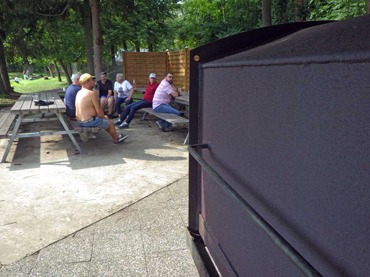 Ça grillait ferme ce samedi 5 août au bord de l’étang, que l’on appelle depuis un moment « notre étang ». Les cuisses de poulet rôtissaient, les merguez grillaient, les chipo lataient (je viens de l’inventer), les autres saucisses suaient tout ce qu’elles pouvaient, les courgettes brunissaient, les poivrons ramollissaient, et le pot de moutarde se vidait !
