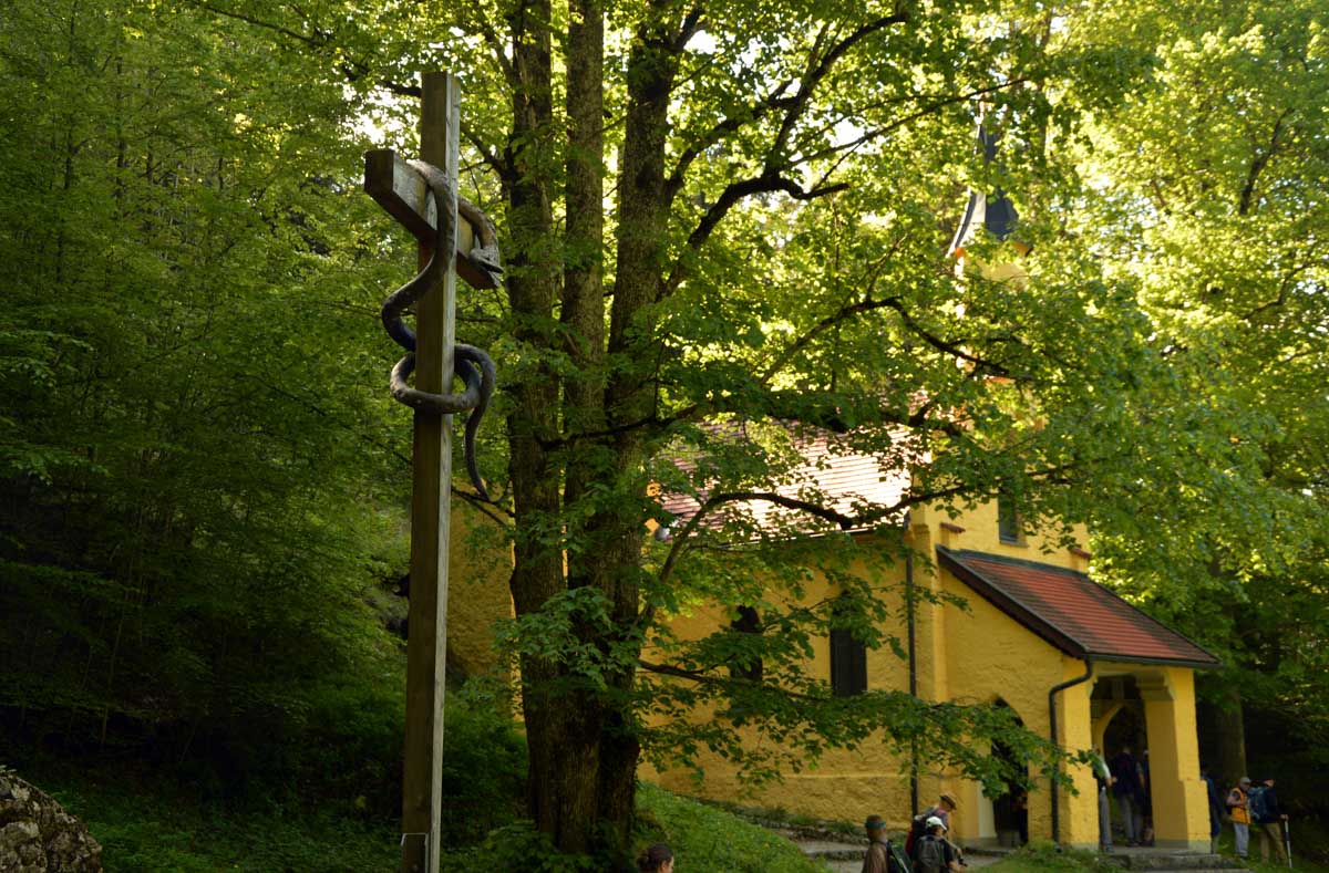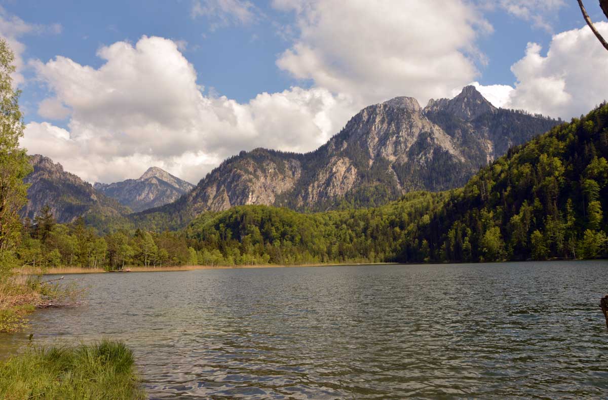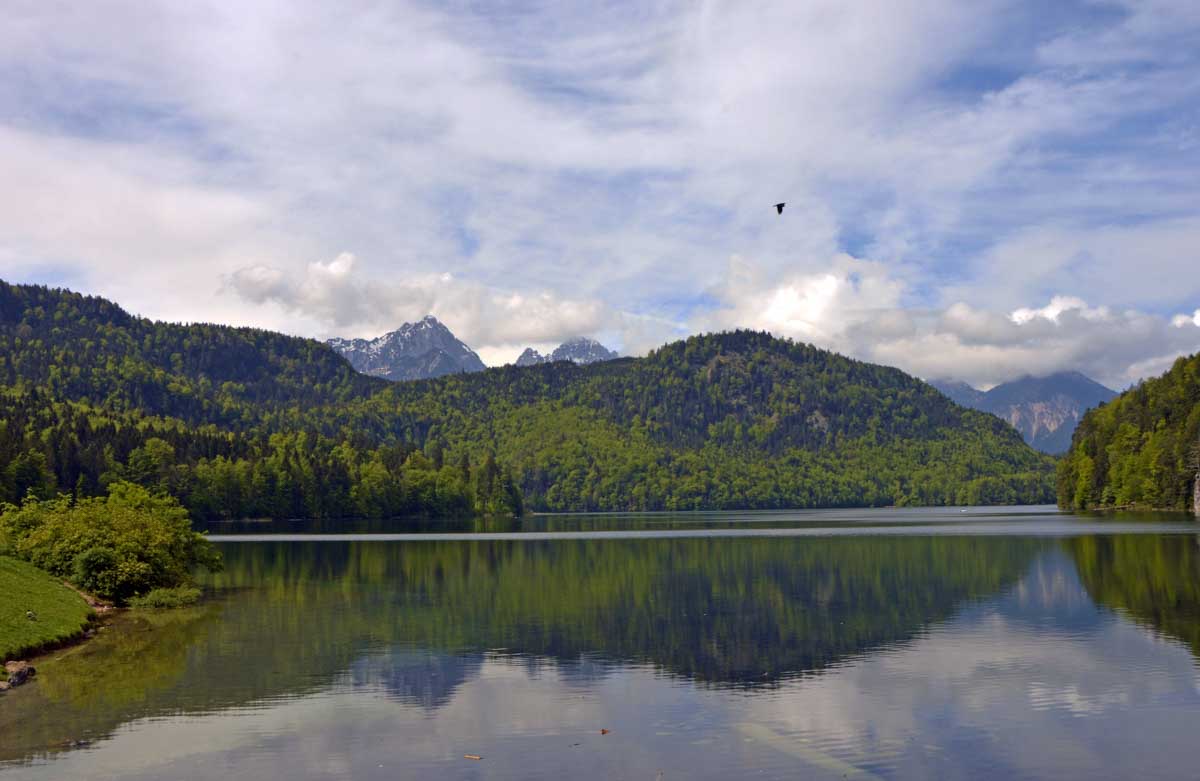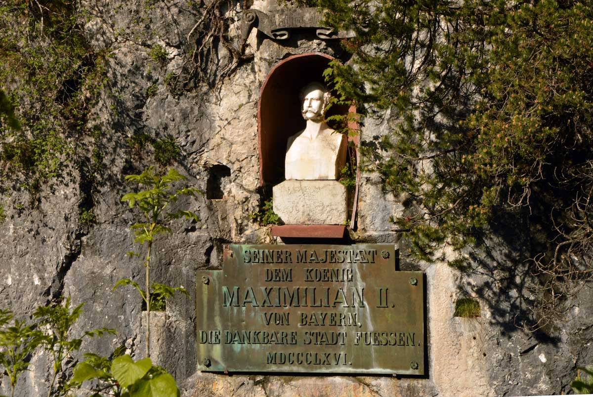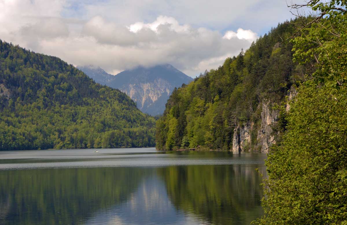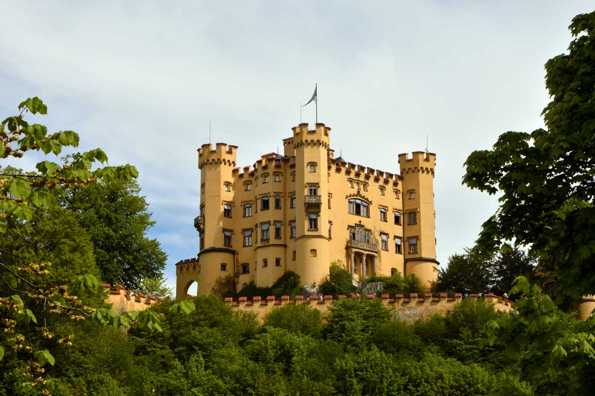 Nous parcourûmes donc le sentier en balcon depuis Füssen jusqu’au très beau Alpsee, pour nous trouver mêlés aux touristes, alors que nous on est des randonneurs. Histoire de grimper sans savoir pourquoi (comme d’hab’) et de faire la queue pour nous poster sur la Maria-Brücke. Inutile de te préciser qu’y en a qui ont cru utile de le baptiser le Pont du Diable. D’un côté t’as le torrent tout là en bas, au moins des centaines de mètres, et de l’autre, oh la vache ! Oh le machin ! Tu te prends le Neuschwanstein dans la figure ! Ouah ! La Belle au Bois Dormant peut se rendormir, Cendrillon peut retourner au bal et Blanche-Neige peut aller convoiter le huitième nain et accoucher du neuvième, nous on a le vrai truc en vue. Construit entre 1869 et 1886, romantique en plein, moi je me serais bien imaginée y habiter. Depuis ma tour, je scruterais à la jumelle les prétendants qui me prétendraient en shorts en cuir.