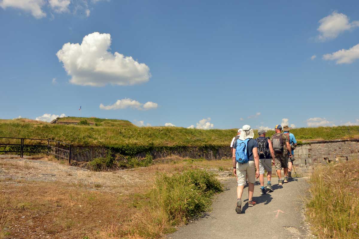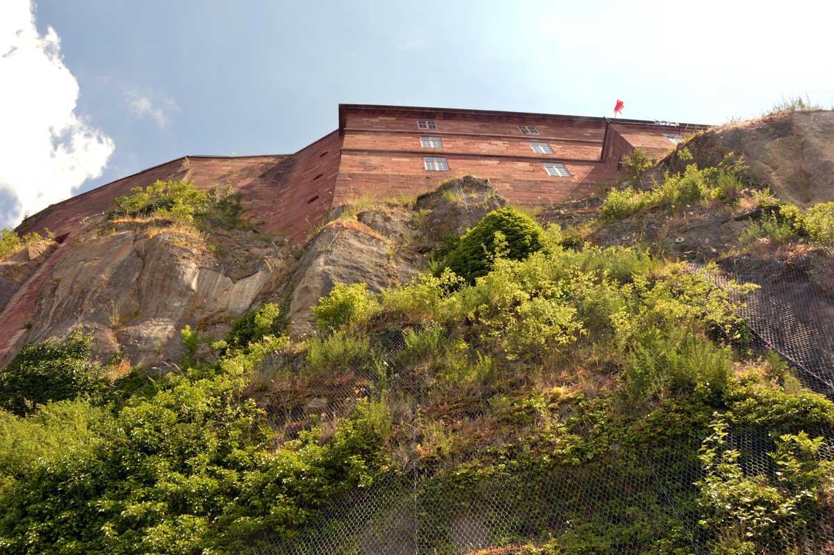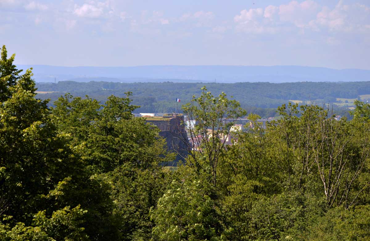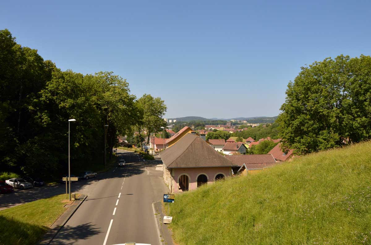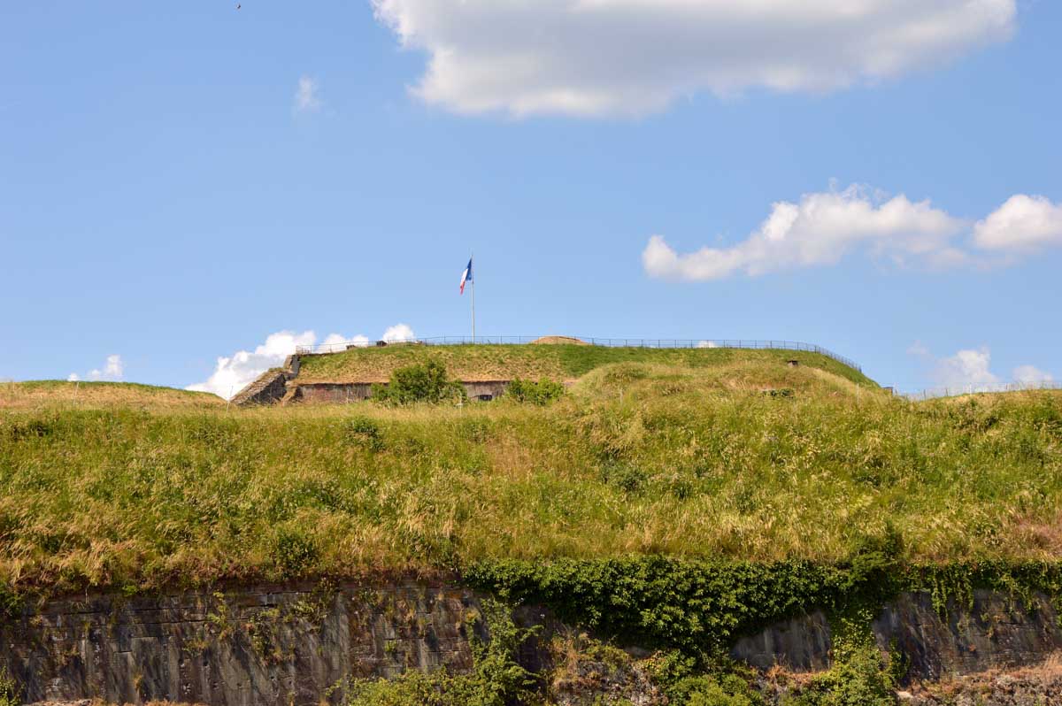 C’était chouette, alternance nature et ville, en commençant par la promenade à l’ombre vers le Fort de la Justice puis le Fort de la Miotte qui donnent le ton : Belfort se trouve dans sa fameuse trouée (alors qu’à Bâle ça s’appelle un trou, mais bon), qui permet le passage de la plaine du Rhin vers la Bourgogne, entre les Vosges, le Rhin et le Jura. La Miotte date des années 1830 et servait à défendre la Ville.