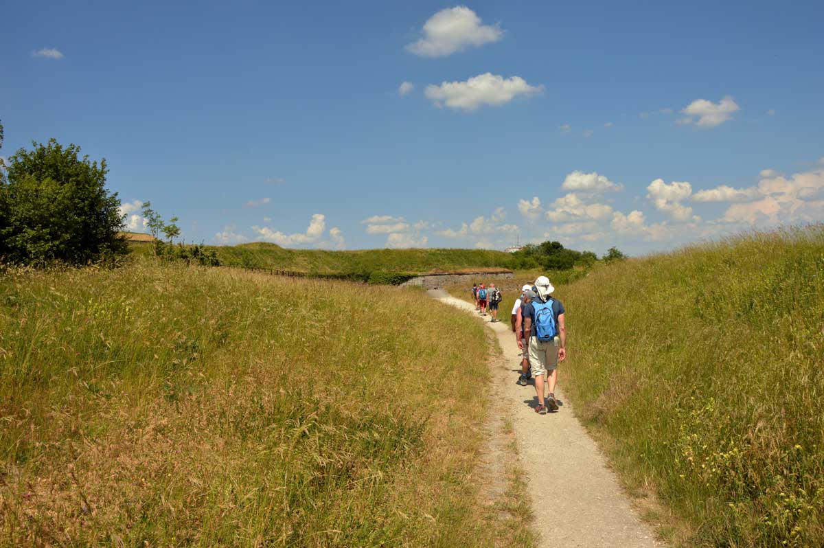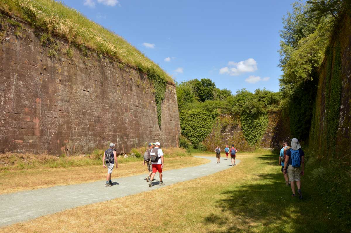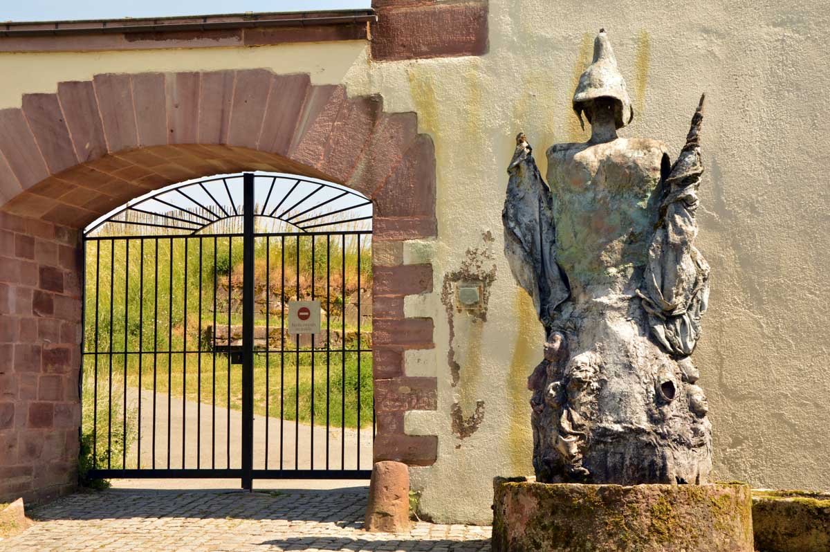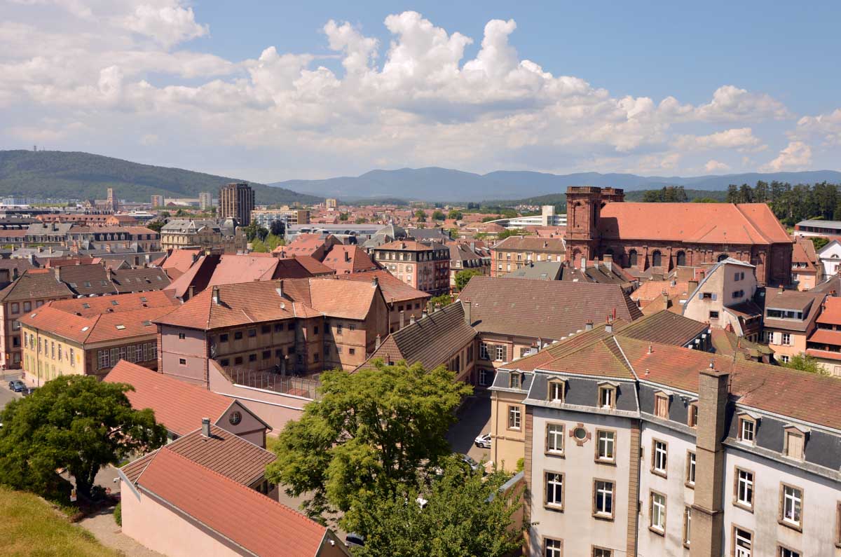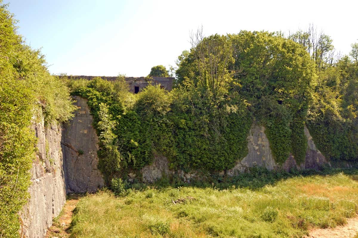 C’était chouette, alternance nature et ville, en commençant par la promenade à l’ombre vers le Fort de la Justice puis le Fort de la Miotte qui donnent le ton : Belfort se trouve dans sa fameuse trouée (alors qu’à Bâle ça s’appelle un trou, mais bon), qui permet le passage de la plaine du Rhin vers la Bourgogne, entre les Vosges, le Rhin et le Jura. La Miotte date des années 1830 et servait à défendre la Ville.