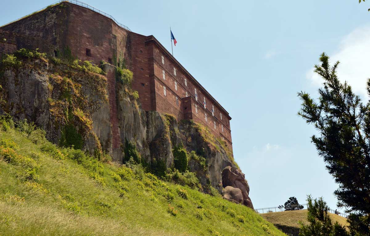 Plus loin, un château du Moyen-Âge constituait l’autre partie de la défense et serait sans doute dans le même état que nos chères ruines vosgiennes si le père Vauban n’était pas passé par là. Il y a érigé le bazar qu’on connaît, régulièrement agrandi et adapté par la suite. Et en 1870, les casques à pointe se sont heurtés à ces murs (on y voit encore les trous ! Euh non, en fait…). Le siège de Belfort a duré trois mois, c’était une situation d’enfer (Rochereau), et au final le Territoire est resté français, se séparant du Haut-Rhin. Hé oui, c’est pour ça que le département porte un numéro tout neuf : le 90.