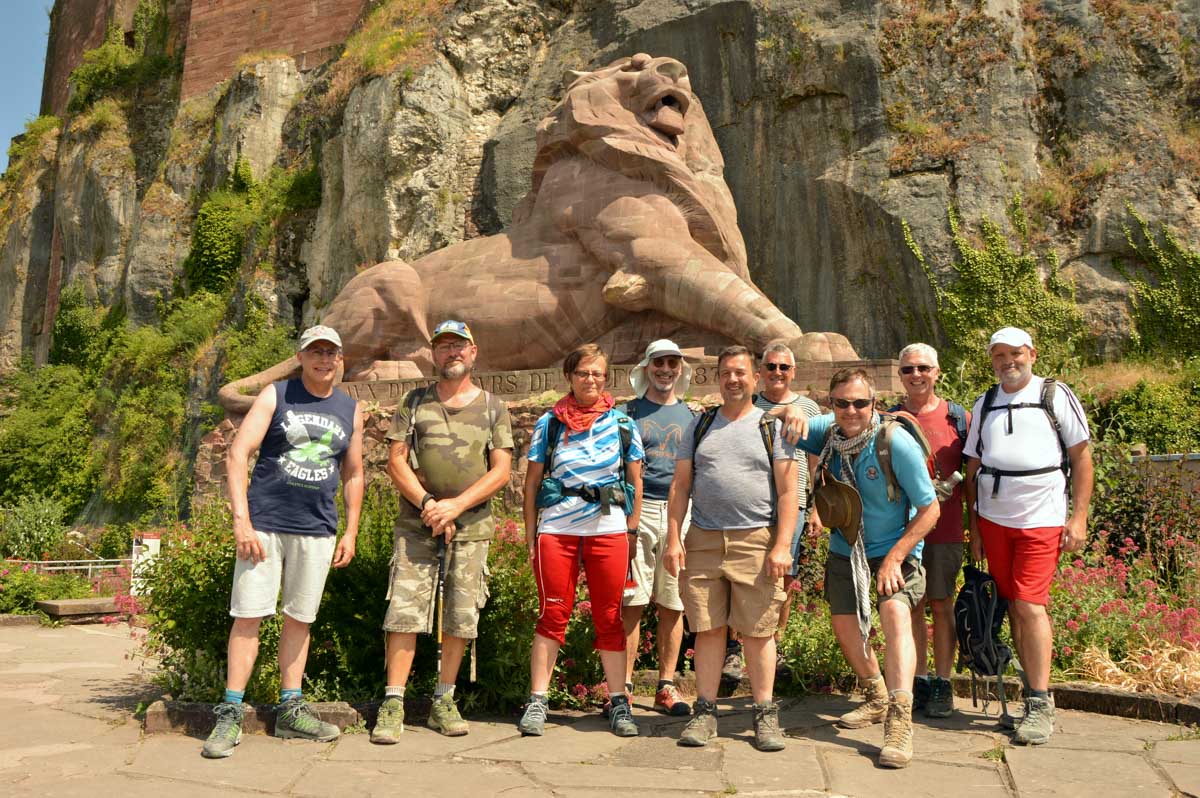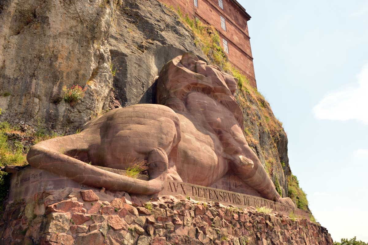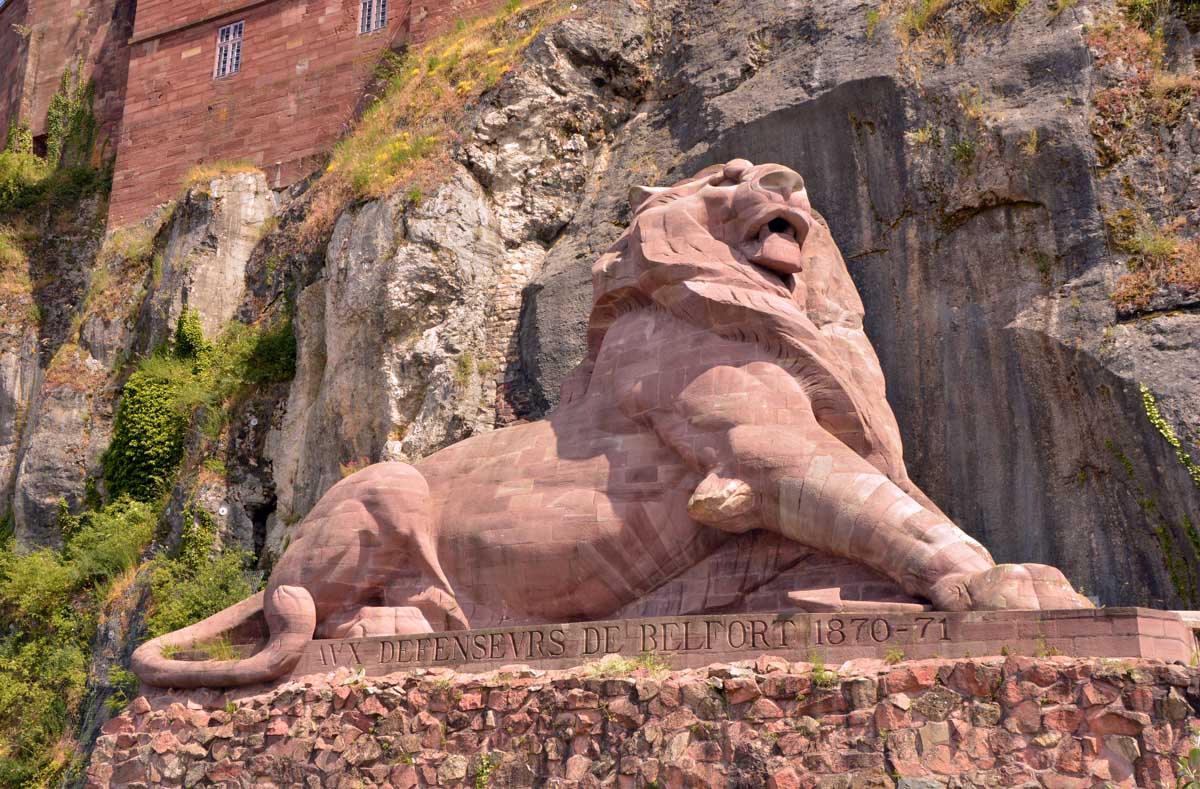 En l’honneur de la résistance de la ville, notre Bartholdi local, oui celui qui a construit la Statue de la Liberté de New York, a construit le nouveau symbole de Belfort : un lion en grès de onze mètres de haut et vingt-deux de long (queue comprise). Initialement, la bestiole devait faire face à l’Allemagne mais ça ne convenait pas au vieux Bismarck, du coup Bartho a installé le félin tournant dédaigneusement le dos à Otto ! Ils aiment bien les fauves dans le coin puisqu’en 1858 déjà, une fameuse marque automobile locale avait le lion comme symbole, mais c’est une autre histoire… Ce qui fait que le lion franc-comtois orne même la voiture de Columbo ! Ah j’oubliais un petit détail qui m’a tracassé : il faisait très chaud !