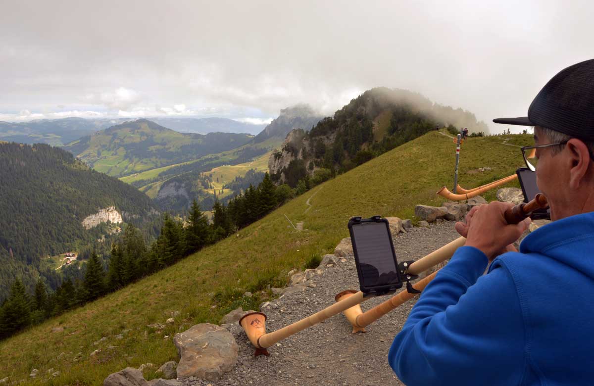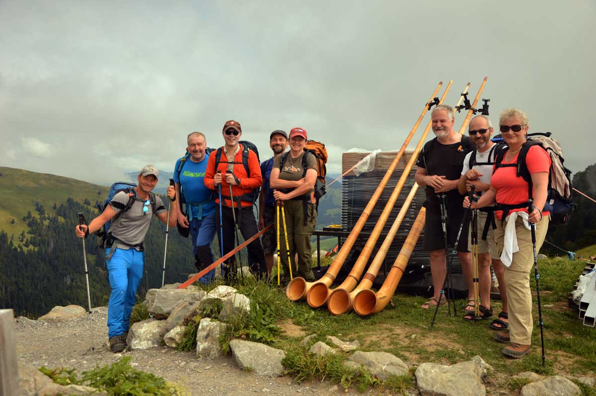 Après un énième col, une auberge ! Tiens donc ! Et un café, un ! Au Gasthaus Staubern avec en prime un petit concert de cors des Alpes. La surprise du jour ! Genre l’instrument fait deux fois la taille du musicien mais il est plus sympa que mon cor au pied ! Bravo l’animateur de nous avoir offert ce moment !