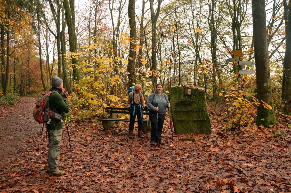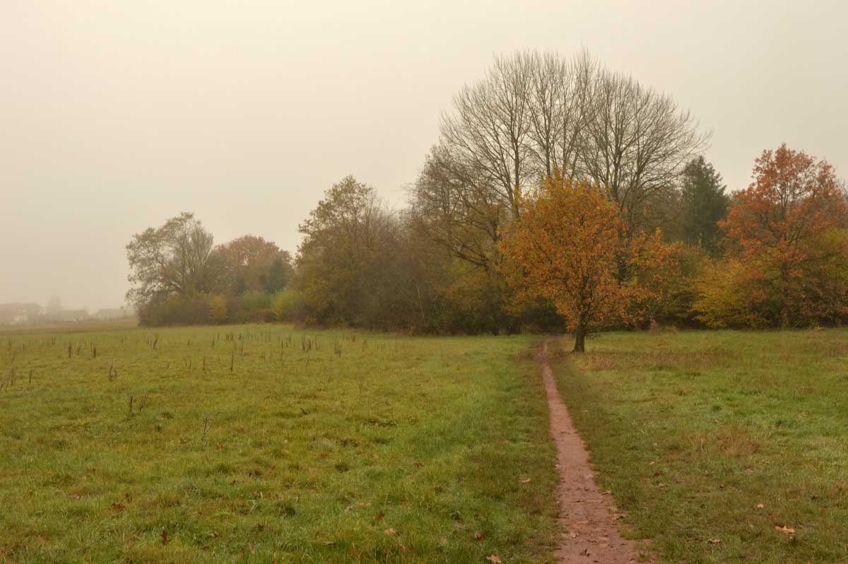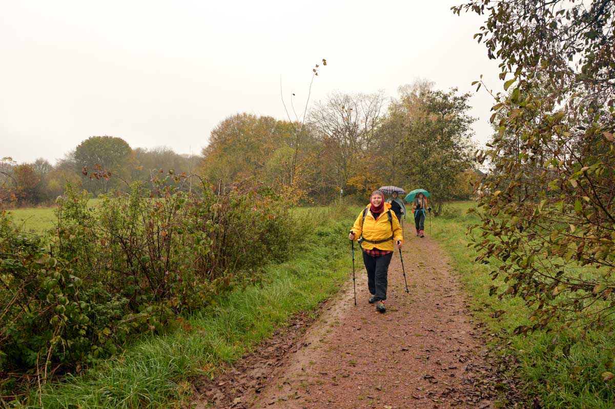 Comme il est question de nous piquer encore un jour férié, on s’est fait le 11 novembre au cas où que ça tomberait sur lui. Et si tu veux être mauvaise langue et me dire qu’on a encore marché dans le brouillard, ben tu te trompes, mon petit coq (le canard est pas dispo), parce qu’on a aussi marché sous la pluie. Tu l’attendais pas celle-là, hein ?