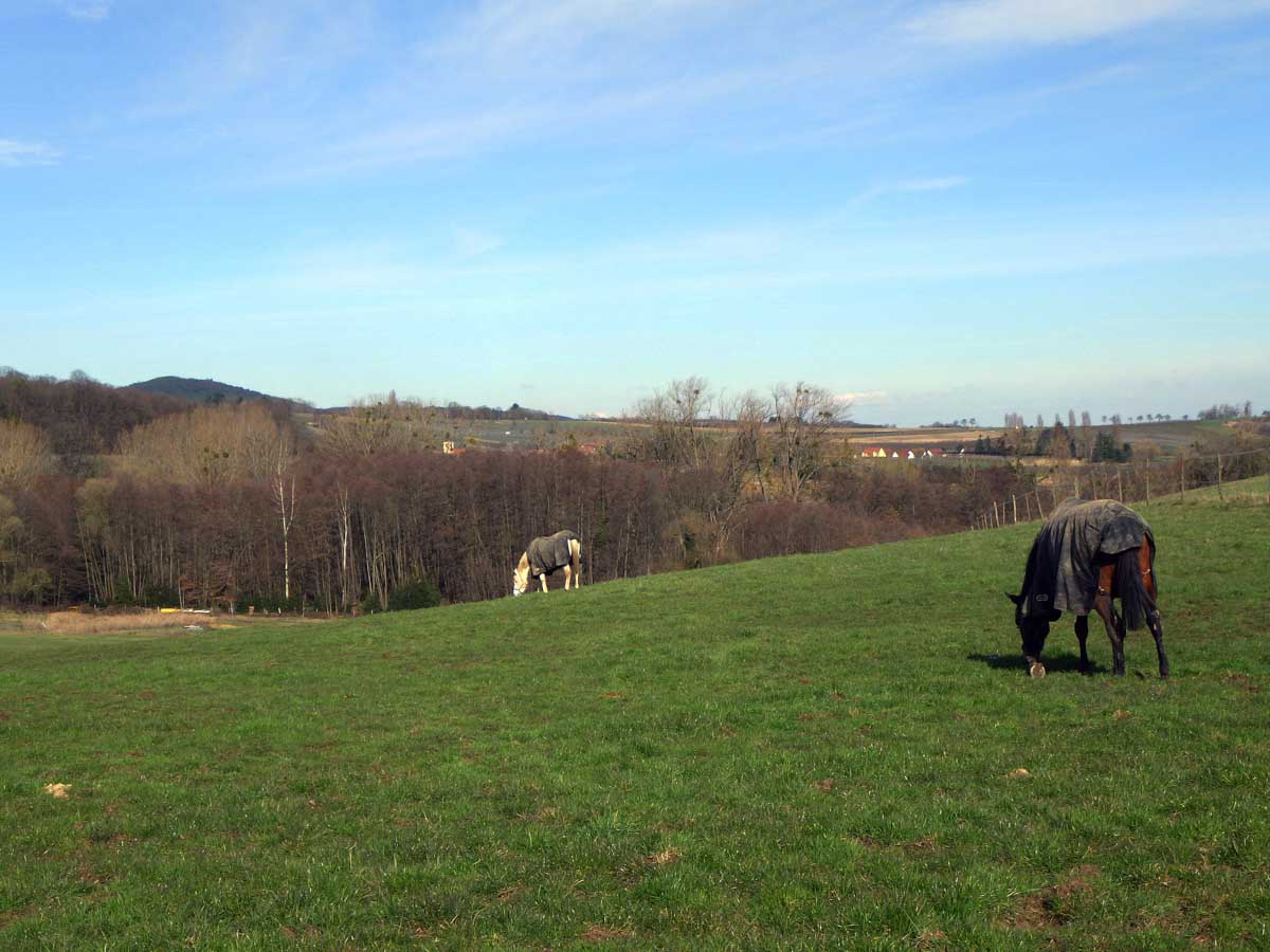 J’en étais où, du coup… Ah oui : les collines. Non, pas comme le prénom ! Avec deux « L », comme dans « Apolline », là, tu comprends ? Les collines de l’Outre-Forêt, au pied du nord des Vosges du Nord. Et à ton avis, pourquoi j’aime bien le secteur ? Hé oui, parce qu’on y produit du vin ! Paysage de vignes inattendu ici. Oui tu connais le vignoble du Haut-Rhin, ou de l’ouest de Strasbourg, mais là-haut, il y a du bon vin aussi. Va en déguster à la Cave de Cleebourg et tu m’en diras des nouvelles ! Puis s’il te plaît pas, c’est pas grave, je le boirai moi-même.