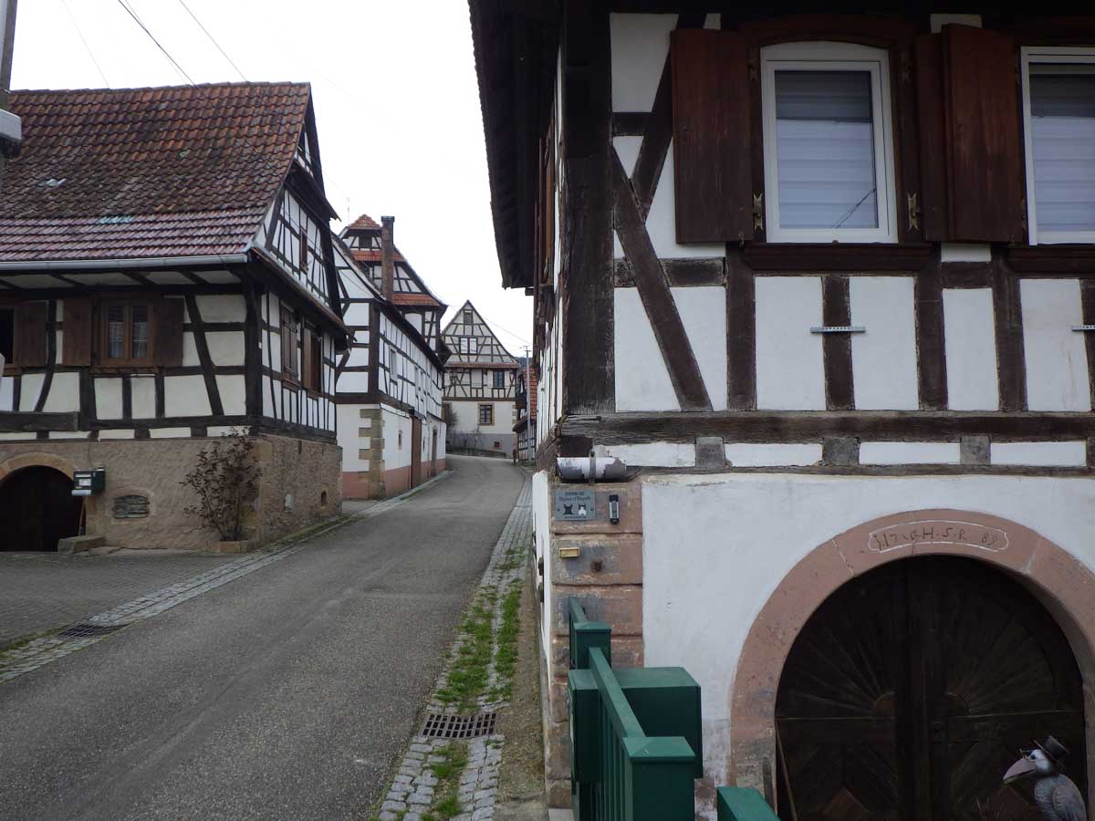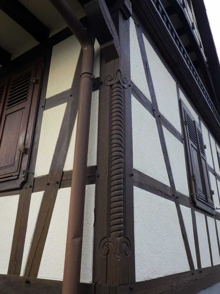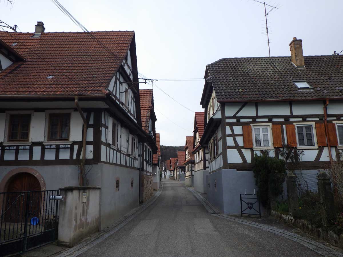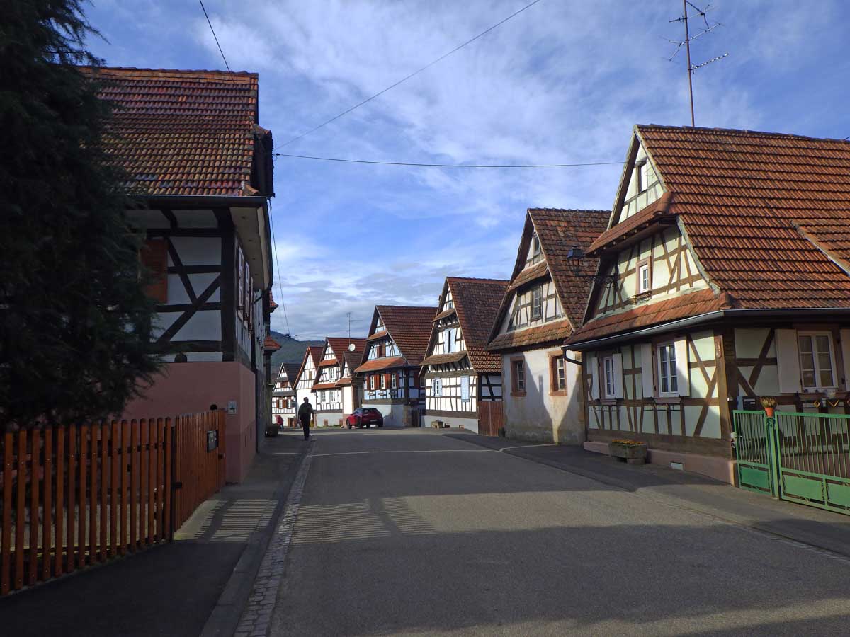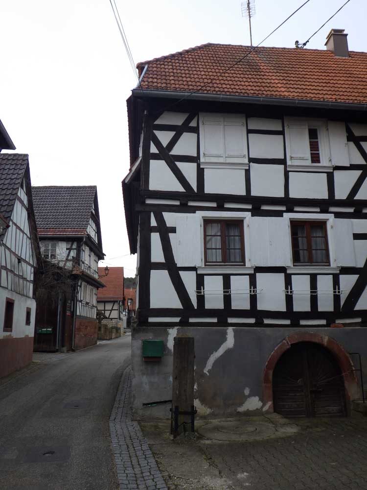 Depuis les Romains qui ont apporté la vigne, il a bien fallu stocker tout ce pinard (je peux pas tout boire non plus), alors dans Cleebourg, les maisons alsaciennes sont assez curieuses. Des caves très hautes avec la fameuse porte voûtée pour y entrer, sur lesquelles on a déposé des maisons à colombages comme on a pu. Ça fait une rue étroite entre les hautes constructions. Je suis sûre que les américains s’en sont inspirés pour construire New York. A eux la Grosse Pomme, à nous le bon raisin !