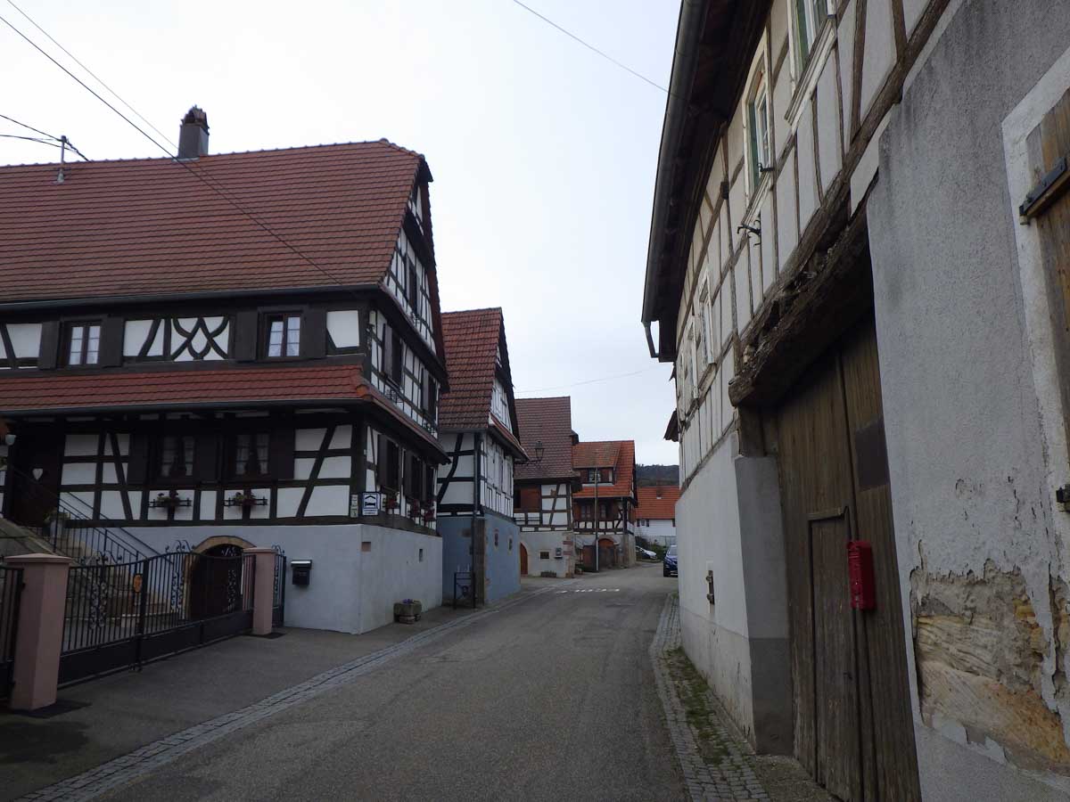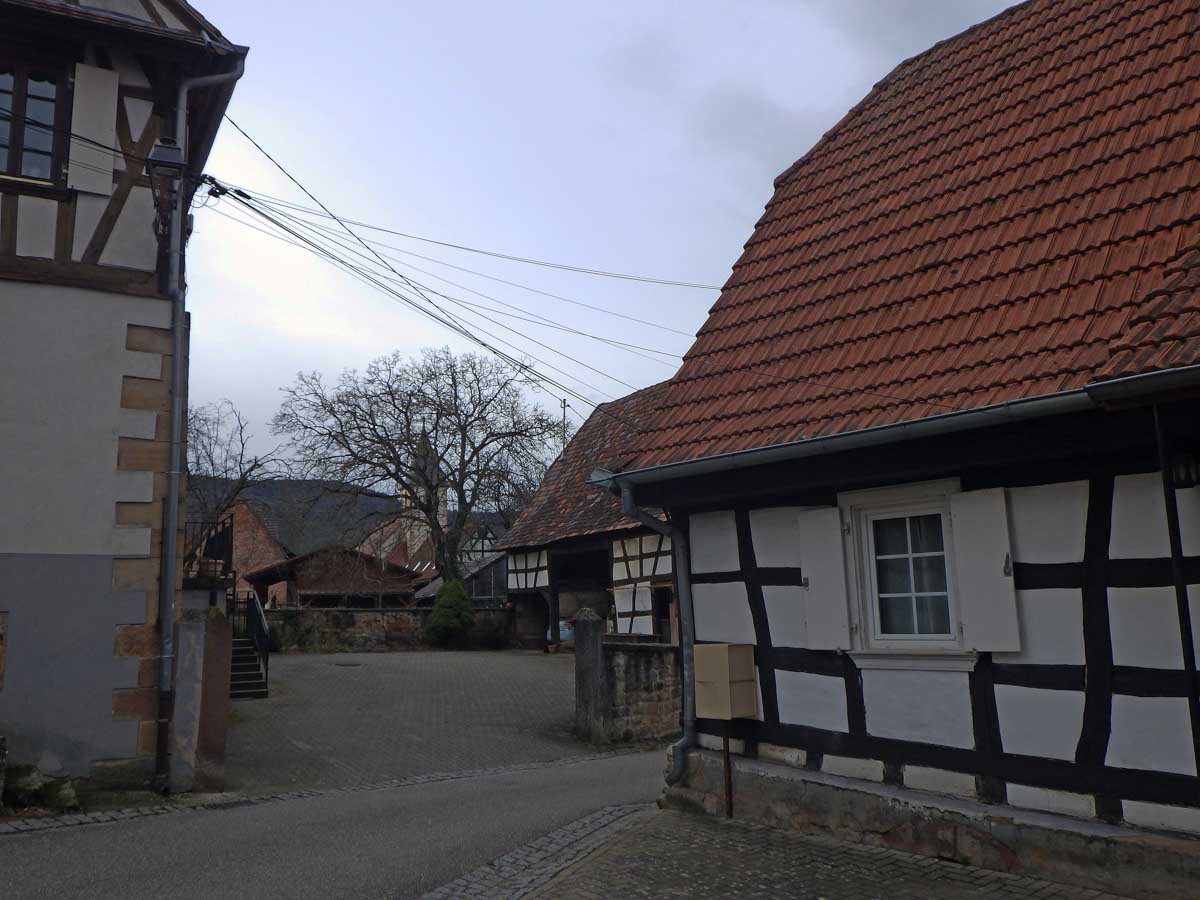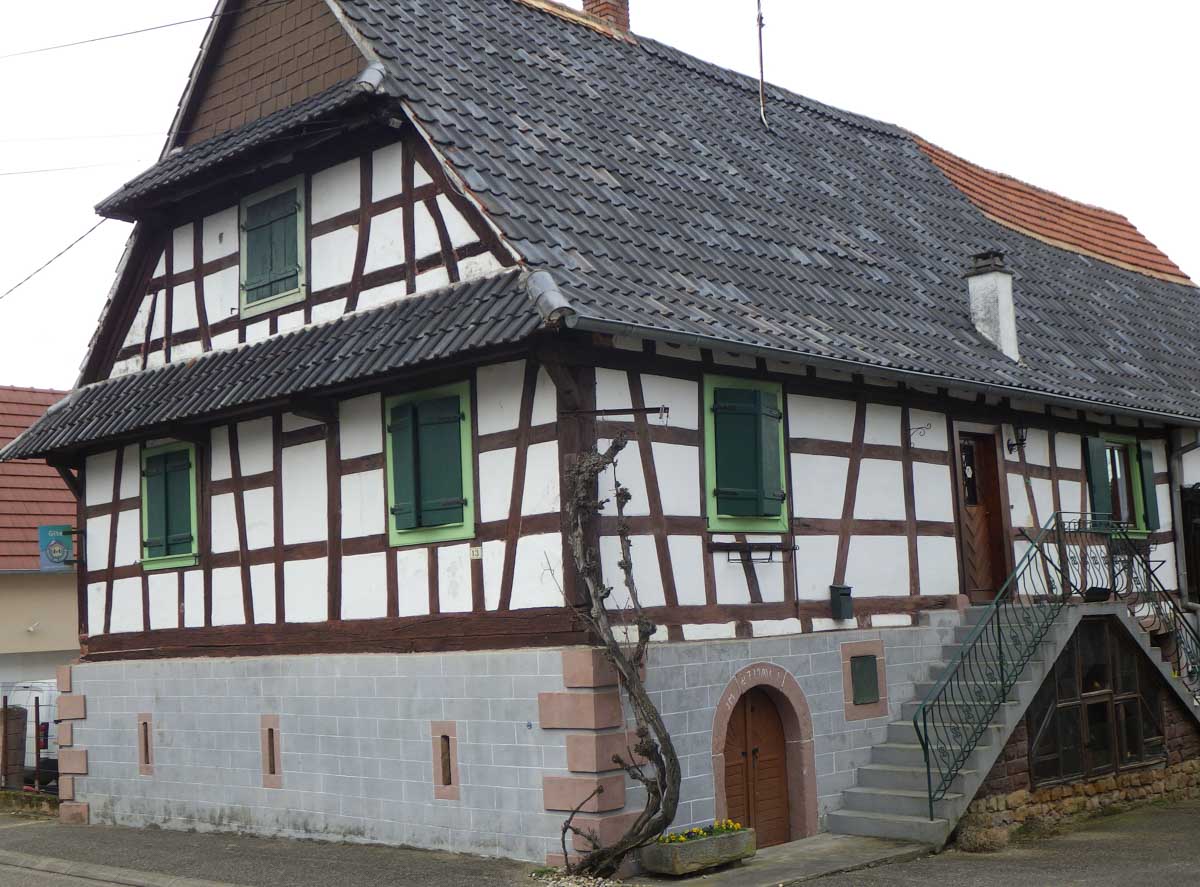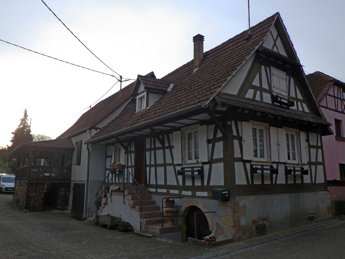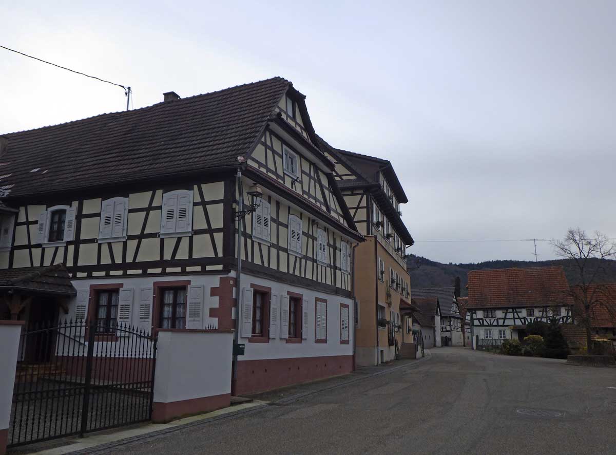 Depuis les Romains qui ont apporté la vigne, il a bien fallu stocker tout ce pinard (je peux pas tout boire non plus), alors dans Cleebourg, les maisons alsaciennes sont assez curieuses. Des caves très hautes avec la fameuse porte voûtée pour y entrer, sur lesquelles on a déposé des maisons à colombages comme on a pu. Ça fait une rue étroite entre les hautes constructions. Je suis sûre que les américains s’en sont inspirés pour construire New York. A eux la Grosse Pomme, à nous le bon raisin !