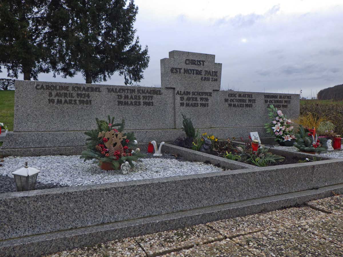 Et puis il y a l’Histoire, bien sûr. Ici tout près de la Ligne Maginot. Des enfants qui jouent avec un étrange objet qu’ils ont trouvé, un grand boum, et un village, Bremmelbach, d’un peu plus de cent habitants, meurtri à jamais. Je m’en souviens encore, quand la nouvelle est tombée… Six enfants victimes collatérales de la Deuxième Guerre Mondiale, ce 19 mars 1981. Grosse émotion en voyant cette large tombe, dans ce cimetière entre les collines (avec deux « L » comme dans « llorar », enfin « pleurer » en Espagnol).