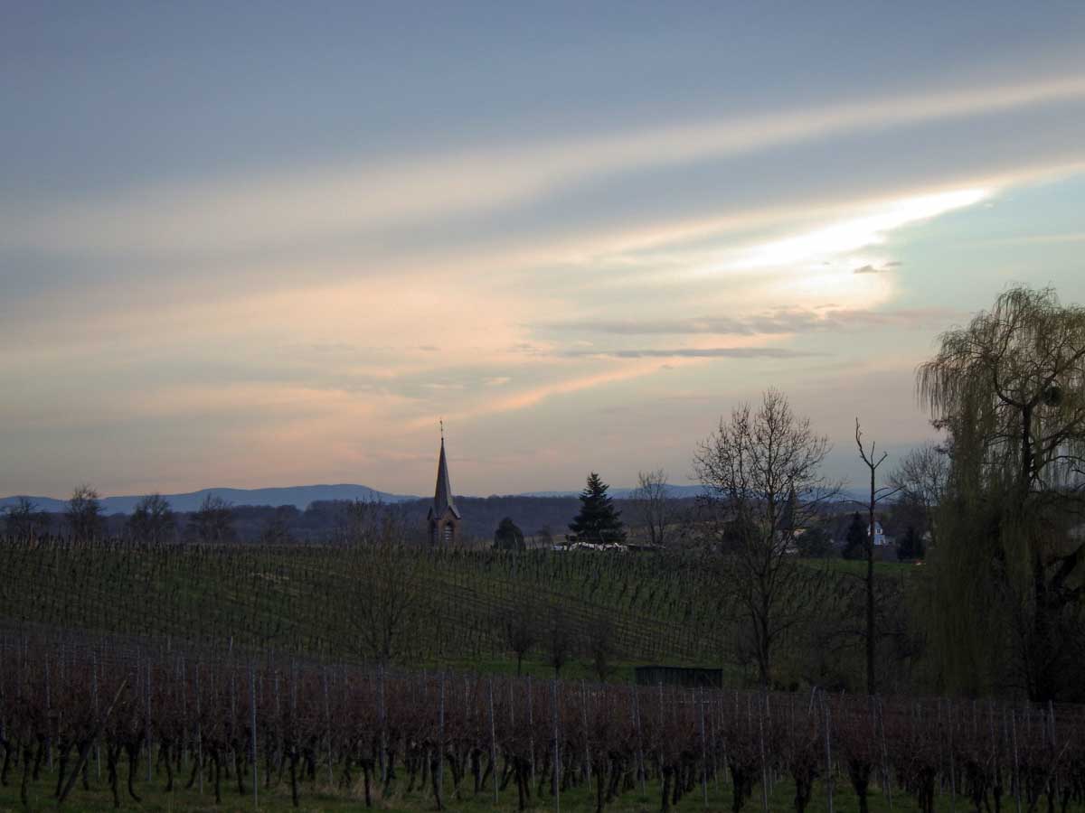 Bon avant que je m’énerve, donc… C’est entre les collines (avec deux « L » comme dans « libellule »), et sachant que oui, dans « libellule », il y a quatre « L » ce qui me fout en renaud ! Et toc ! Tu l’as pas vu venir celle-là, hein ? C’est donc entre ces foutues collines que nous découvrîmes Oberhoffen-les-Wissembourg, Steinseltz, Bremmelbach et Cleebourg, charmants villages nichés au pied de vignes millénaires, havres de paix dans la torpeur de ce printemps naissant que célèbrent déjà les oiseaux surexcités par la clémence météorologique. Selon moi, trois moineaux gourmands et un merle apathique qui commencent à draguer leurs dames.
