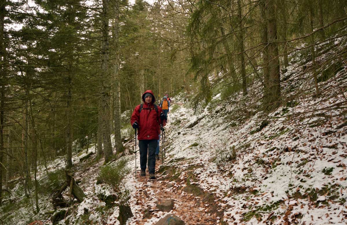 Randonnée dans la fraîcheur au départ de Zimmerbach par une tranquille montée jusqu’à la Croix de Wihr, pour la pause déjeuner. Et puis le Grand Hohnack et la superbe vue durant la montée, un parcours près de Giragoutte et une escale café à l’Obschel. Et enfin, le retour par la Chapelle des Frères.