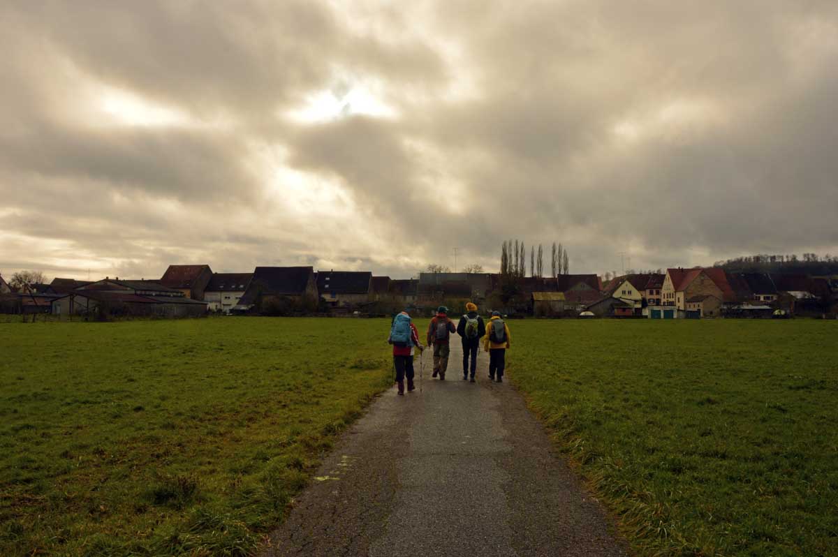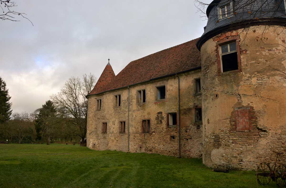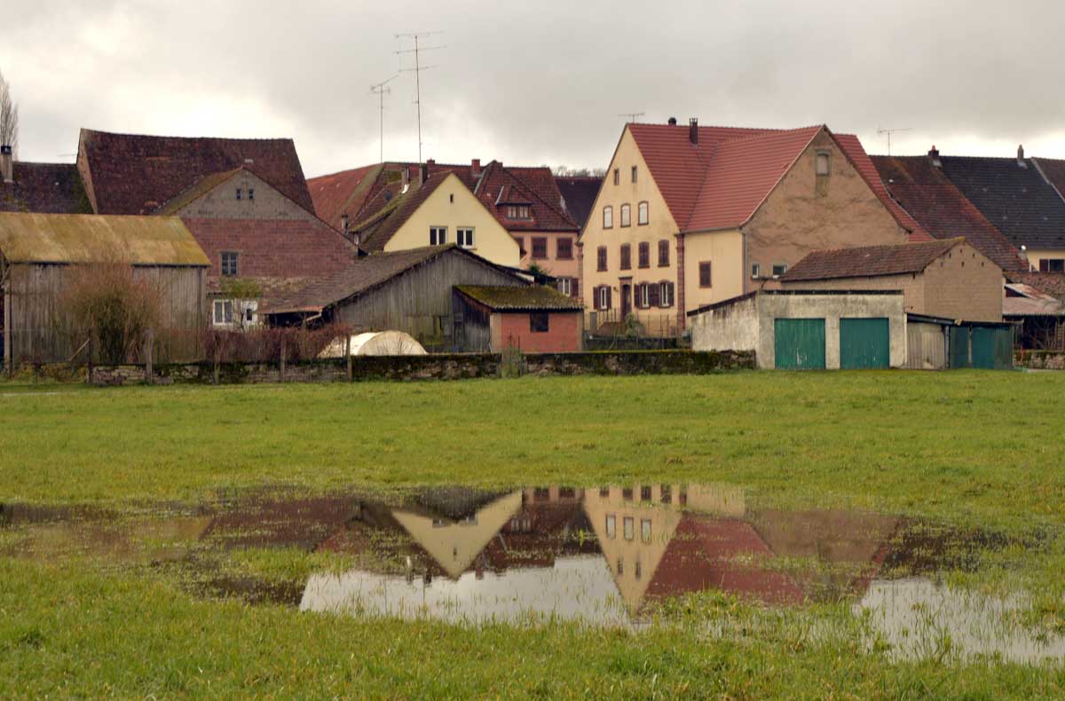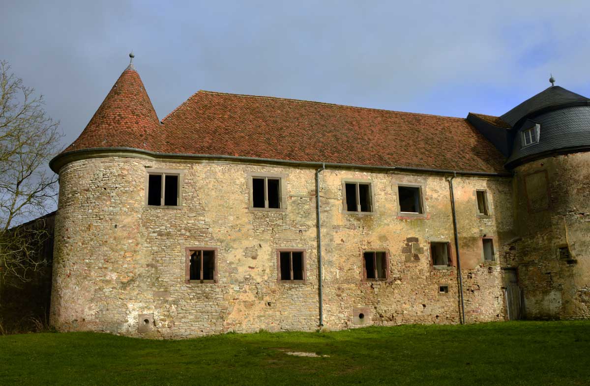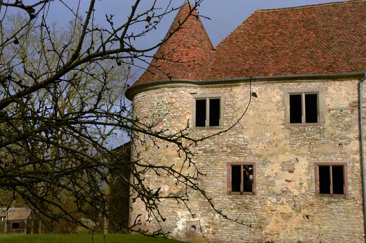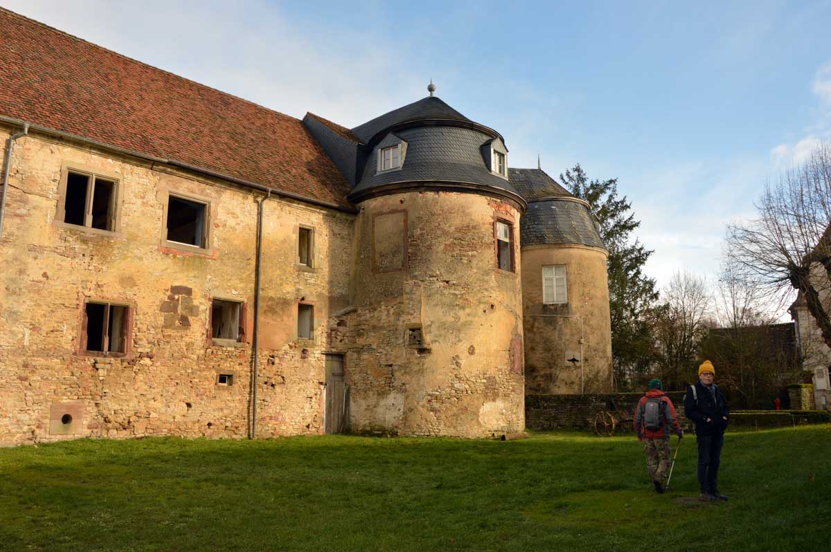 Le nom viendrait de la topographie des lieux, tout en vallons et collines, ou alors du fait que, rattachée à la France en 1793 seulement, la région devenait un peu la bosse sur le dos de l’Alsace. Tu vois cette sorte de pièce de puzzle qui émerge du Bas-Rhin pour s’encanailler dans la Moselle. Bon maintenant que t’as raccroché les wagons, apprends qu’on est partis de Dehlingen pour patauger dans les chemins boueux jusqu’à Lorentzen et son château du 14ème siècle. C’est pas une ruine, non, mais si ça continue comme ça, ça en sera une bientôt. M’a fait mal au cœur de voir ça dans cet état.
