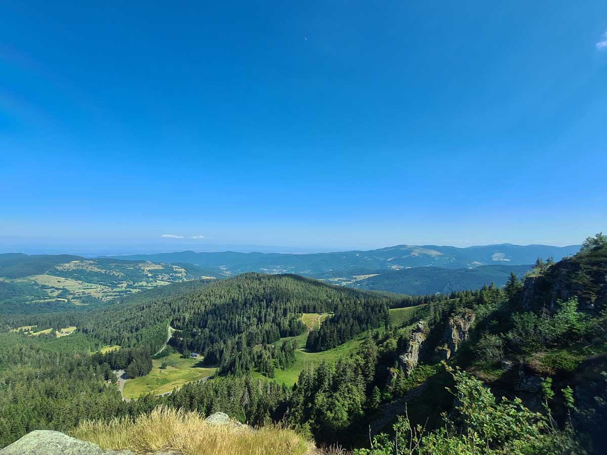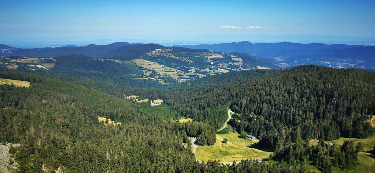 Nous n’eûmes plus qu’à rentrer par une crête plus ou moins dénudée, plus ou moins ombragée, jusqu’au Col de la Schlucht où quelques-uns, installés en terrasse, se prirent une boisson revigorante et surtout méritée !