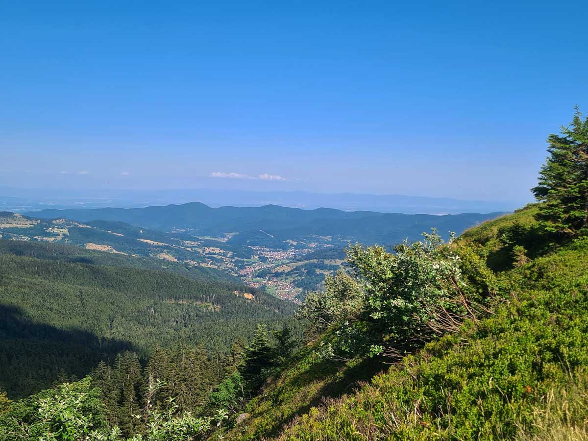 Nous nous retrouvâmes au Col de la Schlucht à 1139 m, le soleil dardait sur nous des rayons implacables, l’air était pur et le ciel lumineux. Nous attaquâmes la montée dans la forêt, vers le gazon du Faing. A mi-pente, nous obliquâmes et descendîmes vers le Tanet, toujours dans l’ombre bienveillante de la forêt.