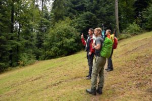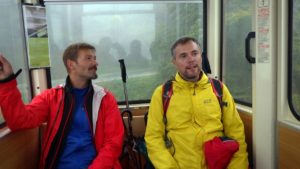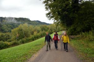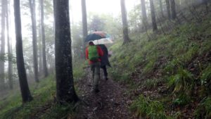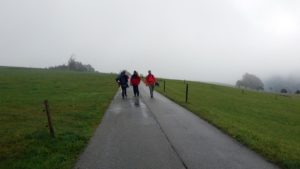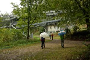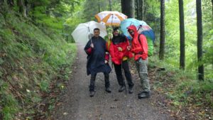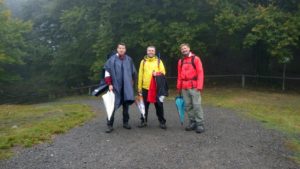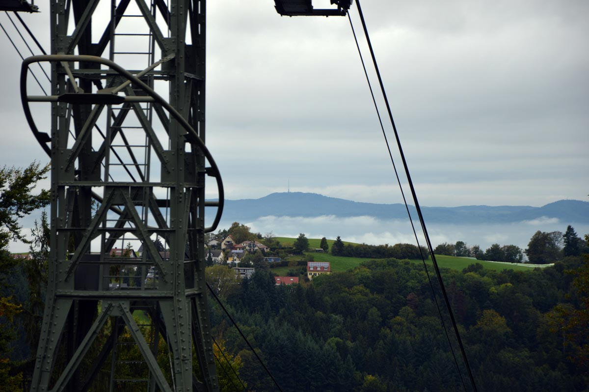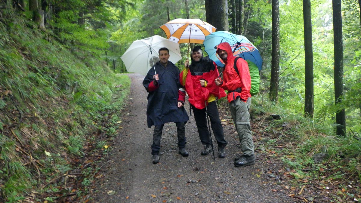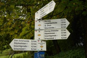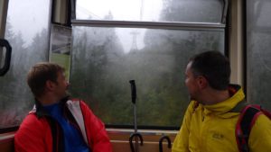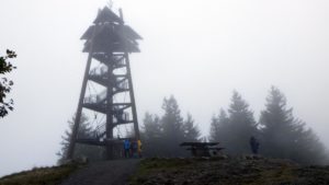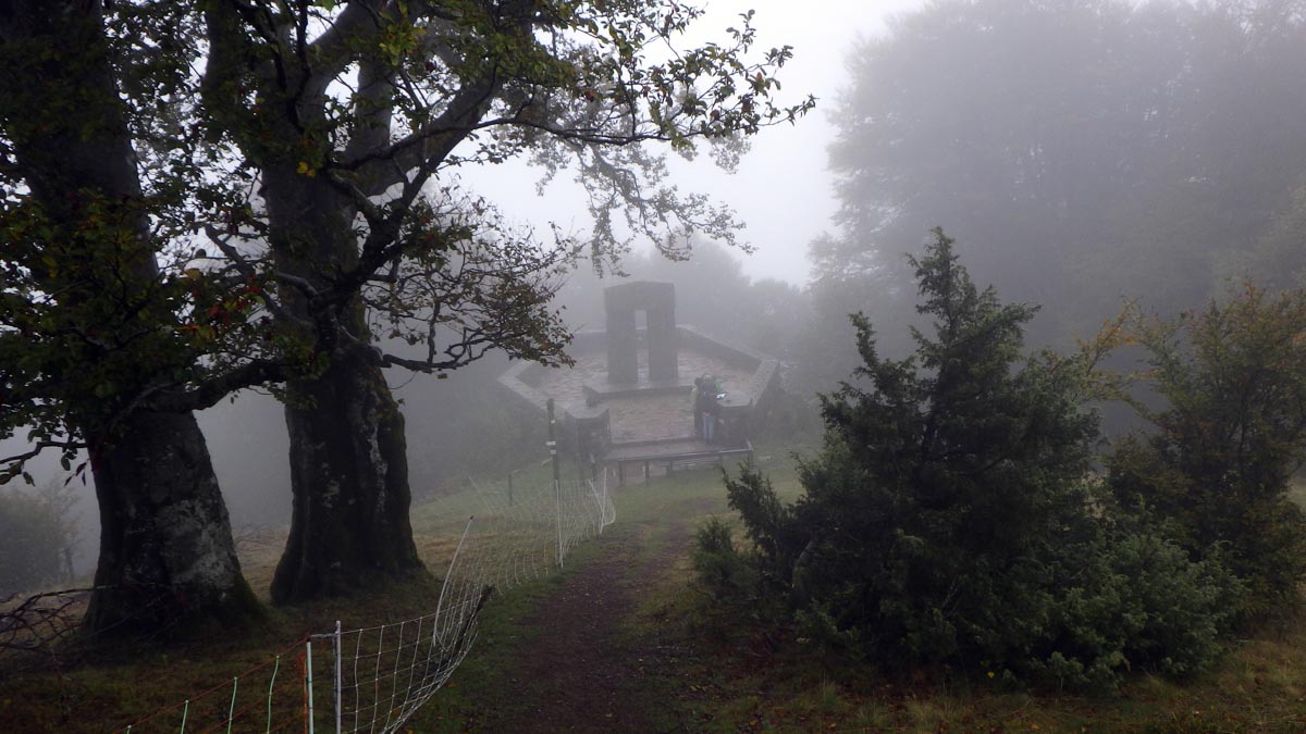 Le nom du Schauinsland, à 1284 m, signifie « regarde le pays ». Nous avons regardé mais n’avons rien vu pour cause de nuages, de pluie ou de brouillard. Mais quelle importance puisque nous nous sommes aérés durant une belle journée de rire ? Equipés, motivés, nous voici partis pour l’ascension de ce sommet de Forêt-Noire sur lequel nous attendait une tour d’observation. D’ailleurs elle nous attend toujours car nous avons juste posé au pied de son escalier !