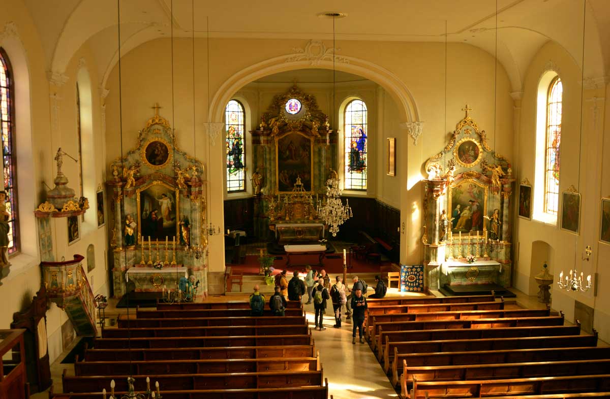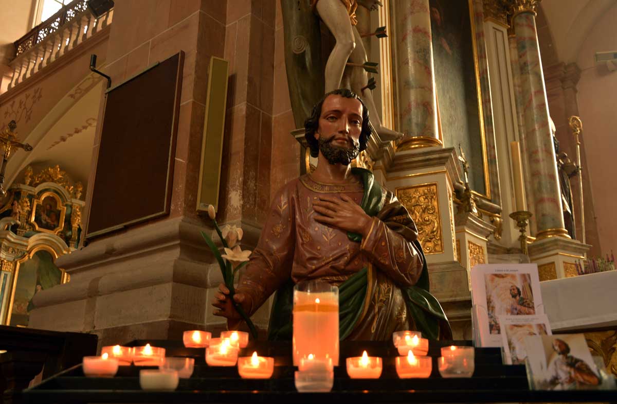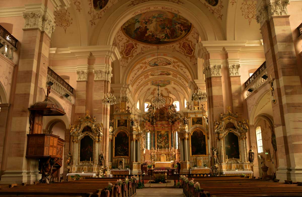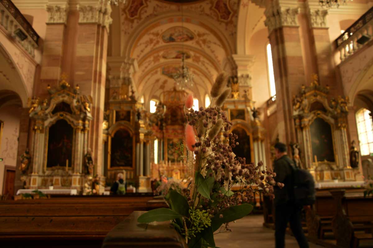 Nous nous émûmes devant tant de baroquicité dans l’églis… pardon ? La baroquicité ? Ben oui il a bien fallu que je l’inventasse parce que toi, je-sais-tout, tu dirais comment ? Du baroquisme ? Non plus ? Alors hein, au lieu de toujours me criticiser, propose ! Ah oui t’as pas ? Non rien d’espagnol on parle pas de tapas. Ce serait plutôt autrichien dans le Ried alsacien. Et donc le machin nous vient en gros du 18ème siècle. Moi je dis que c’est une merveille et je te dis mon lapin, profite et admire tant que tu peux encore, avant qu’on soit obligé de cadenasser tout ça parce qu’il y aura des cons pour faire des conneries… Tu penses bien qu’on s’est tapé une tarte flambée comme chaque année pour le plaisir de la discute et des (re)trouvailles. D’ailleurs mon canard, me goure-je où t’étais pas là ?