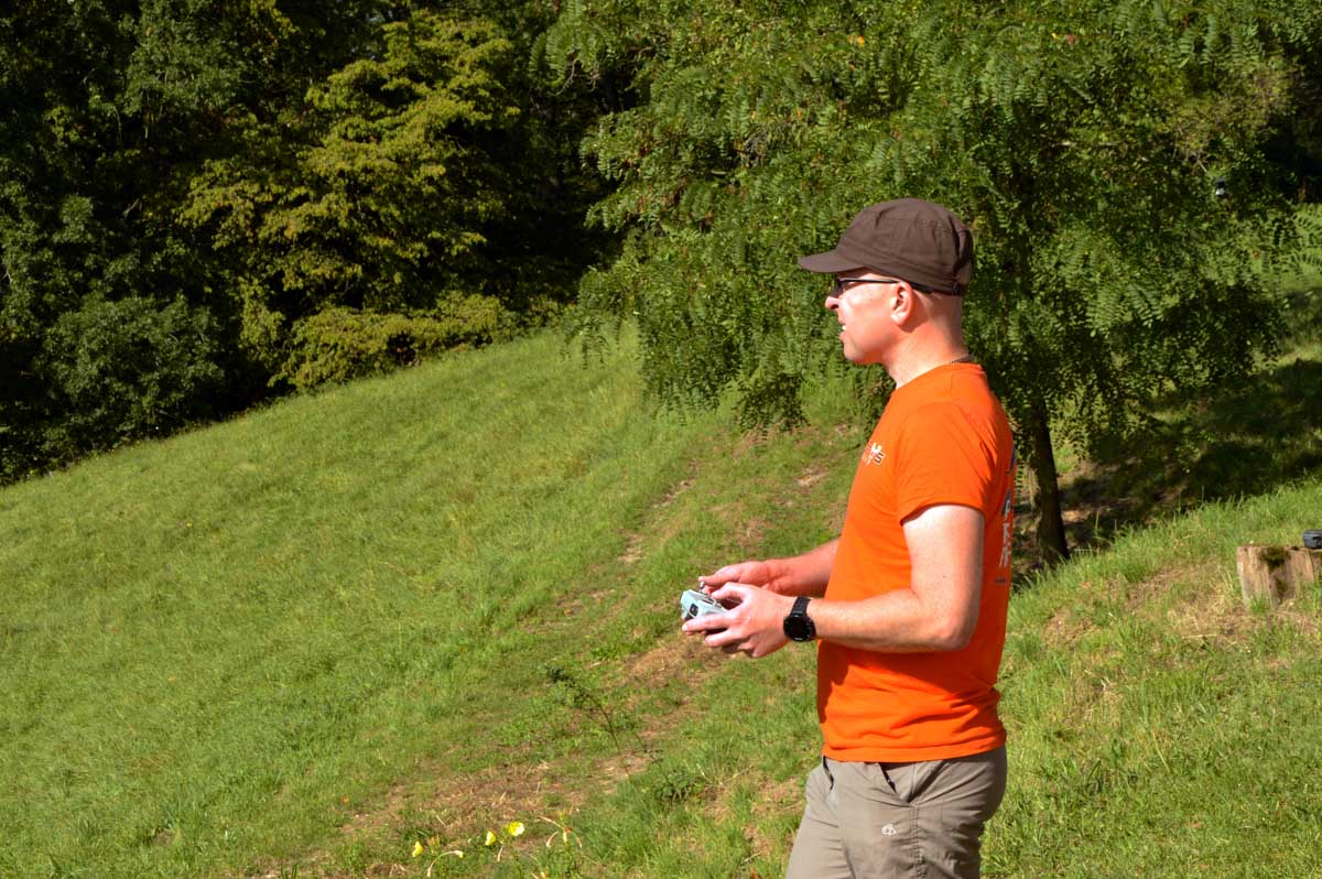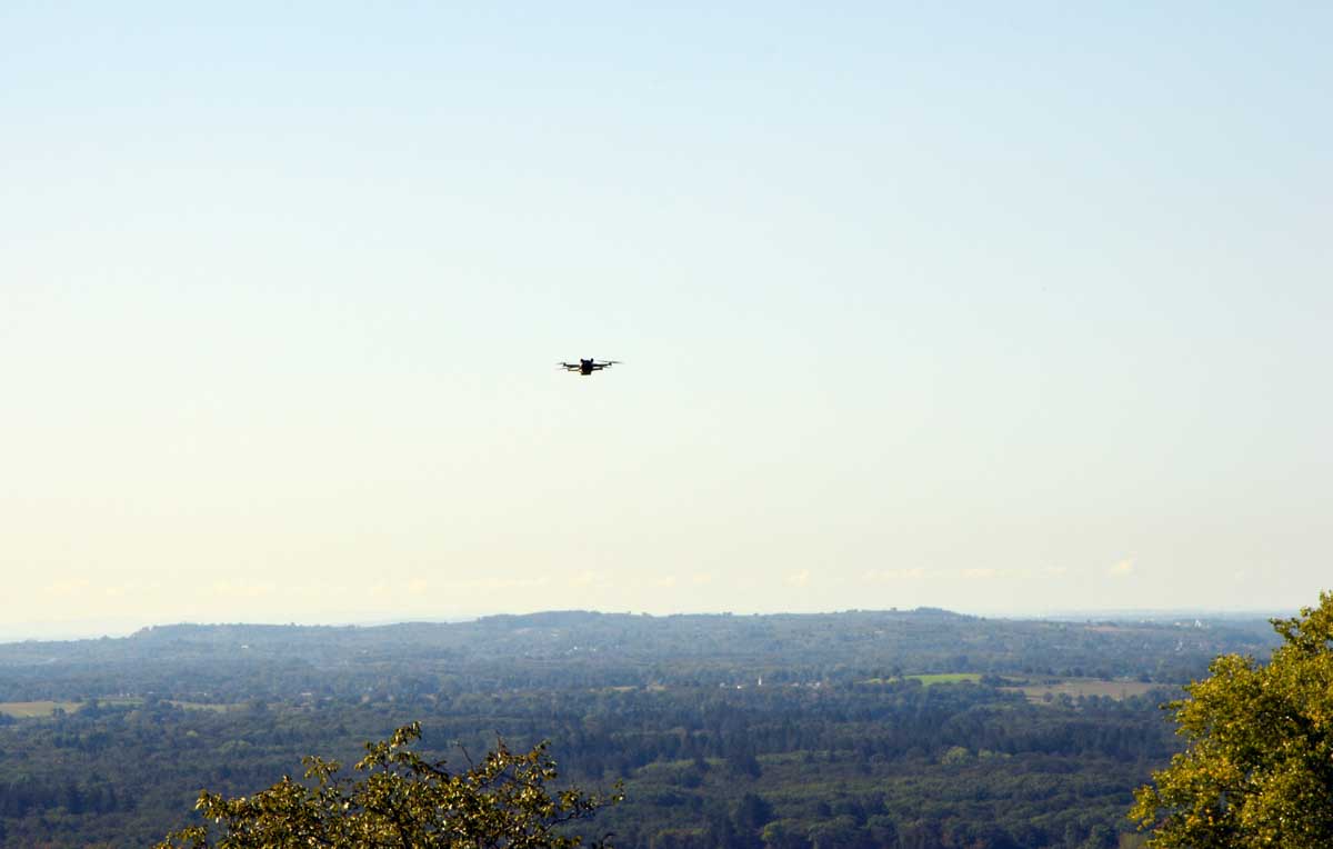 L’ami Tom, d’Uferlos, a de nouveau lâché son drone pour nous prendre des photos aériennes ; j’ai voulu m’y accrocher pour prendre des photos d’en-haut, mais au lieu que ce soit moi qui monte, c’est la bestiole qui est descendue. Très vexant. C’était sans doute à cause du Kaffee-Kuchen.