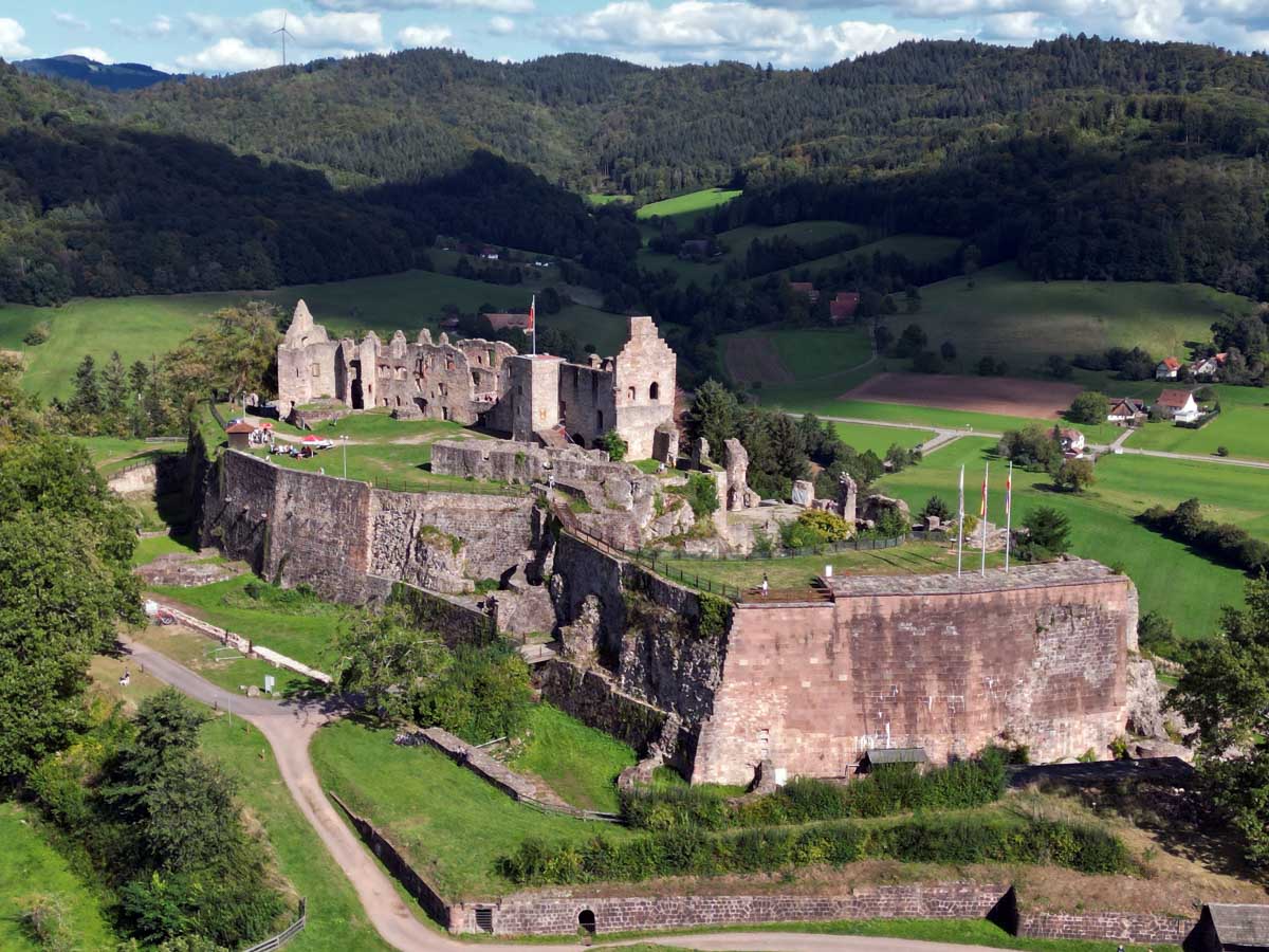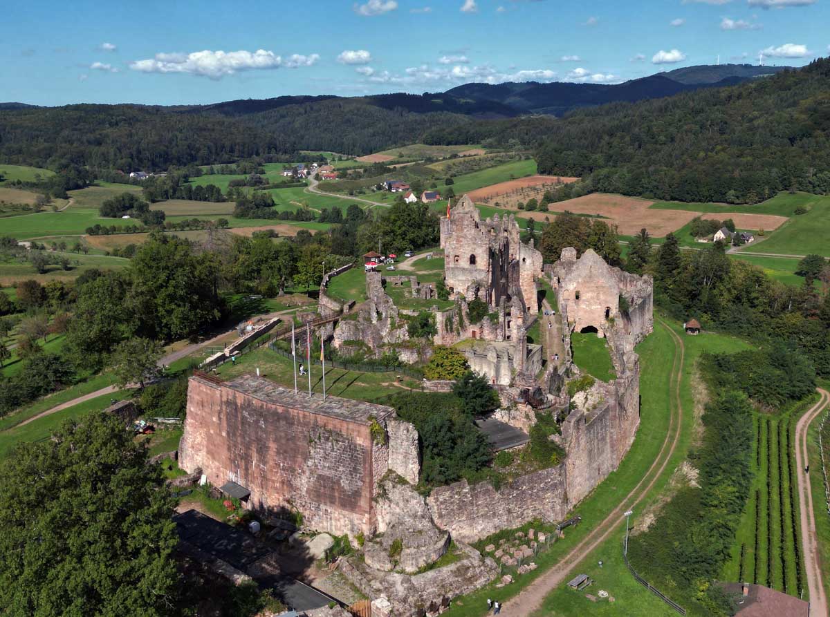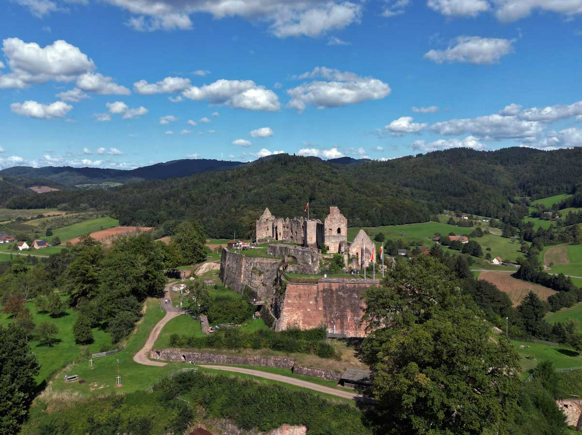 Il a survécu à la Guerre des Paysans en 1525, est devenu forteresse, puis a été démoli en 1688 par l’autre là, celui qui a déjà tout cassé en Alsace, soi-disant roi soleil qui avait une face cachée : il n’aimait pas nos châteaux. Ah oui, Louis 14 (je mets pas en chiffres romains vu que je ne n’arrive pas à les lire).