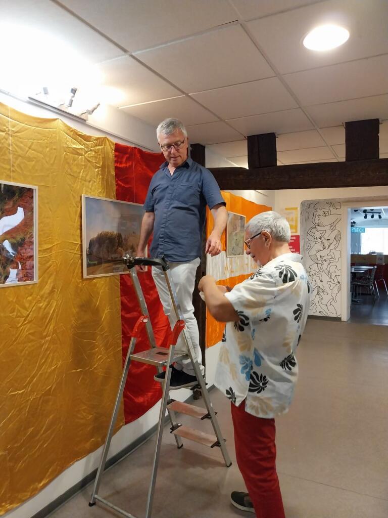 Nos Gremlins à nous s’appellent Jean-Luc, Rémy et Yoon, et ils ont installé l’expo ce samedi. Et trois règles s’appliquent aussi à eux : ne pas les exposer à un espace d’exposition, car ils te colonisent tout avec des tissus et des photos avant que t’aies le temps de les voir venir, ne pas les mouiller (sauf en sortie canoë) et ne pas leur faire boire d’eau (ce qui en l’occurrence, du moins pour l’un d’entre eux, ne constitue pas une difficulté majeure), et ne pas leur décaler leur dîner après minuit, sinon ils te grognent dessus et ils seraient capables d’attaquer la nappe en guise d’apéro.