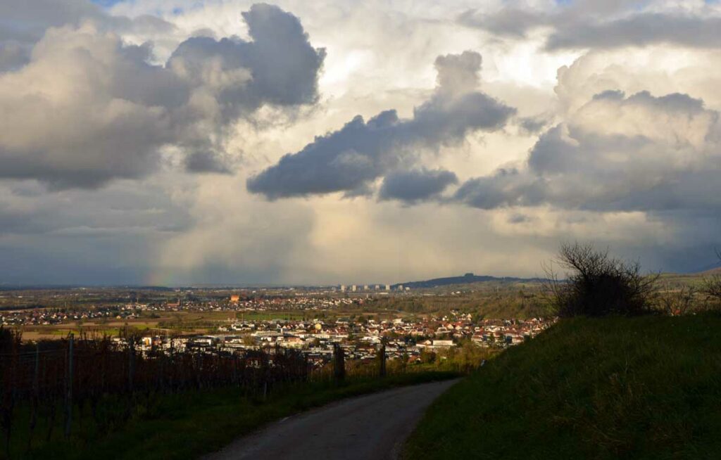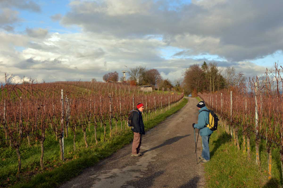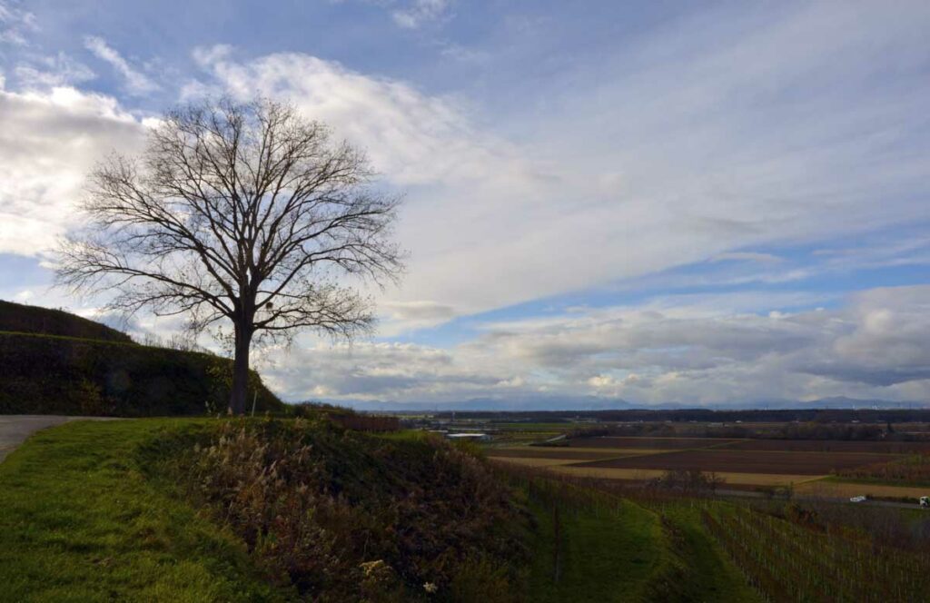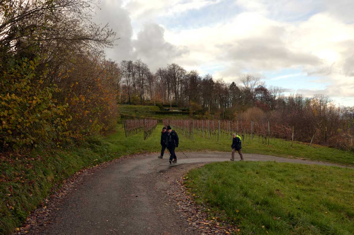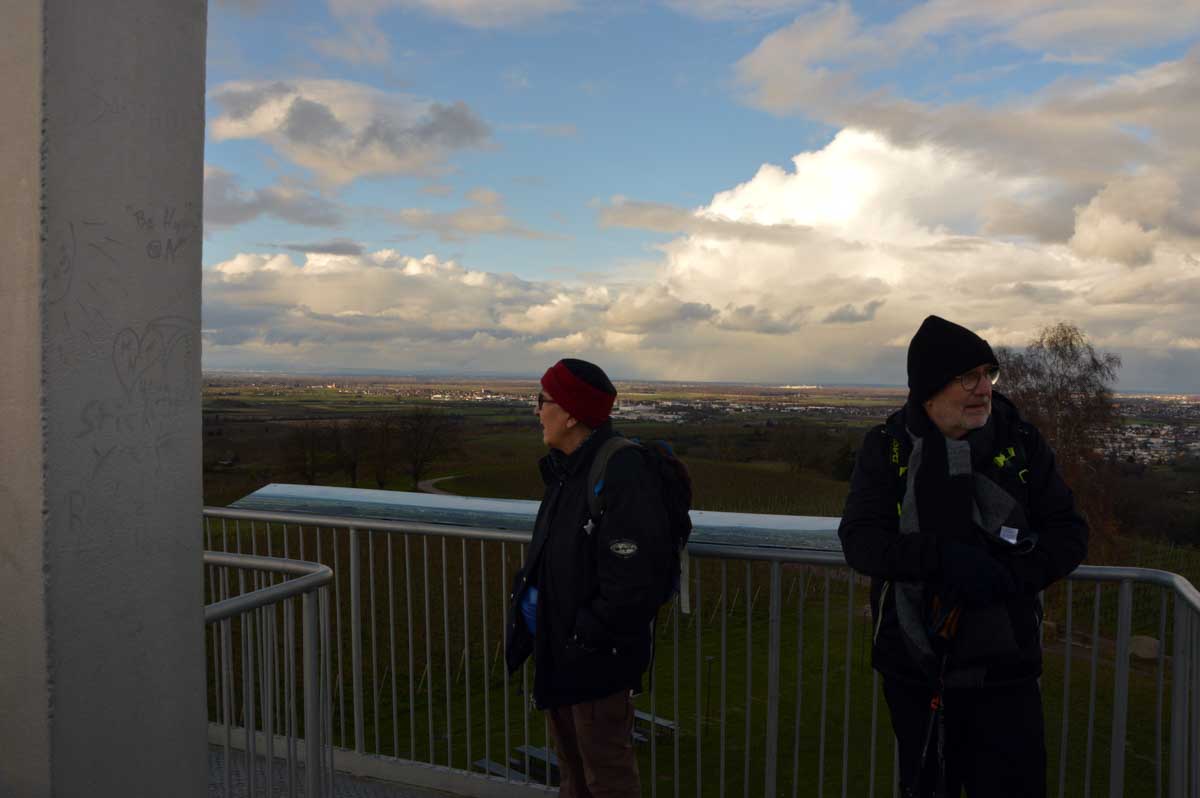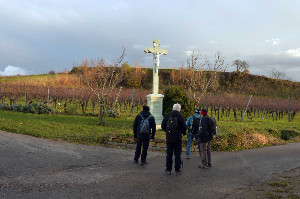 Une alsabalade à travers les vignes au repos, avec le mémorial de la vigne et du vin, la chapelle du Kahlenberg datant de 1660, et un retour par le Heuberg et sa tour d’observation, l’occasion aussi de prendre là-bas un café.