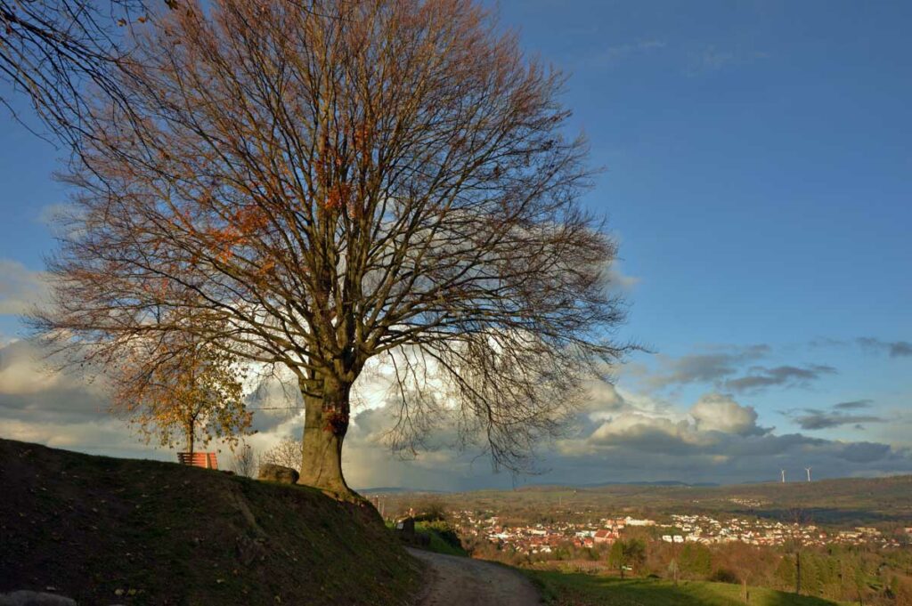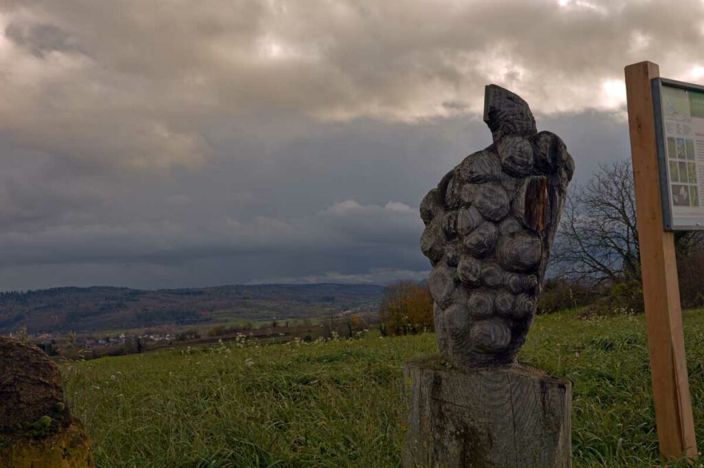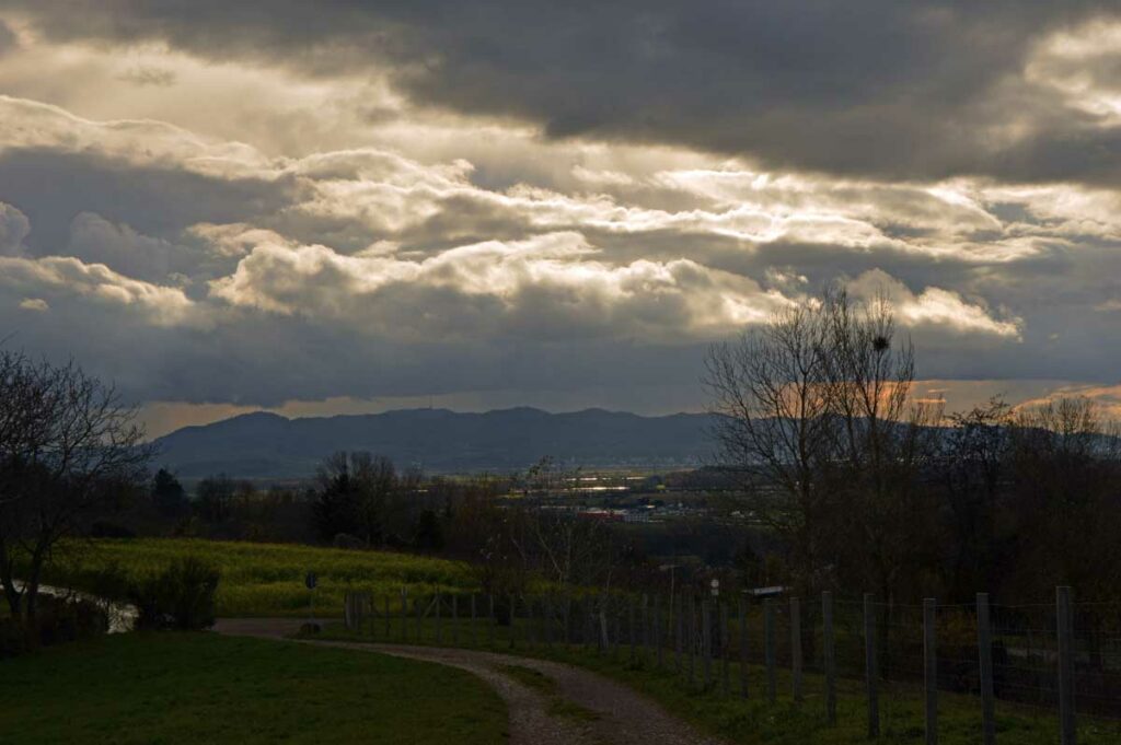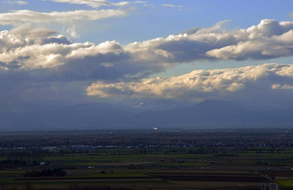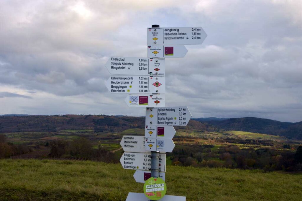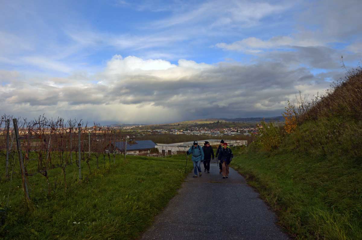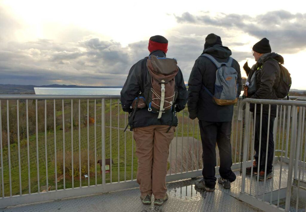 Une alsabalade à travers les vignes au repos, avec le mémorial de la vigne et du vin, la chapelle du Kahlenberg datant de 1660, et un retour par le Heuberg et sa tour d’observation, l’occasion aussi de prendre là-bas un café.