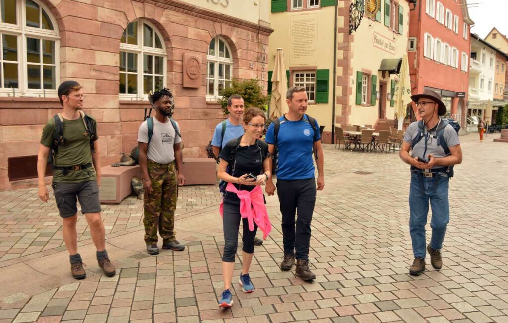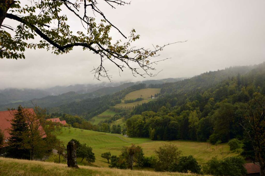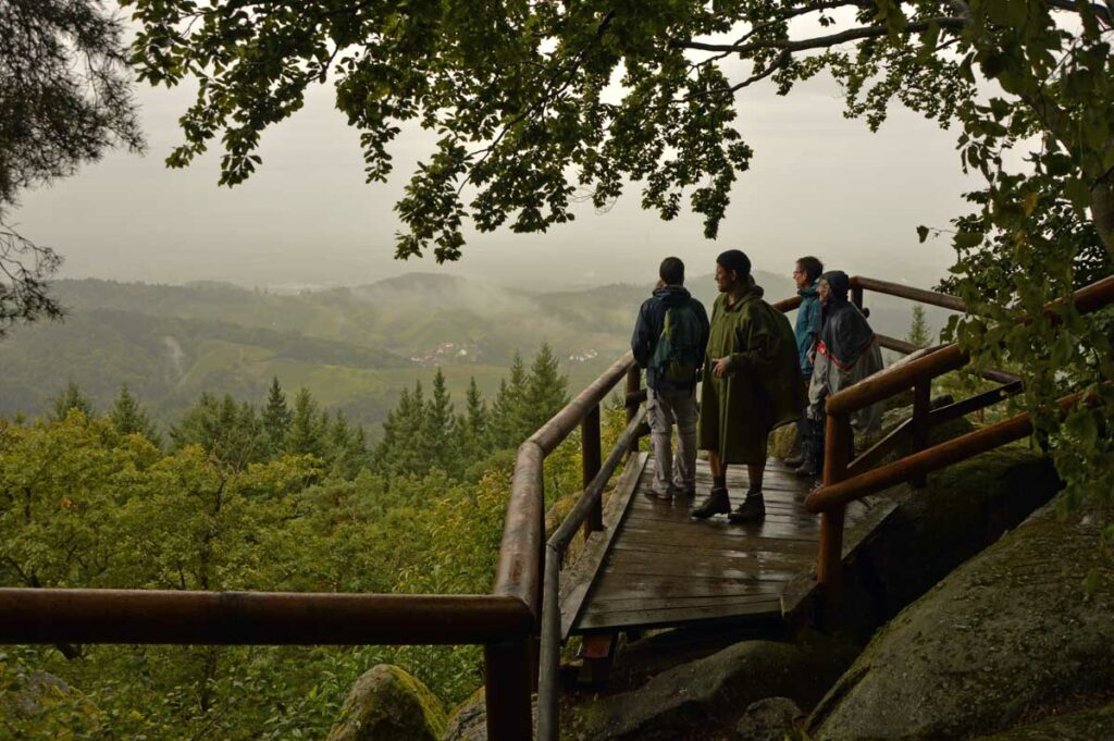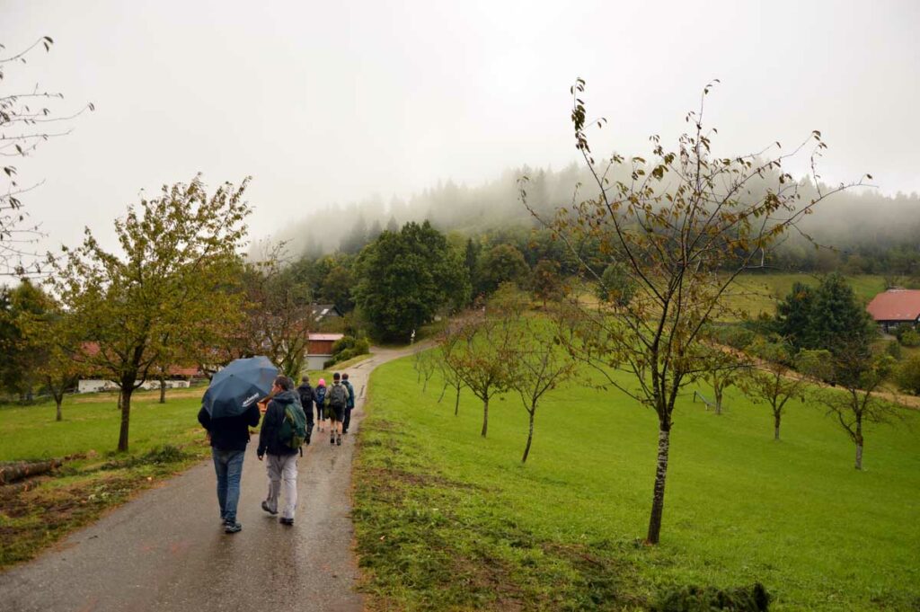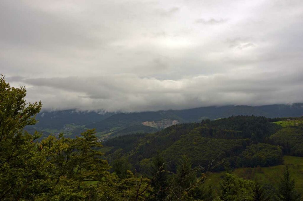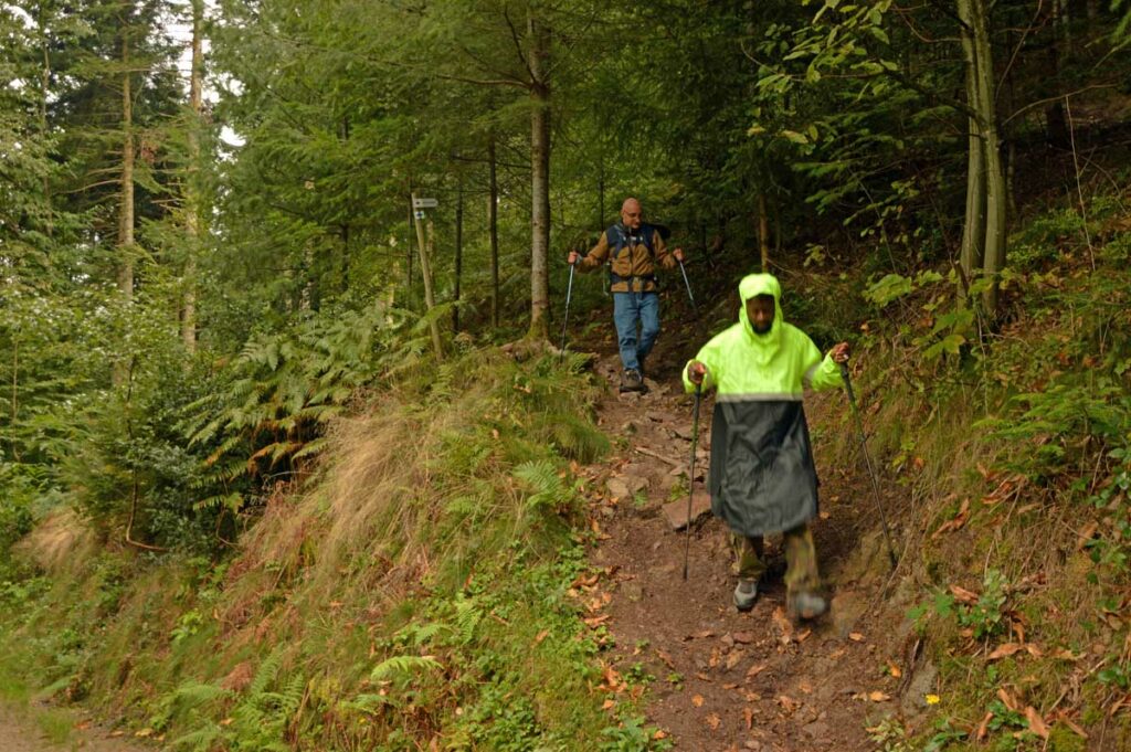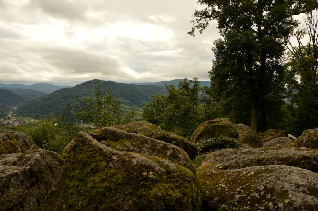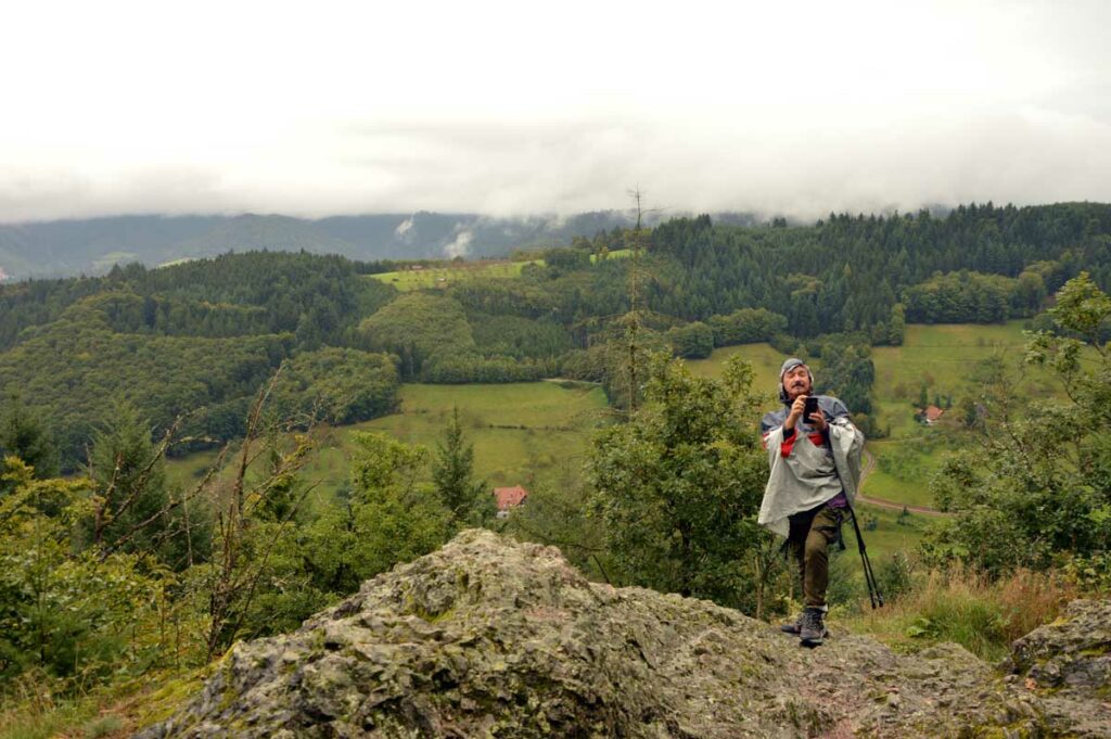 Bon tu me connais, la culture ça va cinq minutes mais après faut décompresser. Donc me voilà en route sur le Felsenweg, autrement écrit le Chemin des Rochers, qui m’a amené d’Oberkirch à Kappelrodeck, dans le nord de la Forêt-Noire. C’est nos potes d’Uferlos qui organisaient.