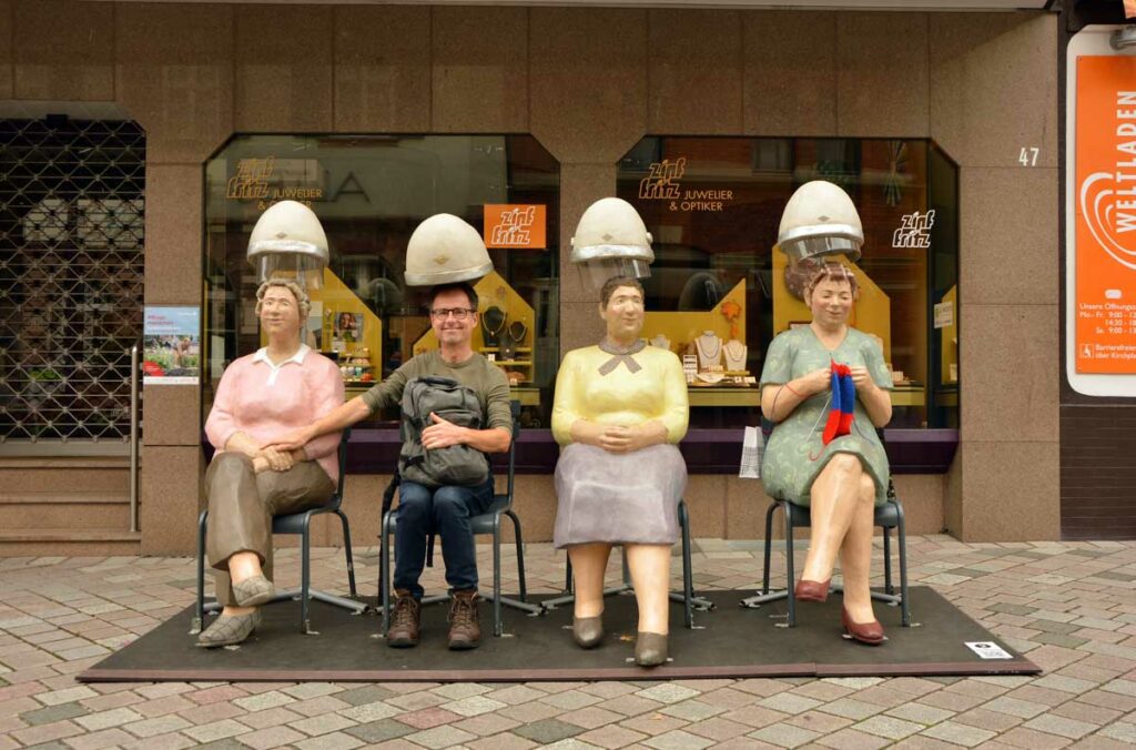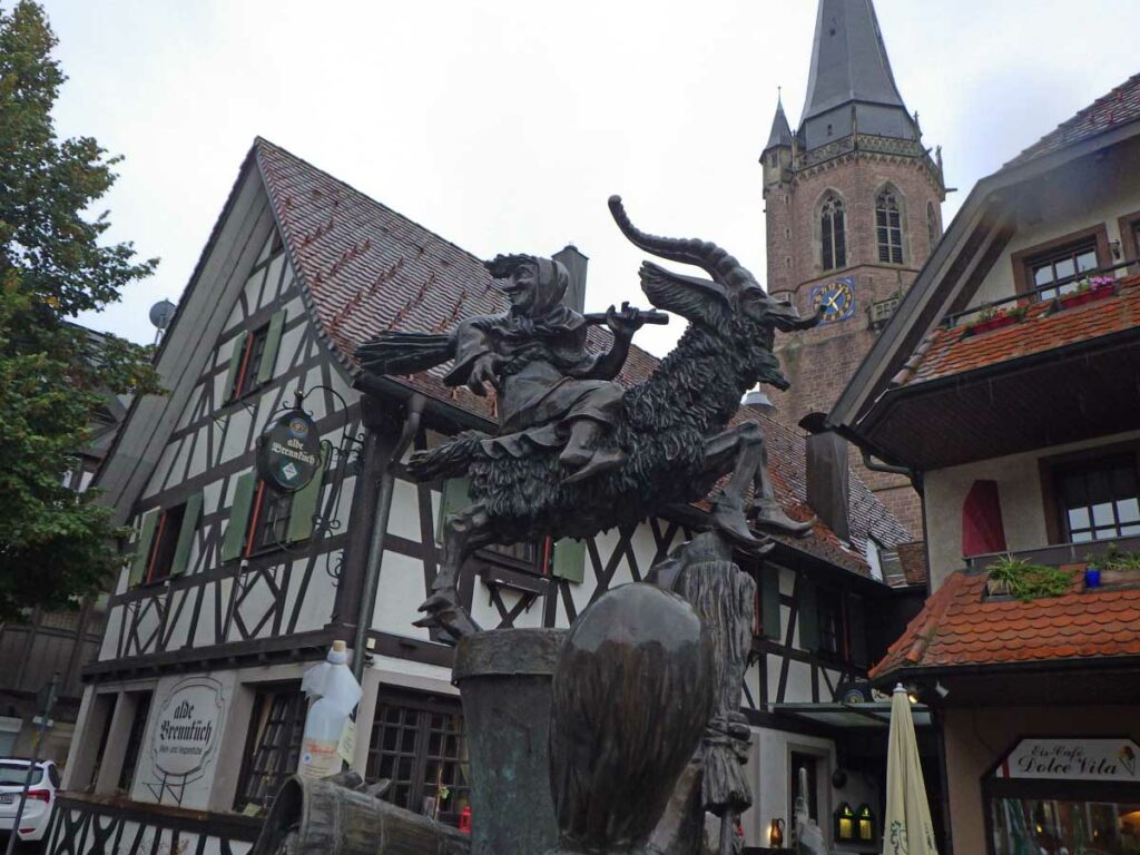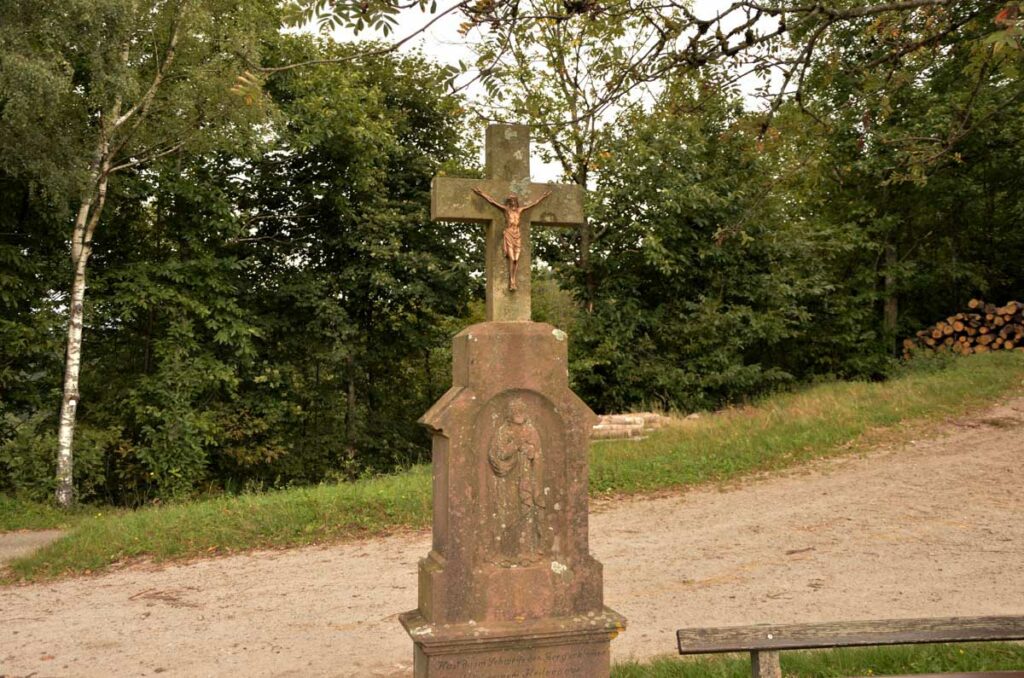 Aujourd’hui ça commence par du culturel, tu vas être content. Dès le départ à Oberkirch, j’ai sursauté devant une statue effrayante, et tu me connais, pour m’effrayer il faut du lourd. Genre on est en rupture de bière à l’apéro, on a oublié le schnaps pour le digestif, ou encore tout le monde va se coucher et personne pour m’aider à siroter une dernière grappa.