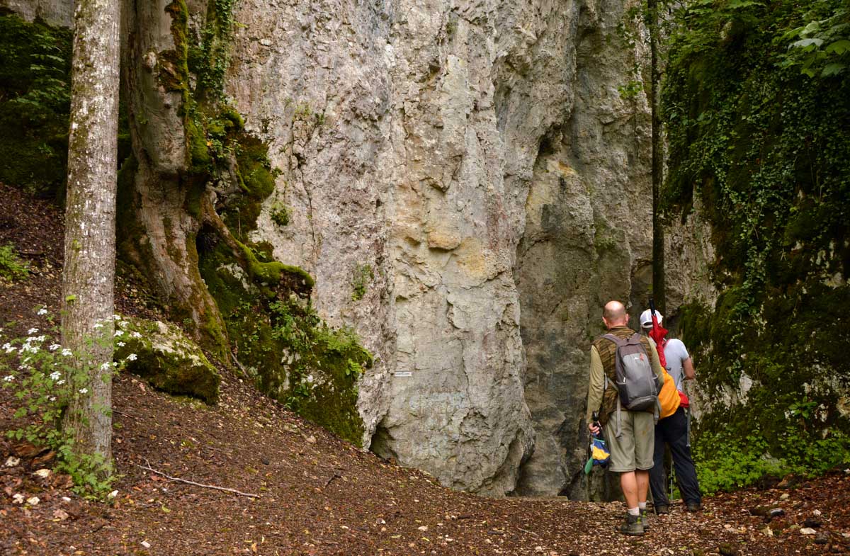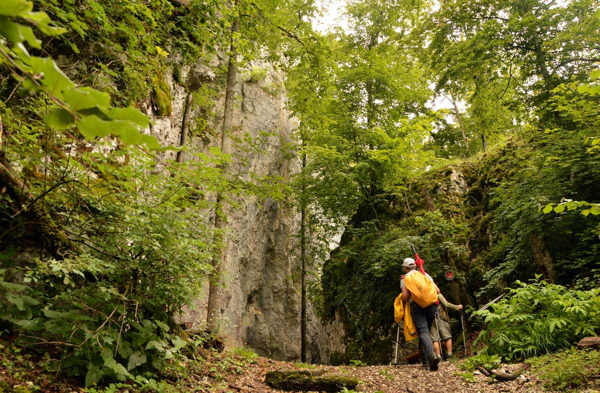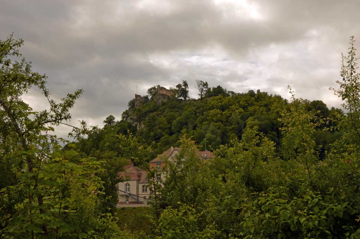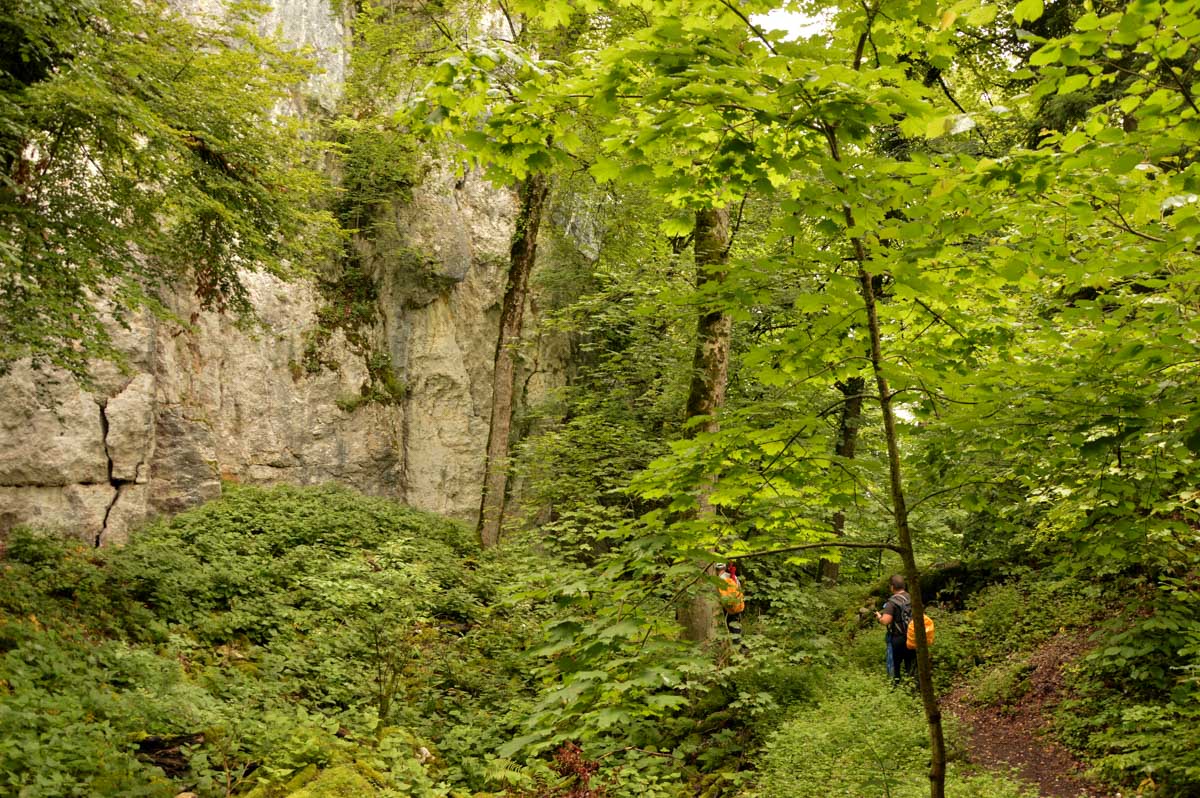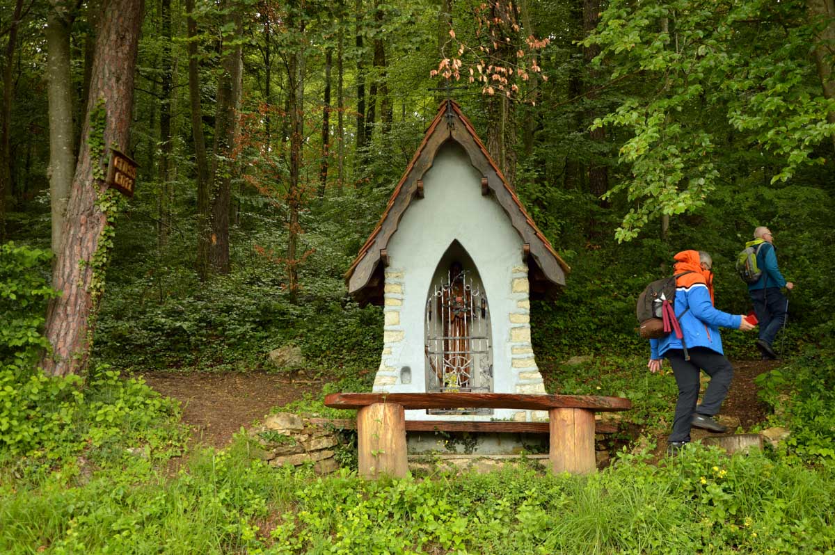 Tu me croyais zau bout de mes zémotions ? Que nenni ! Voici un canyon, une fêlure tectonique, le Grand Rift Alsacien, la dérive d’incontinents, une faille tempo-spationnelle, un gouffre où s’engouffrer, un vertige calcaire, un néant derthalien, et tout le bazar, mon canard, ben il ne porte même pas de nom. On parle de l’Erdwiebelenfelsen, mais va placer ça dans une soirée ! Et là-dedans se trouve la Grotte des Nains. C’est joli comme coin, en quelques pas, t’es dans un décor de cinéma, tu t’attends juste à ce qu’Indiana Jones (le vrai) arrive sur son canasson et que son fouet dérape pour te claquer le postér… enfin revenons à nos… non, y’avait même pas de moutons. Ambiance colo au centre de vacances Don Bosco à Ferrette. Le charme des années soixante-dix, un accueil de qualité, des gens super sympas, j’ai a-do-ré. Et demain, je te parle de leur chapelle, elle te donne direct envie de te (con)fesser. Indie ! Reviens avec ton fouet !