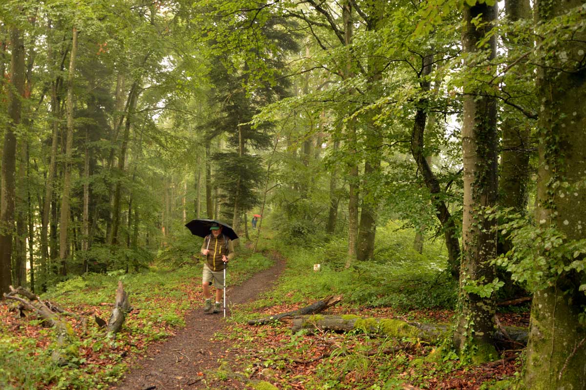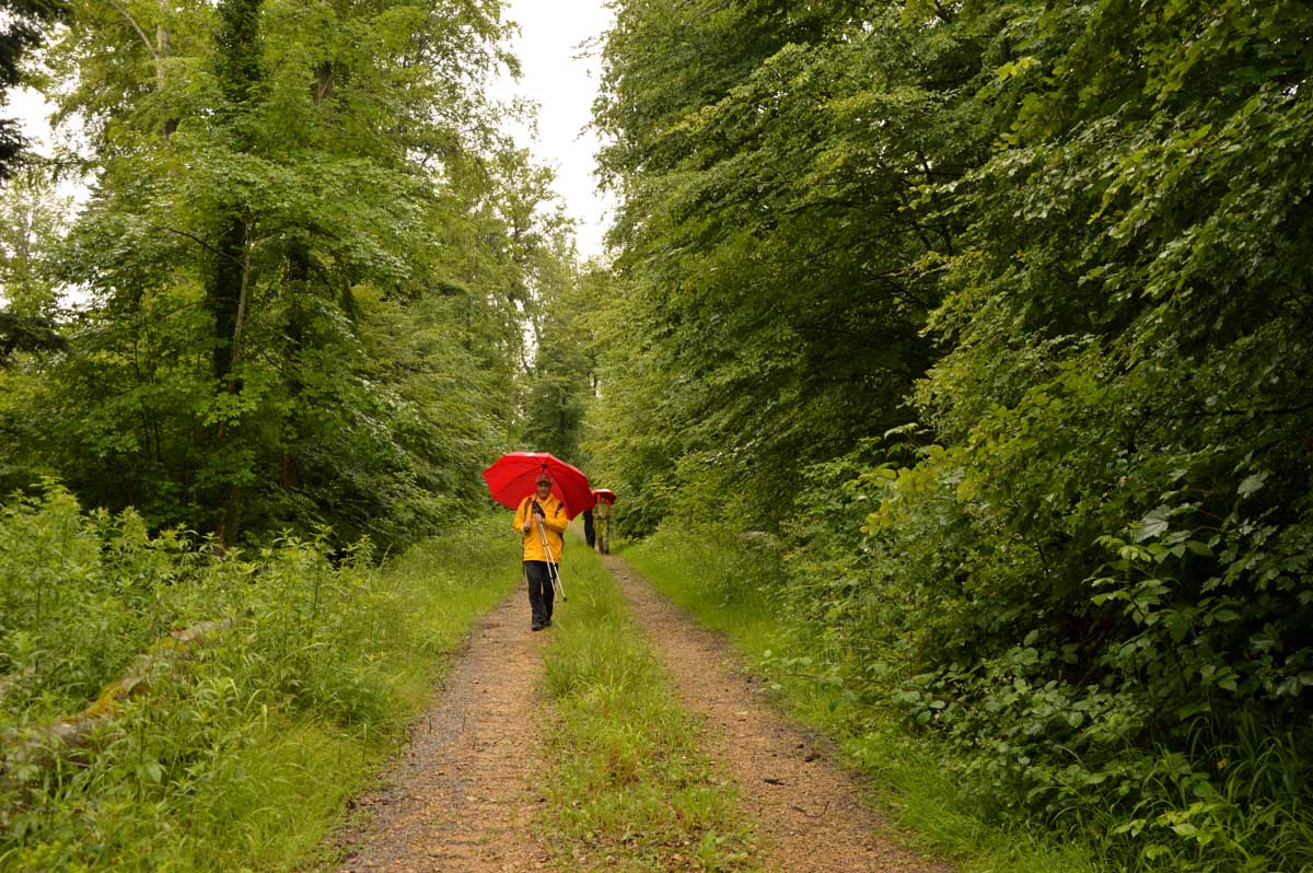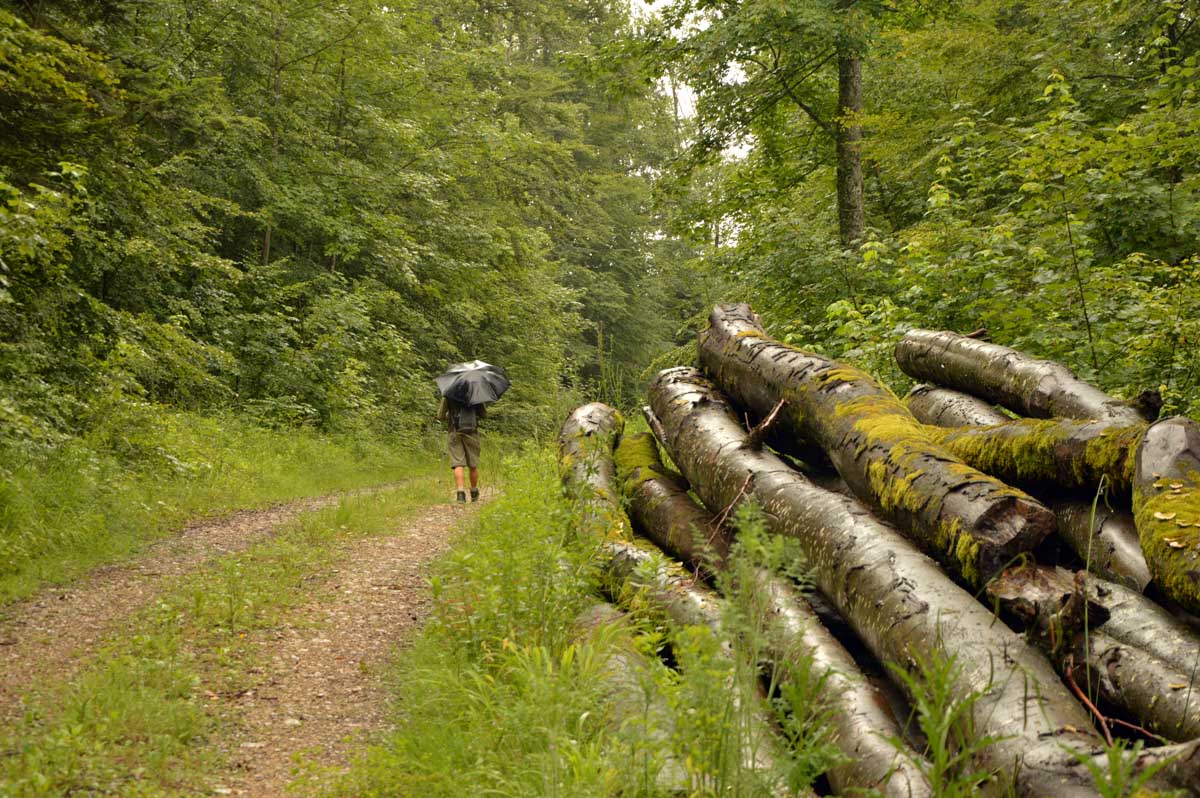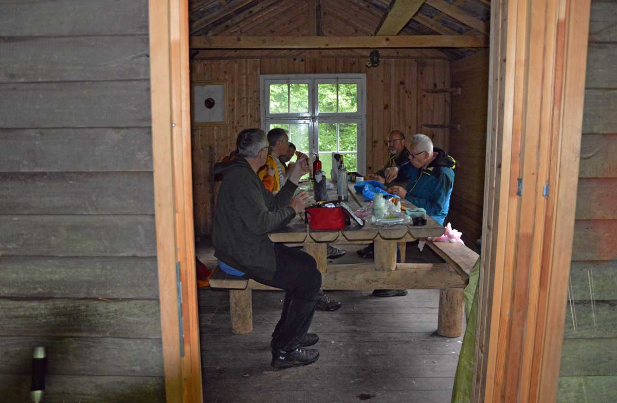 A la pause midi, le luxe : une cabane ! Evidemment, une fois au sec, c’est là que la pluie s’est arrêtée ! Et là tu vois, t’as les chaussures qui sèchent, le parapluie au chômage et l’estomac calé, devine quoi ensuite ? Ben on repart !