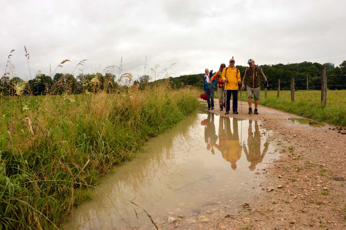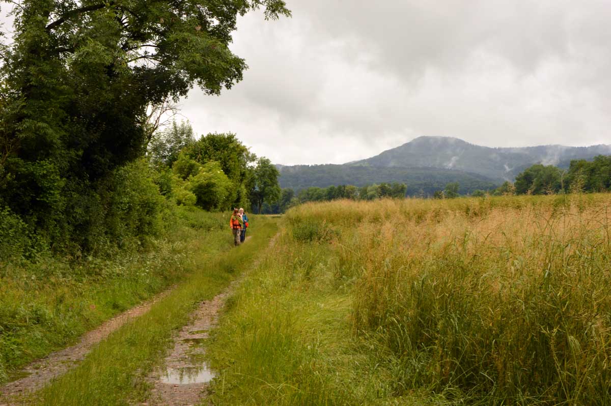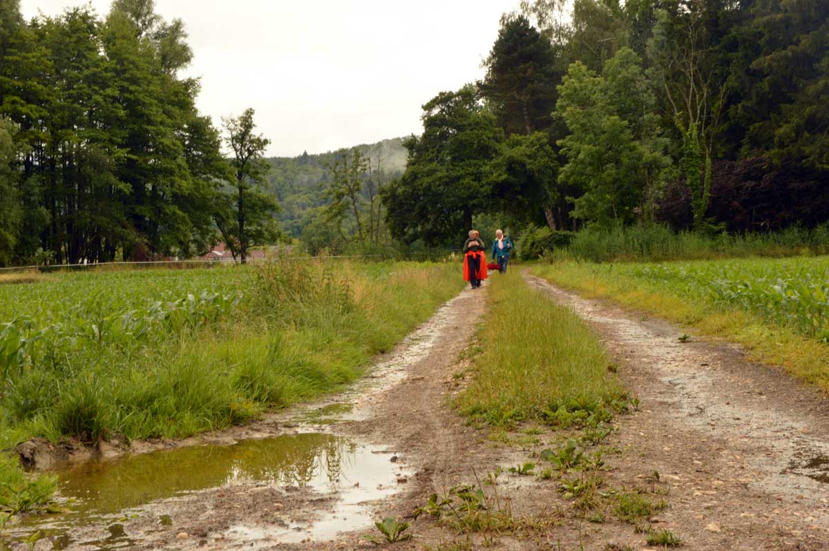 Tu connais le principe d’Archimède ? Non ? M’aurait étonné. Je t’explique. Tout corps plongé dans la boue reçoit en retour de cette boue une aspiration salissante de la chaussure ainsi absorbée, ainsi que des projections sur tous les habits. Bon je l’ai adapté, j’reconnais. De toute manière, tu sors de là, tu peux expérimenter le truc de la baignoire… à mon avis, le gars Archimède a dû transiter par Ferrette dans son existence de Grec Ancien.