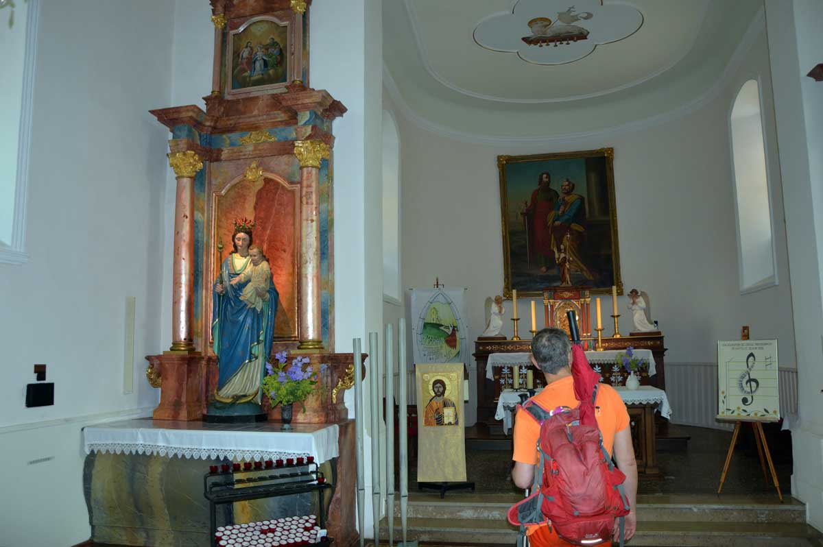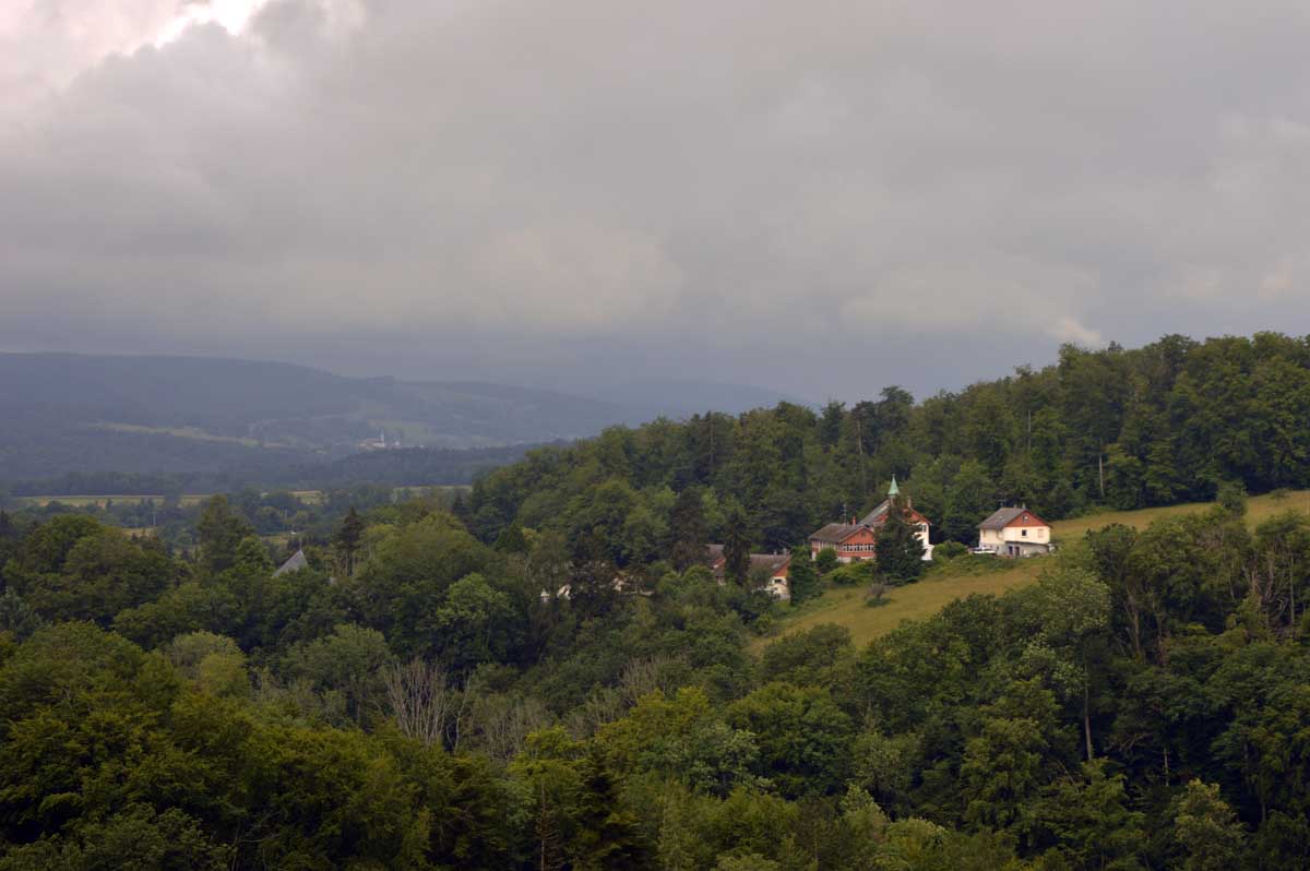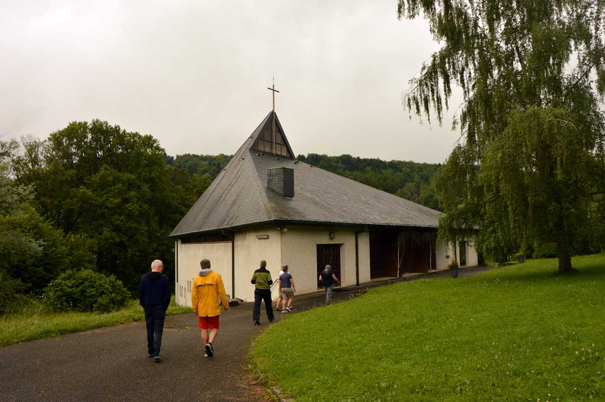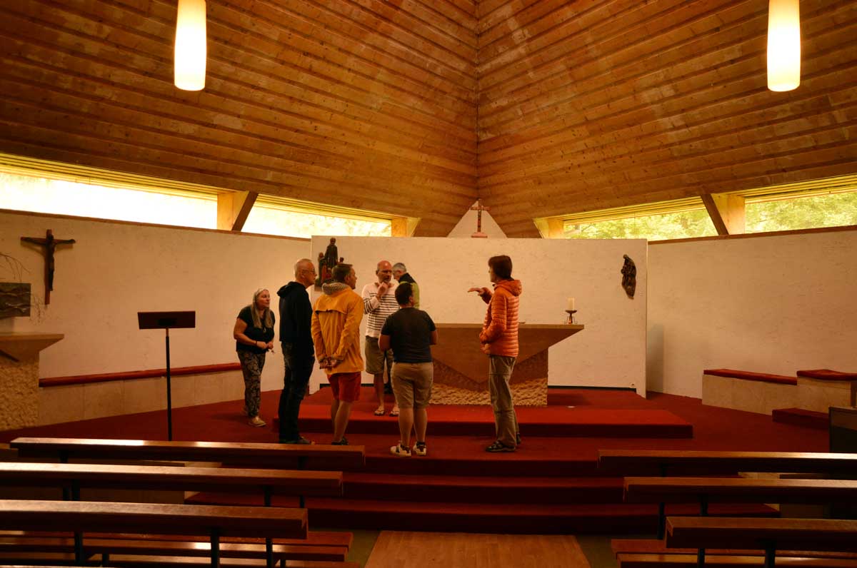 Tu connais le principe de la randonnée ? Non ? Et pourtant… Ben tu montes, tu descends, et tu reviens au point de départ. Et ce matin, ça se présentait mieux que la veille : il pleuvait pas. Petit déjeuner à la colo ALC-DC, toujours aussi sympa, avant que la patronne nous fasse une visite privée de la chapelle de Don Bosco, construite en 1967 par un disciple du Corbusier.