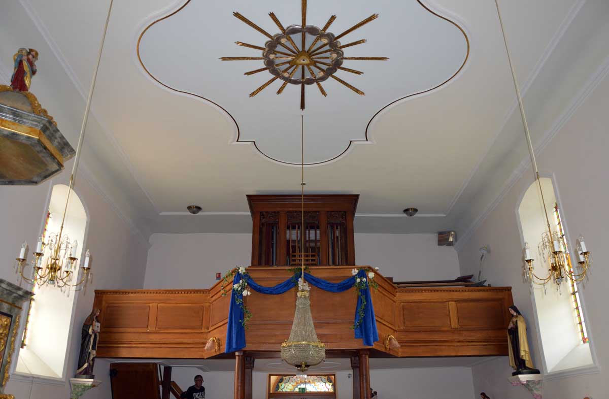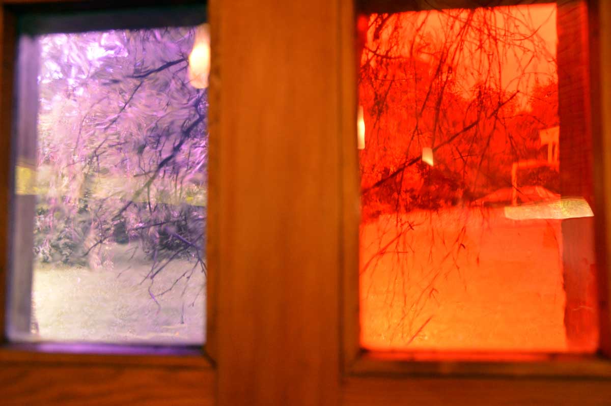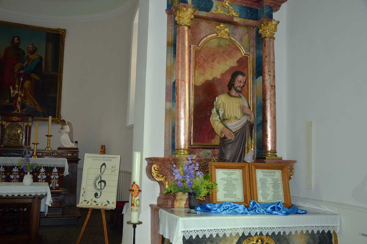 Ici pareil, on t’annonce une chapelle, tu vois une construction étrange quelque part entre un prototype de bibliothèque municipale et un truc de fin d’études d’un architecte sans avenir, pourtant tu vois une croix dessus et tu te dis que bon, ça doit être ça. Et à l’intérieur, quelle merveille ! Ah oui j’ai déjà mis « merveille ». Je reprends : à l’intérieur, quel ébahissement ! Ouh il est beau, celui-là. Je fus subjuguée, envoûtée, séduite, enchantée telle une parenthèse, et même conquite ! Oui OK, c’est pas correct, mais celui-là j’ai jamais su le conjuguer, aussi subjuguée que je sois. Drôles de carreaux de verre qui te font voir à la fois l’hiver et l’été dehors. Sacrée architecture sacrée de 1967 !