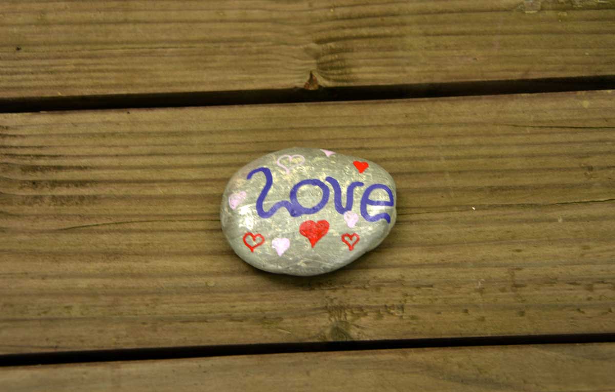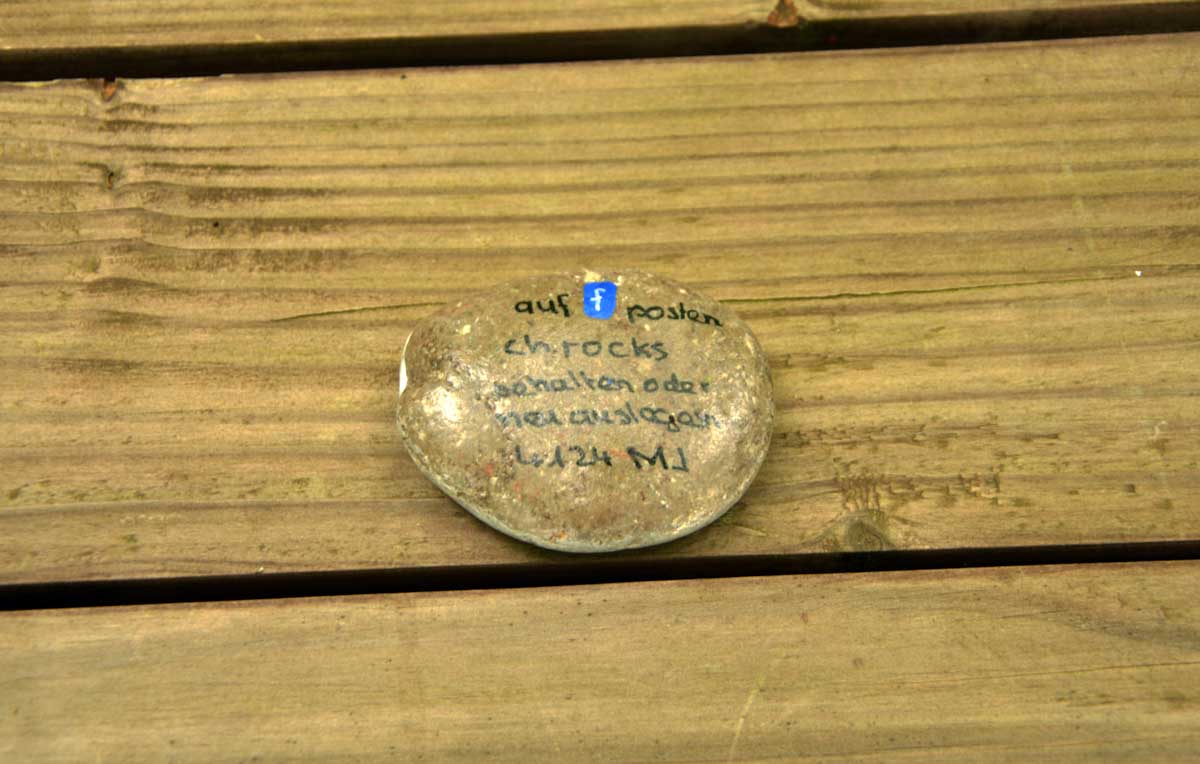 On a aussi récupéré un galet voyageur. Tu sais, des gens qui posent une caillasse ici ou là, puis ladite caillasse voyage au gré des personnes qui la déposent ailleurs. Moi j’aime bien le concept. Ben on a déplacé celui du jour pour lui poursuivre son voyage.