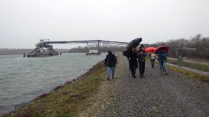 Allo, l’hôpital psychiatrique ? Oui c’est Monsieur Lunette, à Fort-Louis. Alors écoutez, je vous appelle parce qu’il y a là un groupe de fous… si, si, ici chez nous, des fous. Pourquoi fous ? Je les ai vus marcher sur la digue en plein vent et sous une pluie battante. Si, docteur, je vous assure, et ça n’avait même pas l’air de les déranger, ils admiraient béatement les péniches sur le Rhin ! Vous vous rendez compte ? Mais ce n’est pas tout, docteur ! Voilà qu’à la pause midi à Neuhaeusel, ils auraient pu choisir le confortable restaurant, mais non, je vous les vois pas entassés dans un abribus, gamelles à la main ?