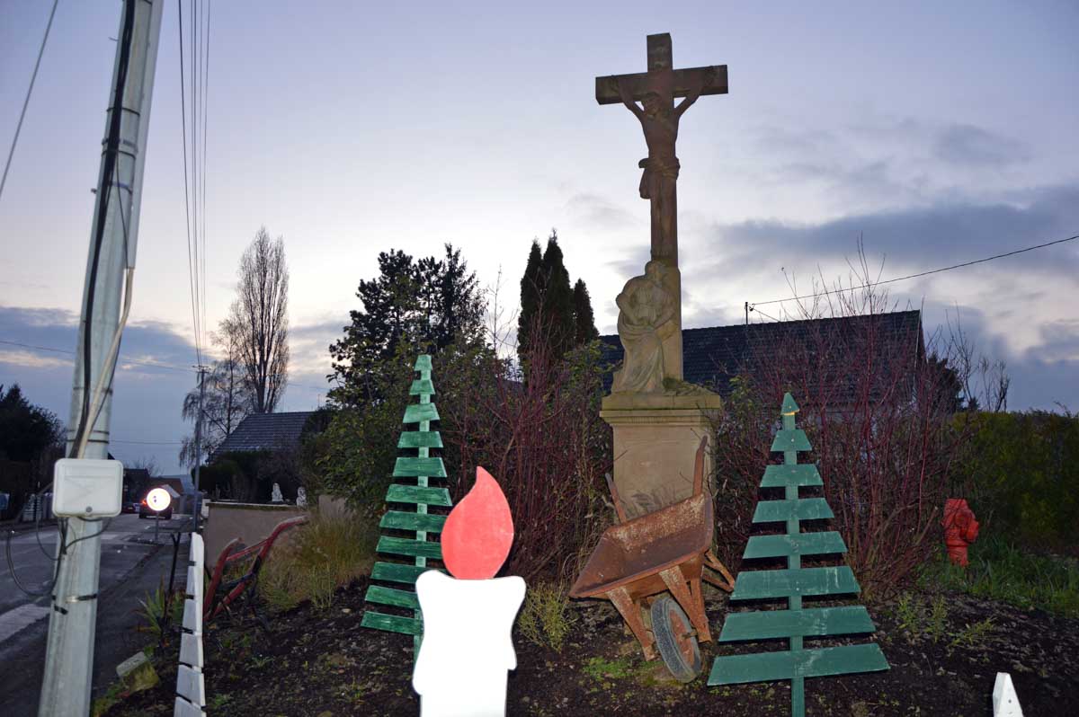 Que de témoins du passé aujourd’hui aussi, tous ces symboles et toutes ces croix, ces calvaires mis en valeur par un circuit pédestre, puis ces collines et la première neige, les chemins tantôt boueux, tantôt herbeux qui nous baladaient d’un village à l’autre…